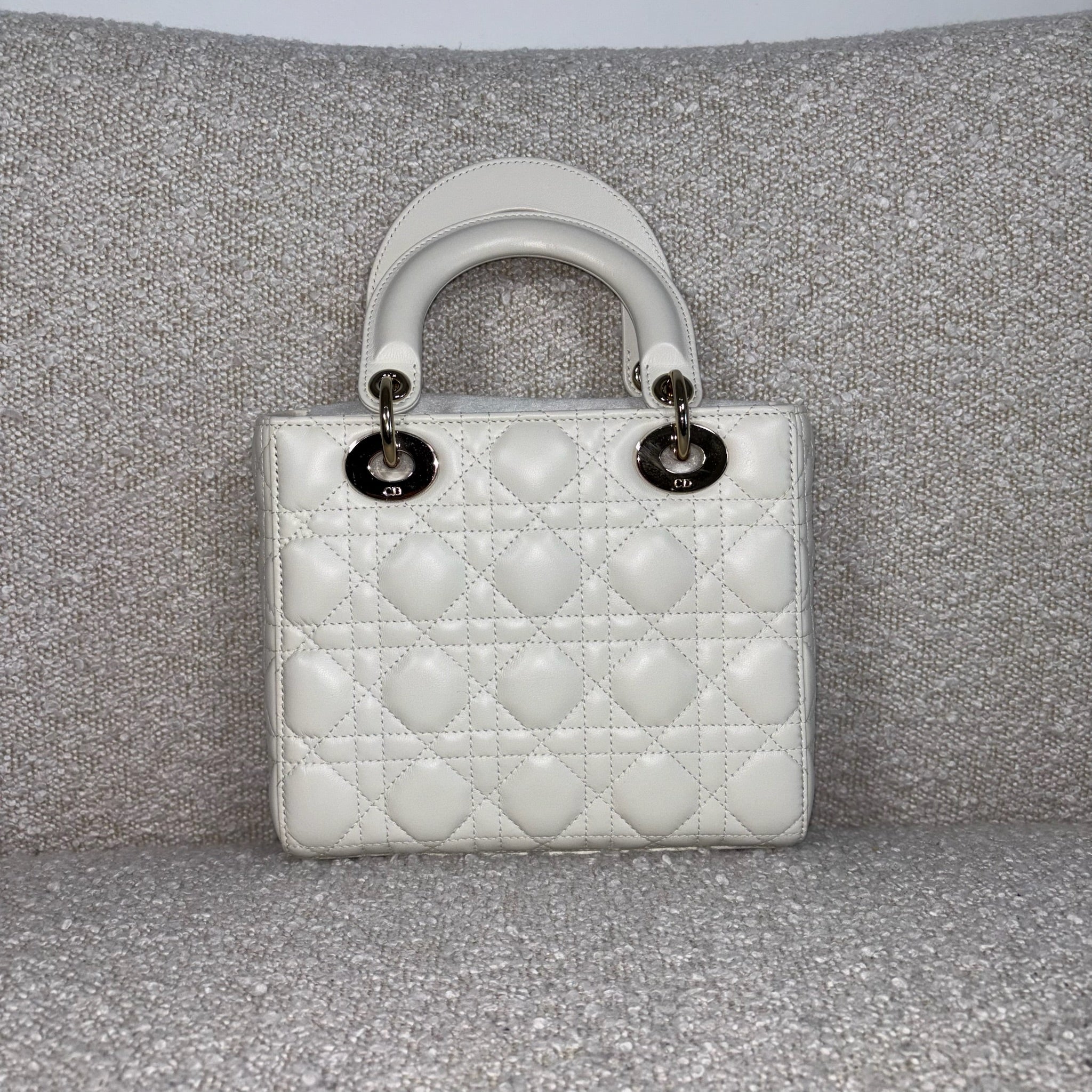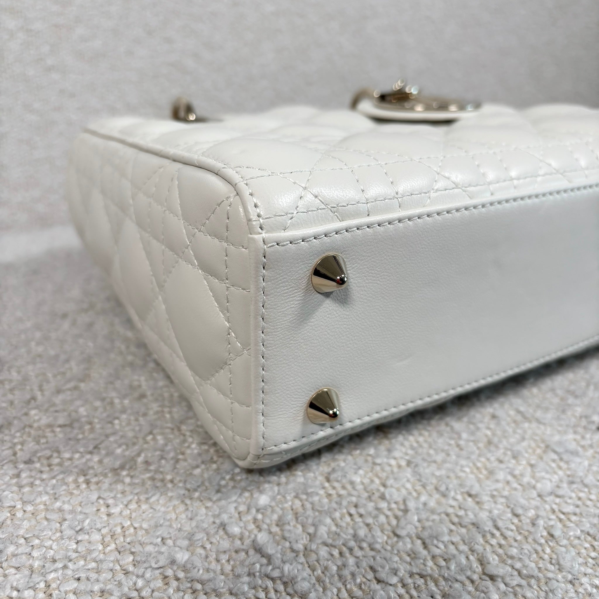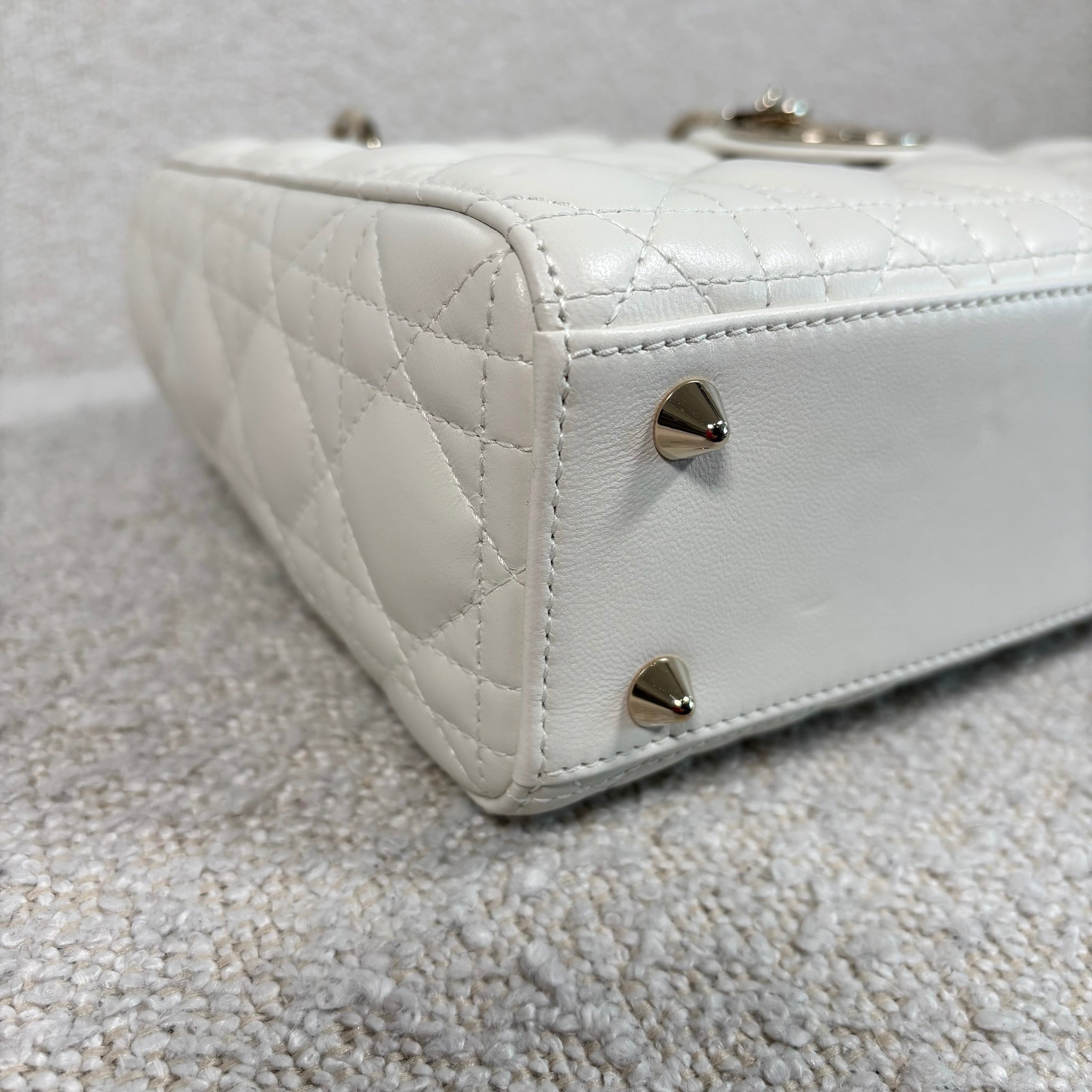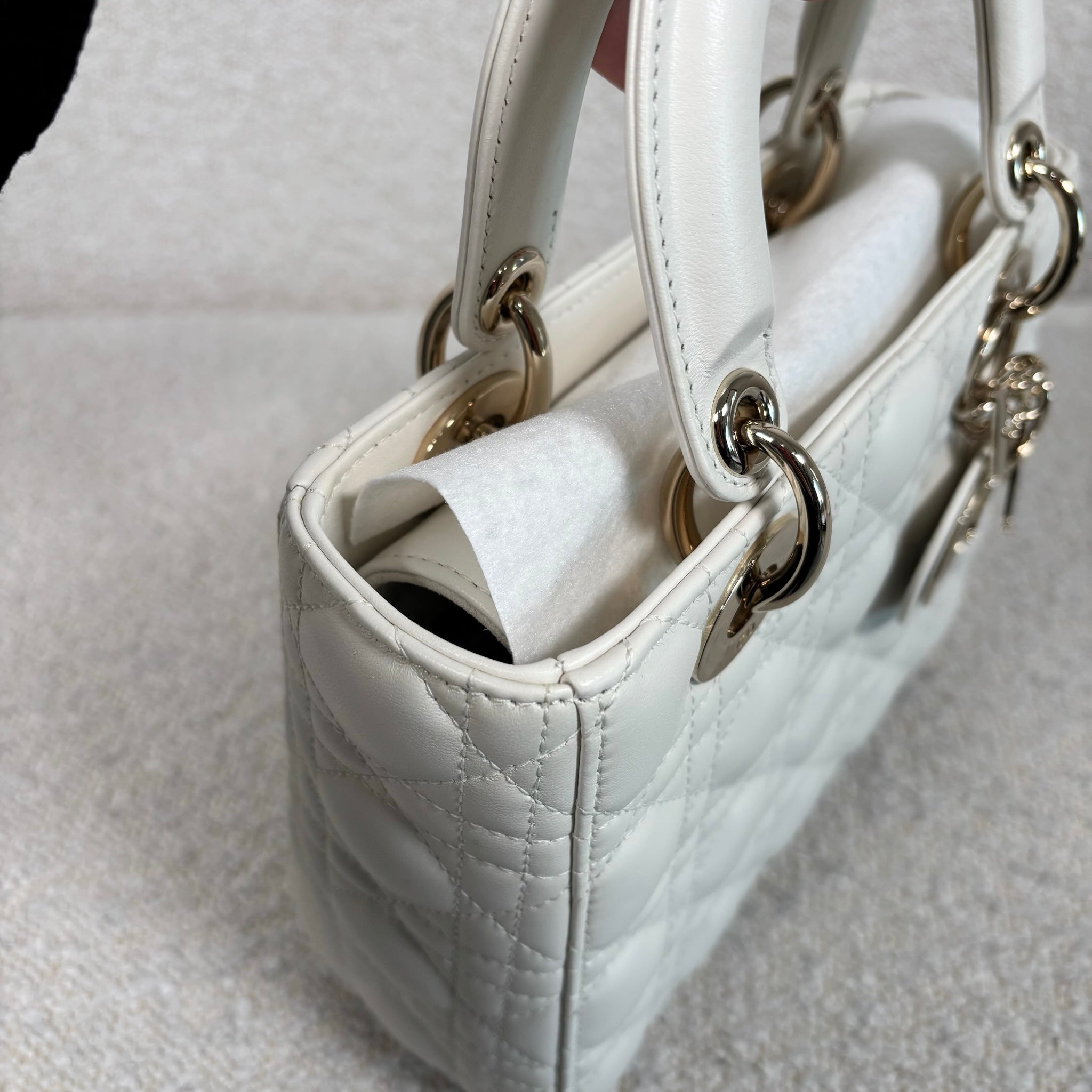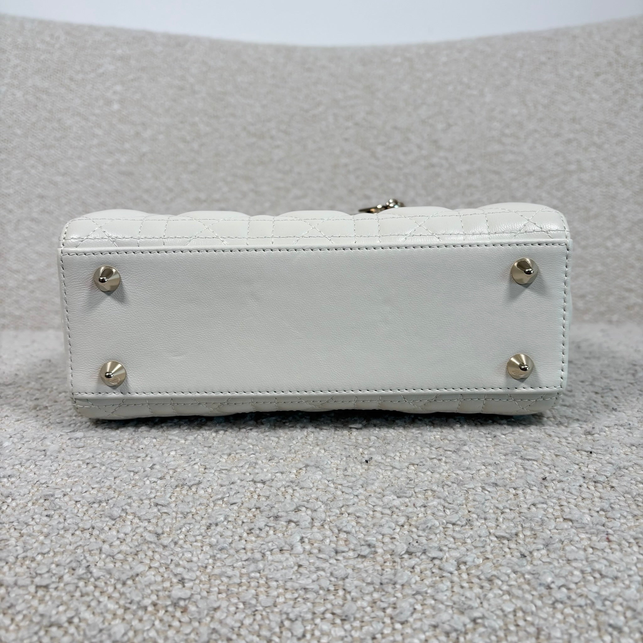 Crafted in white Cannage lambskin with light gold tone hardware, this small size silhouette is timeless and elegant—perfect for both everyday wear and special occasions.