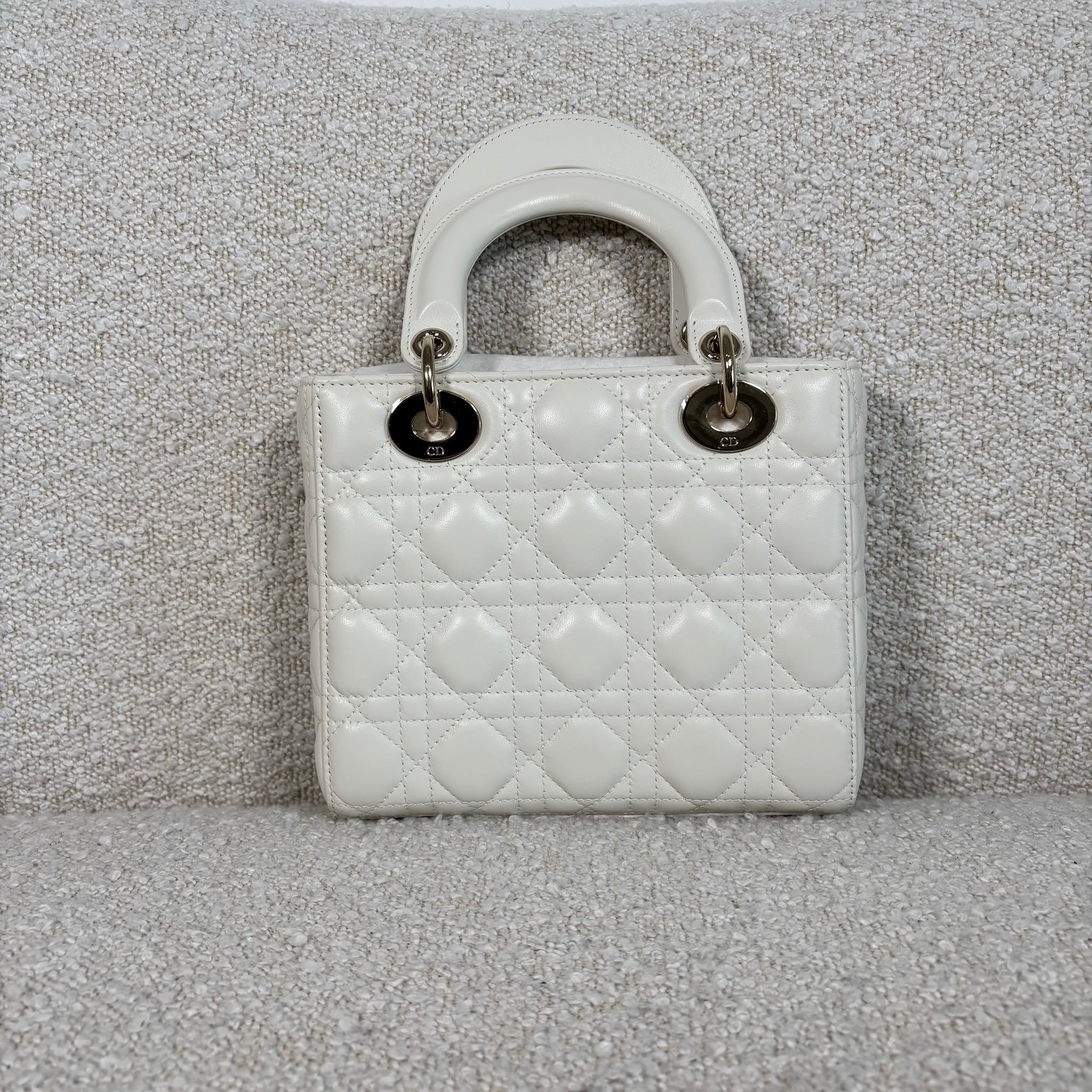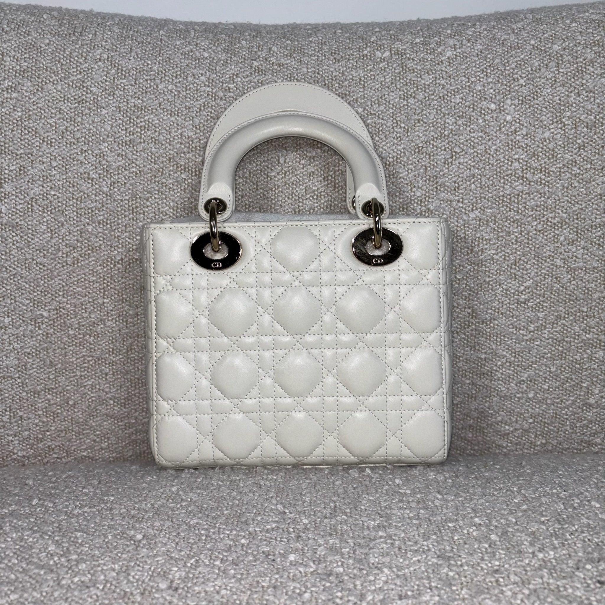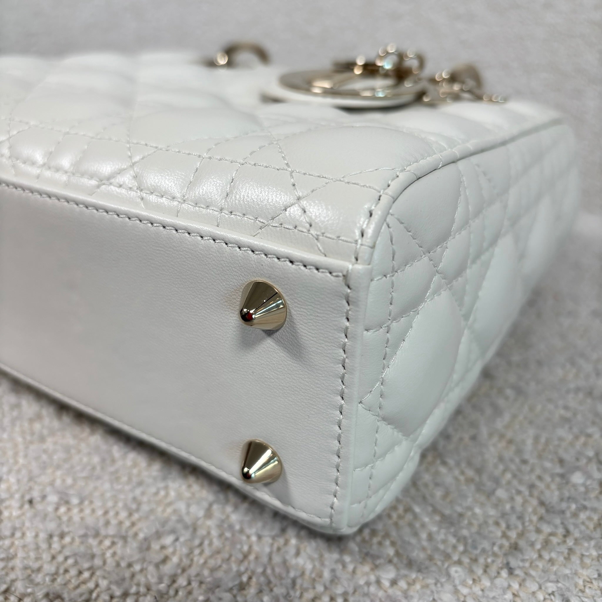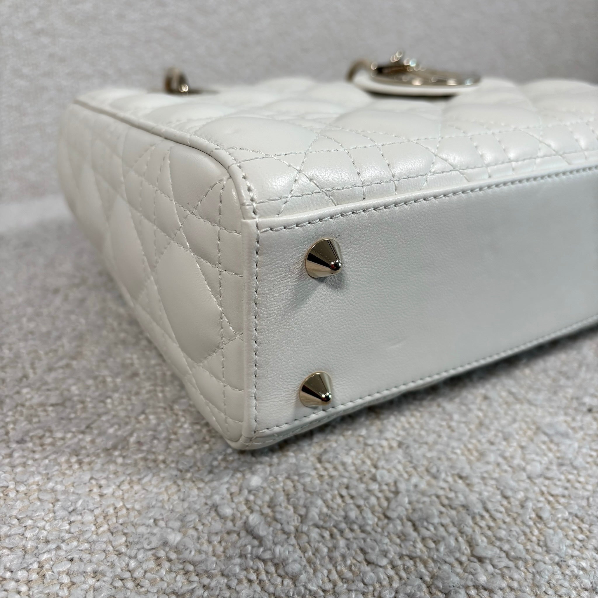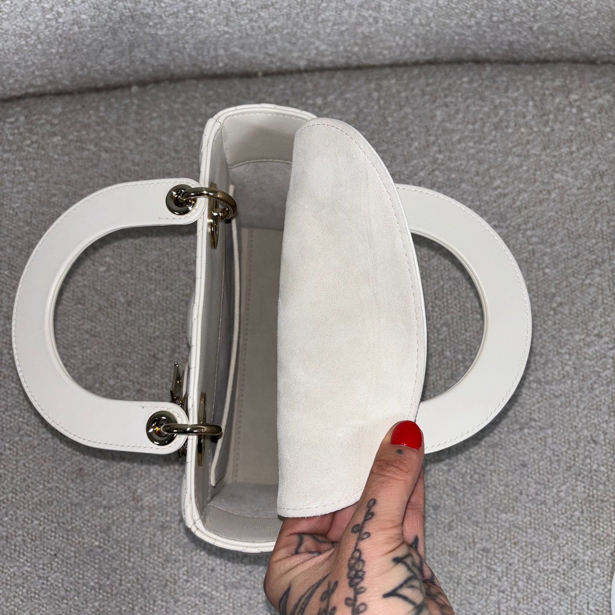 Crafted in white Cannage lambskin with light gold tone hardware, this small size silhouette is timeless and elegant—perfect for both everyday wear and special occasions.