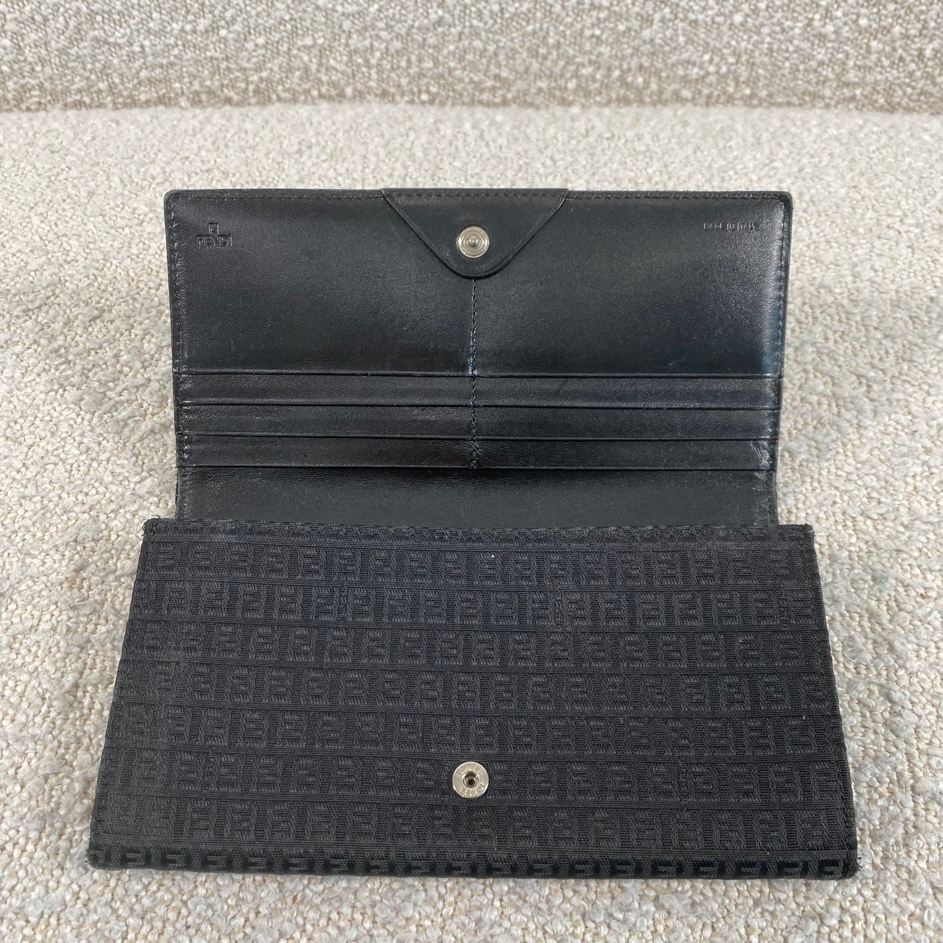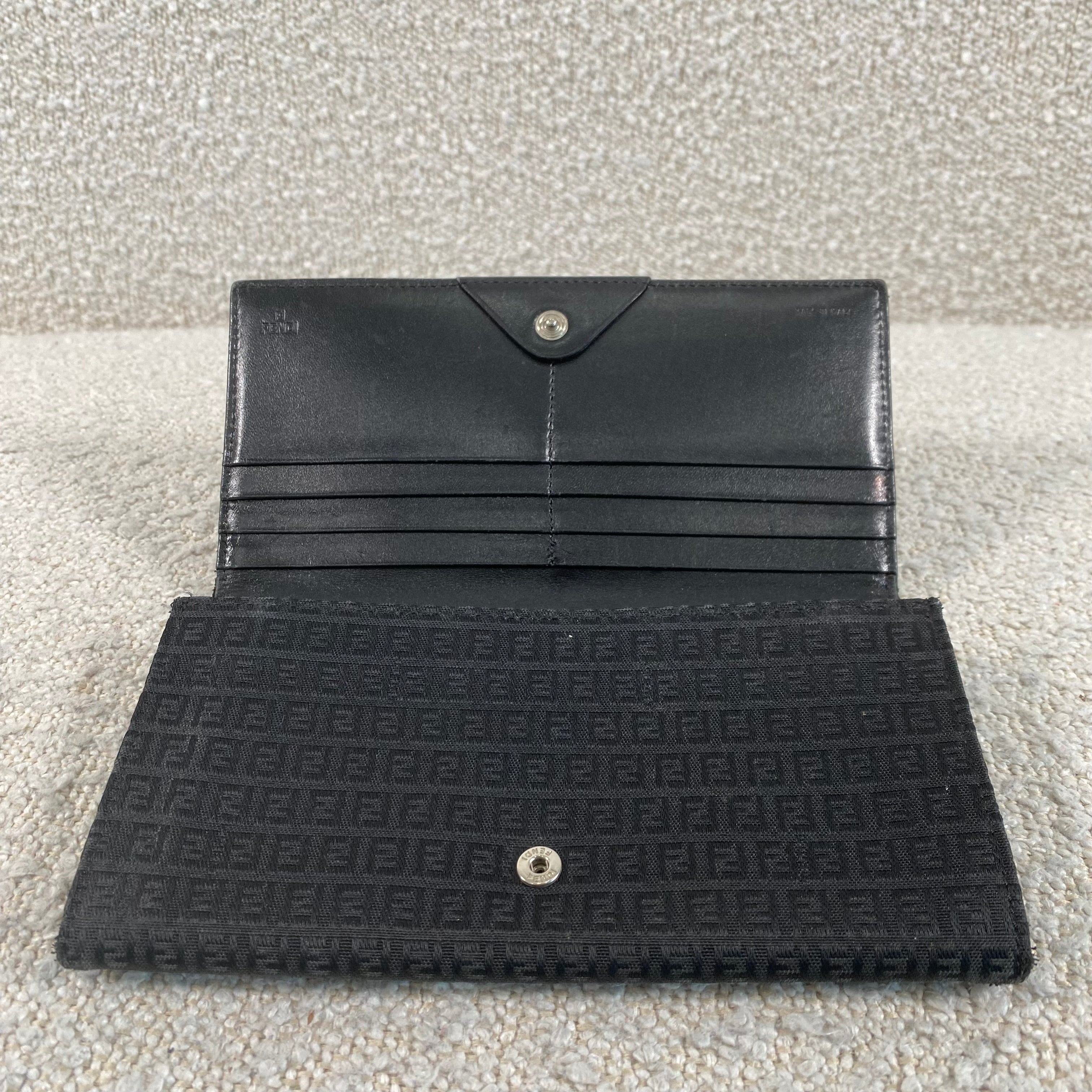 Pre-owned Fendi Black Zucca Canvas Long Wallet