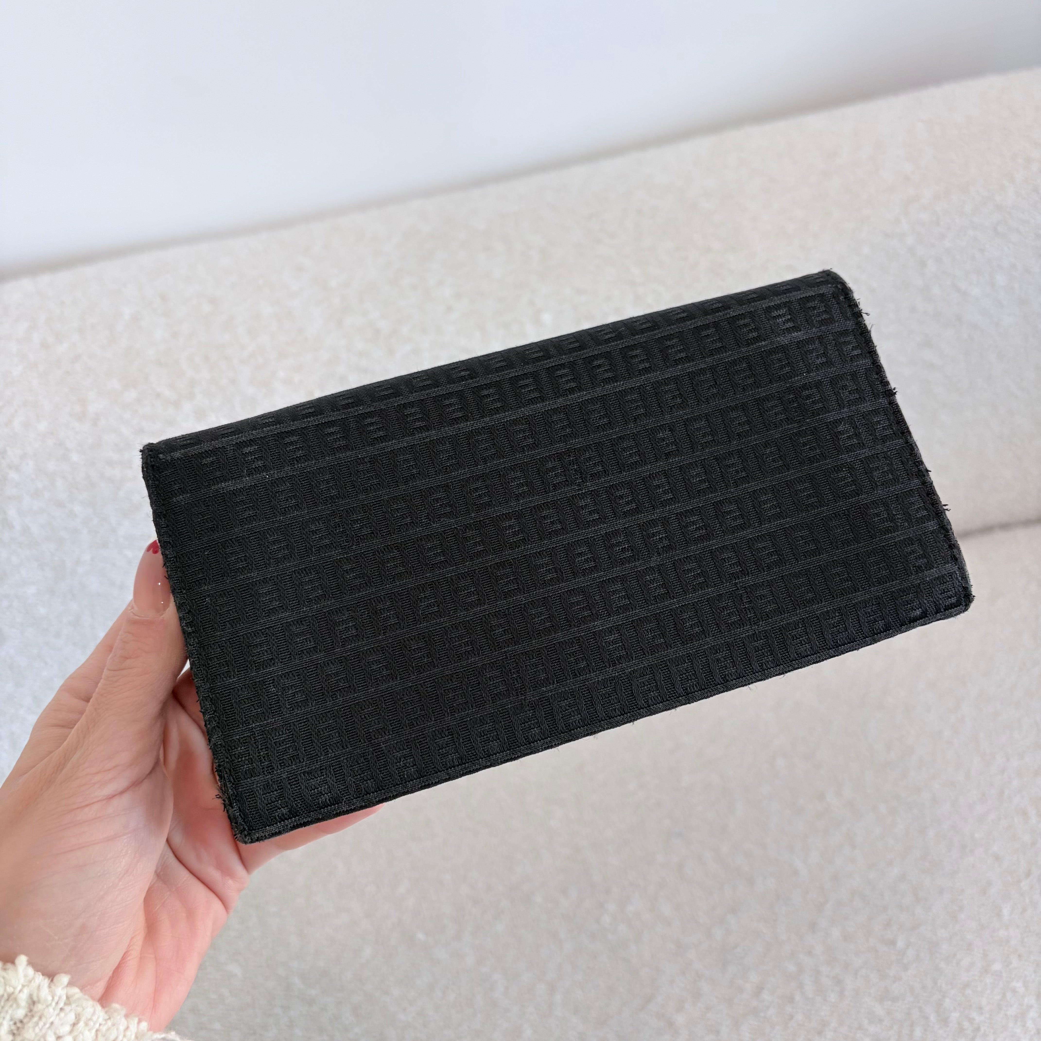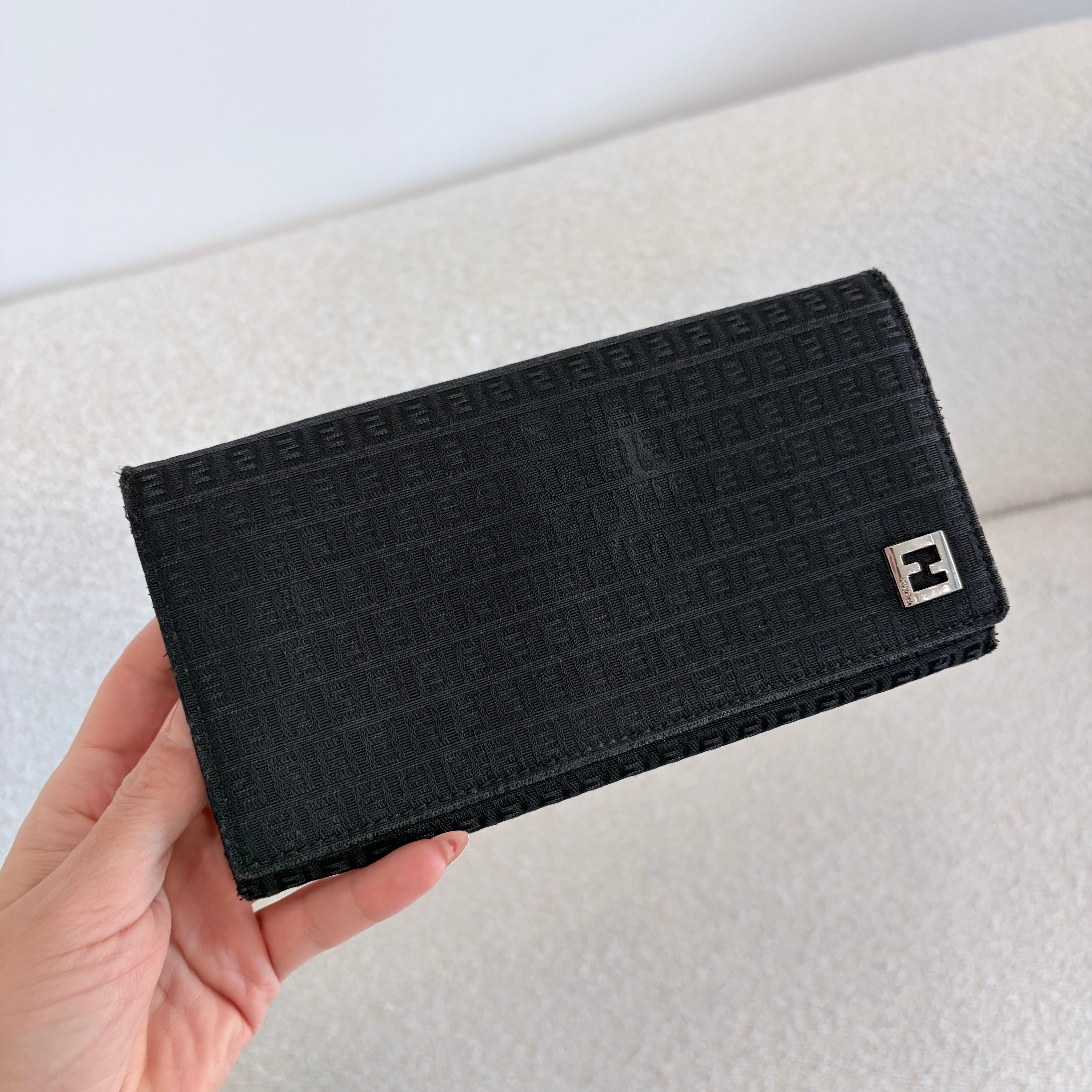Crafted in classic black Zucca monogram canvas with silver tone FF logo hardware, this slim Fendi long wallet is timeless, lightweight, and easy for everyday use. A sleek understated piece that pairs with everything ✨