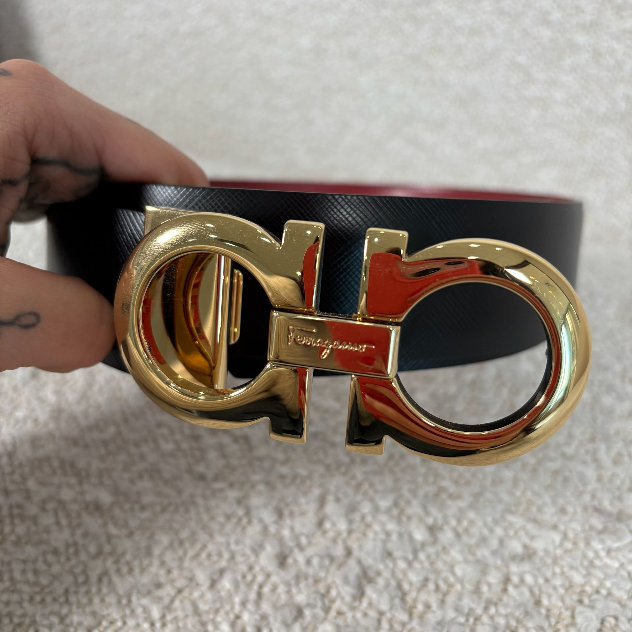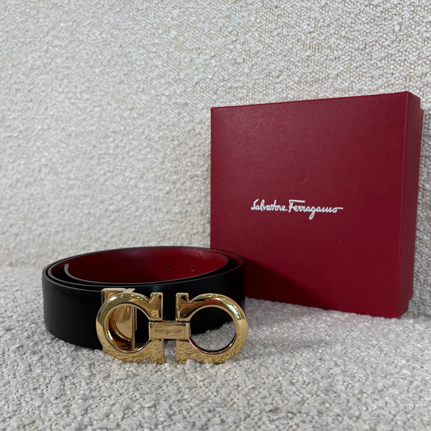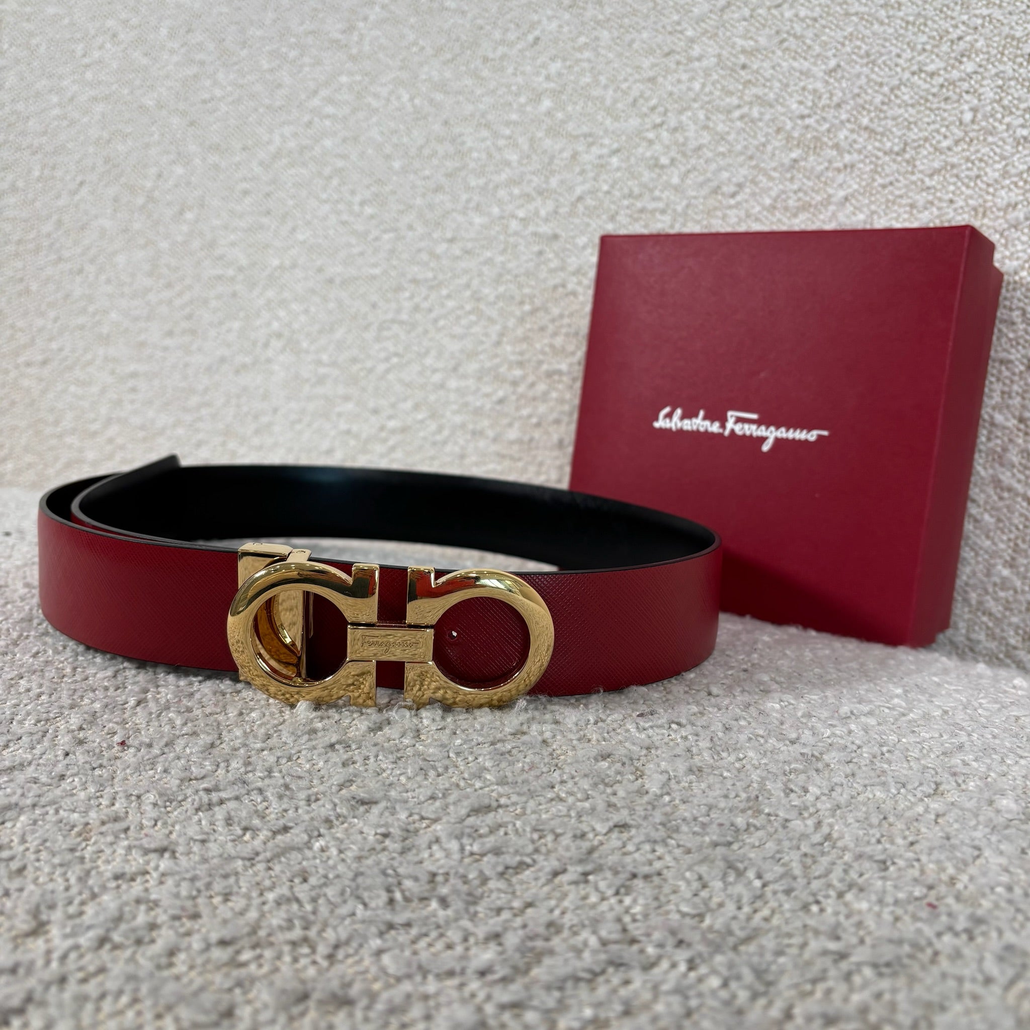 Pre-owned Ferragamo Reversible Gancini belt size 100 burgundy / black