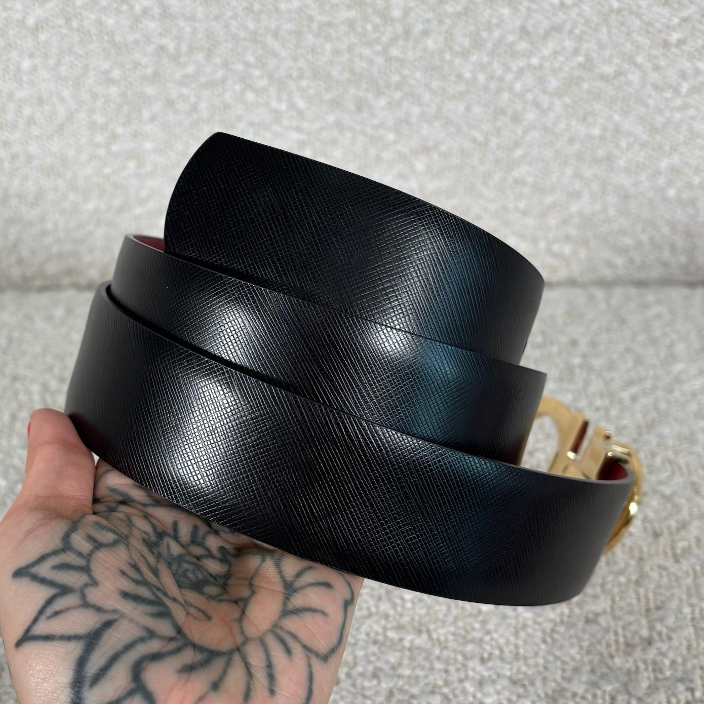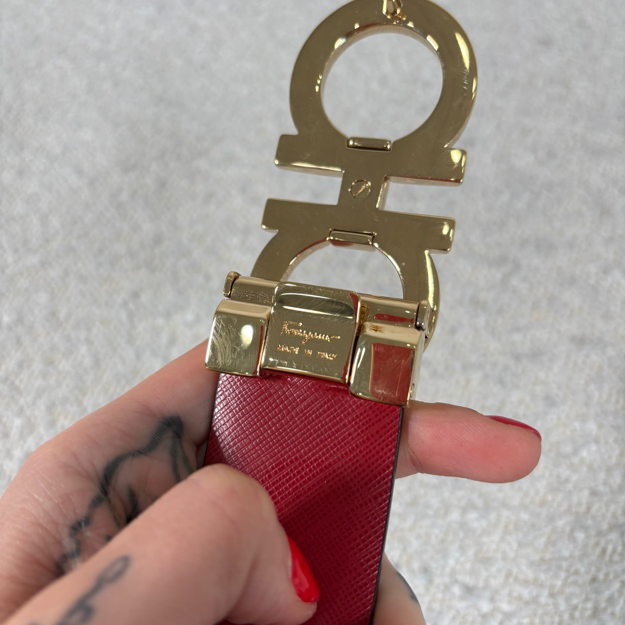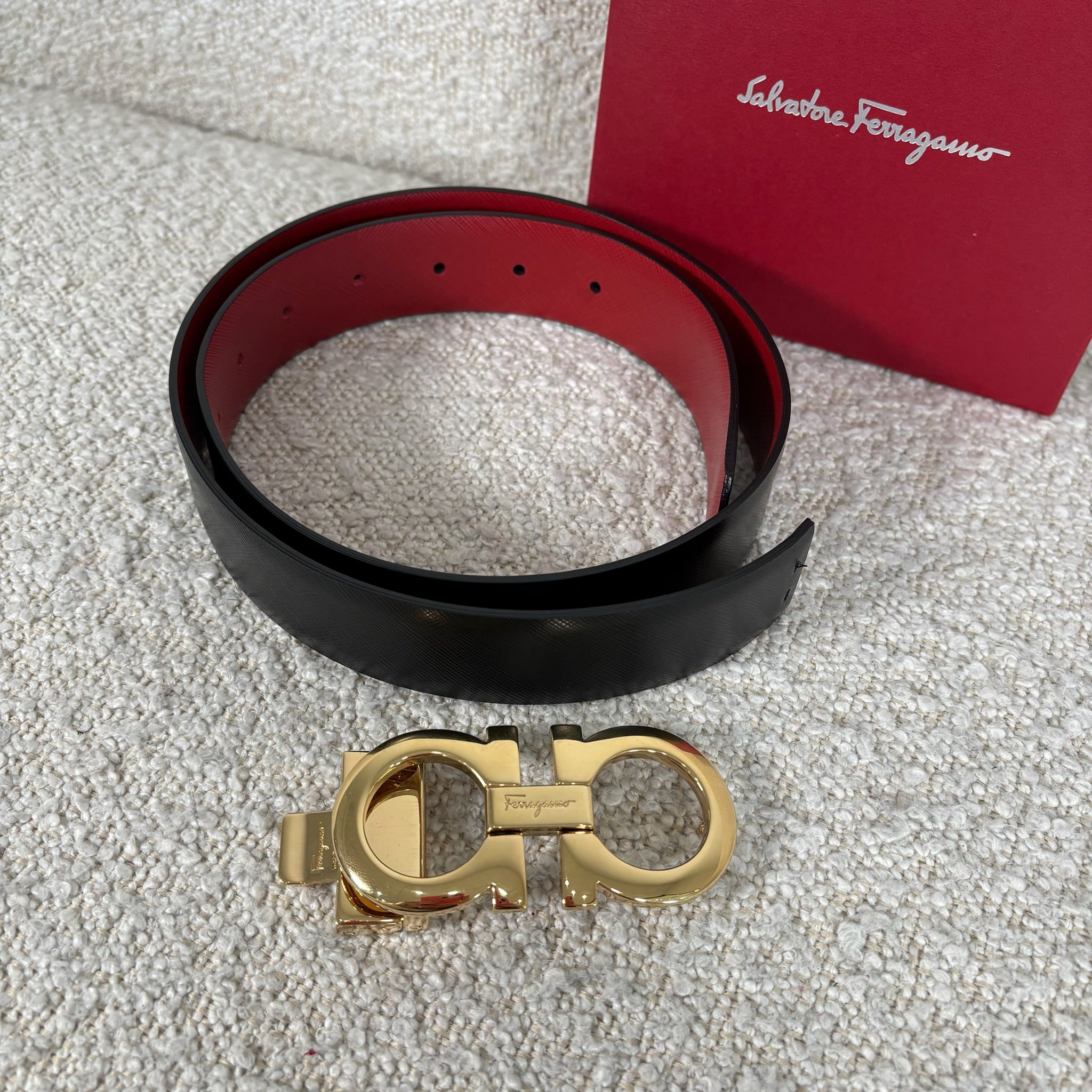 Pre-owned Ferragamo Reversible Gancini belt size 100 burgundy / black