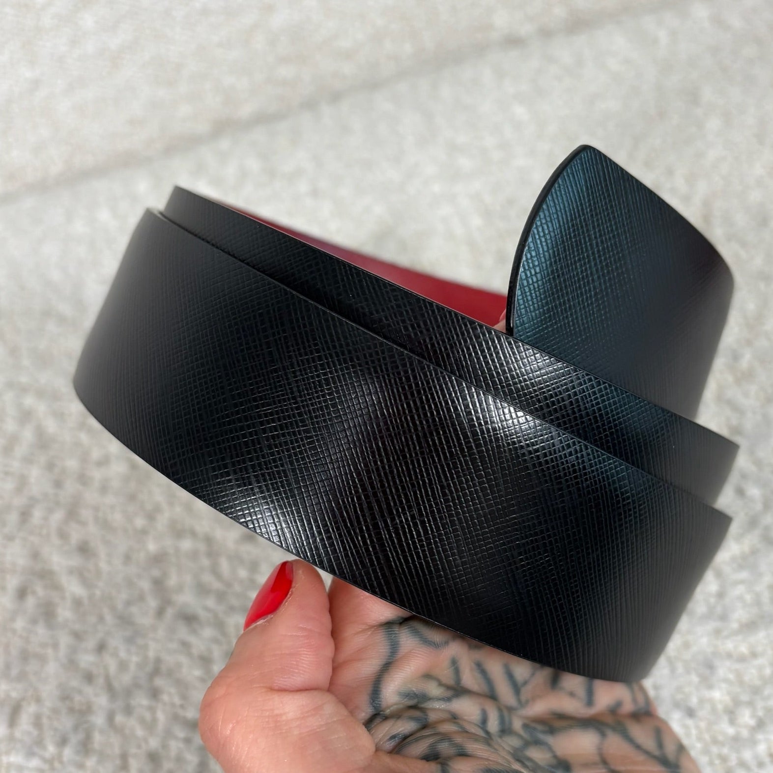 Material: Burgundy & black calfskin leather.