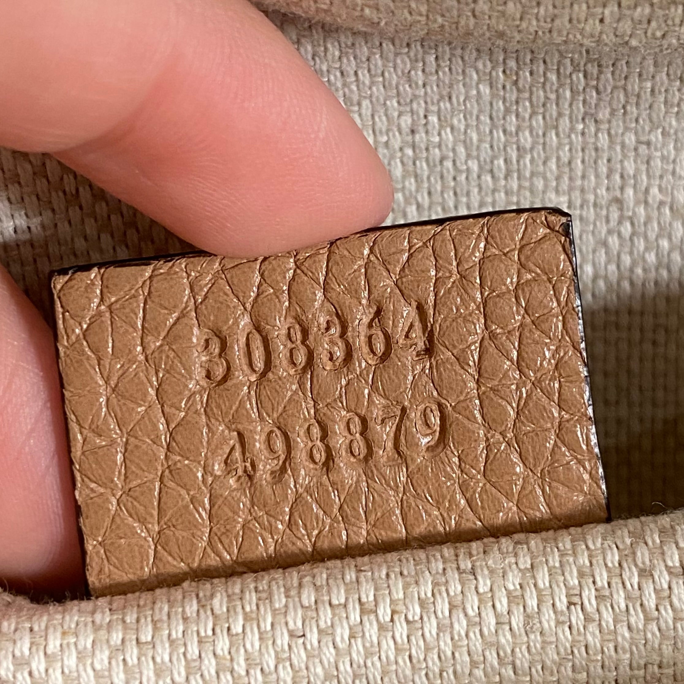 Material: Beige calfskin with gold-tone hardware.