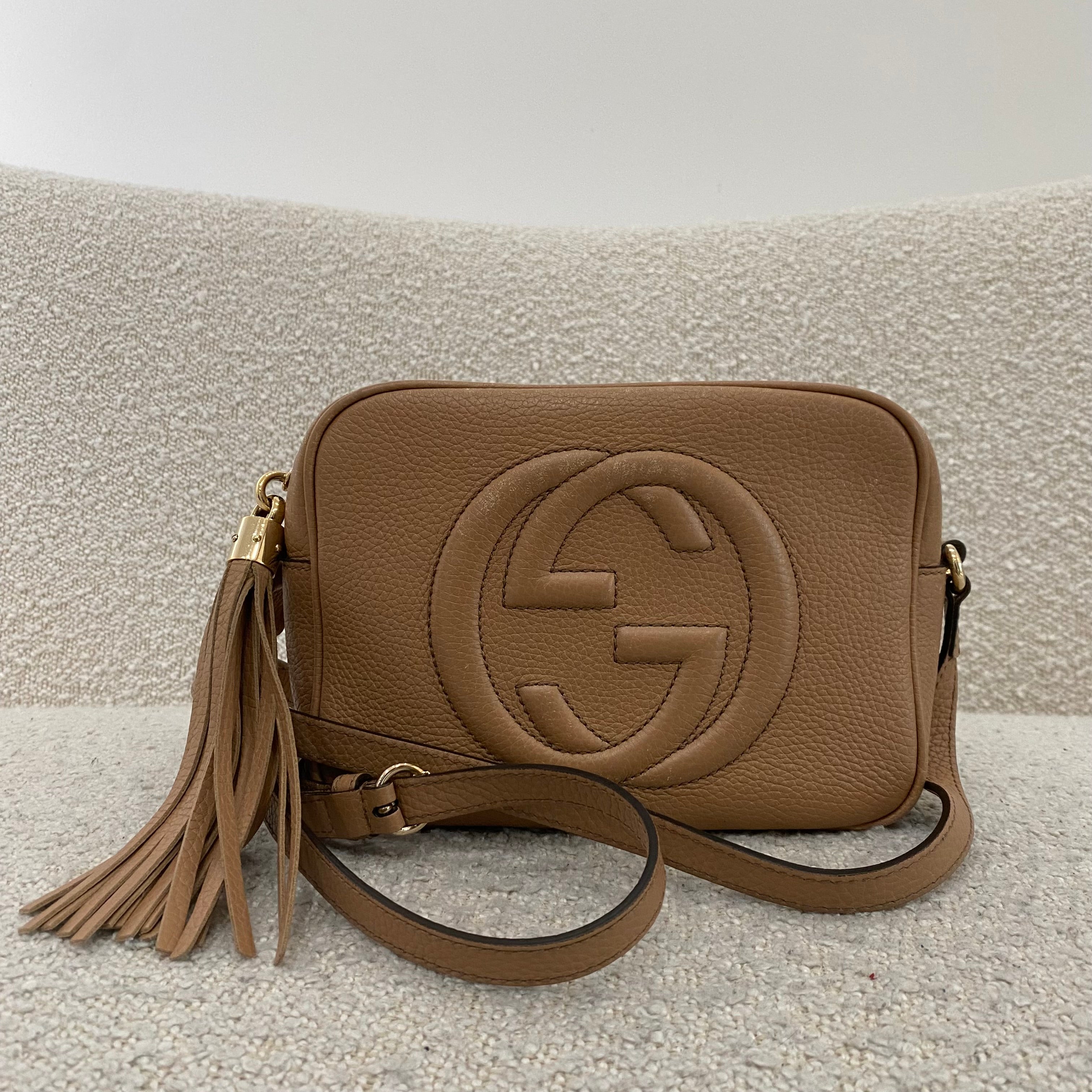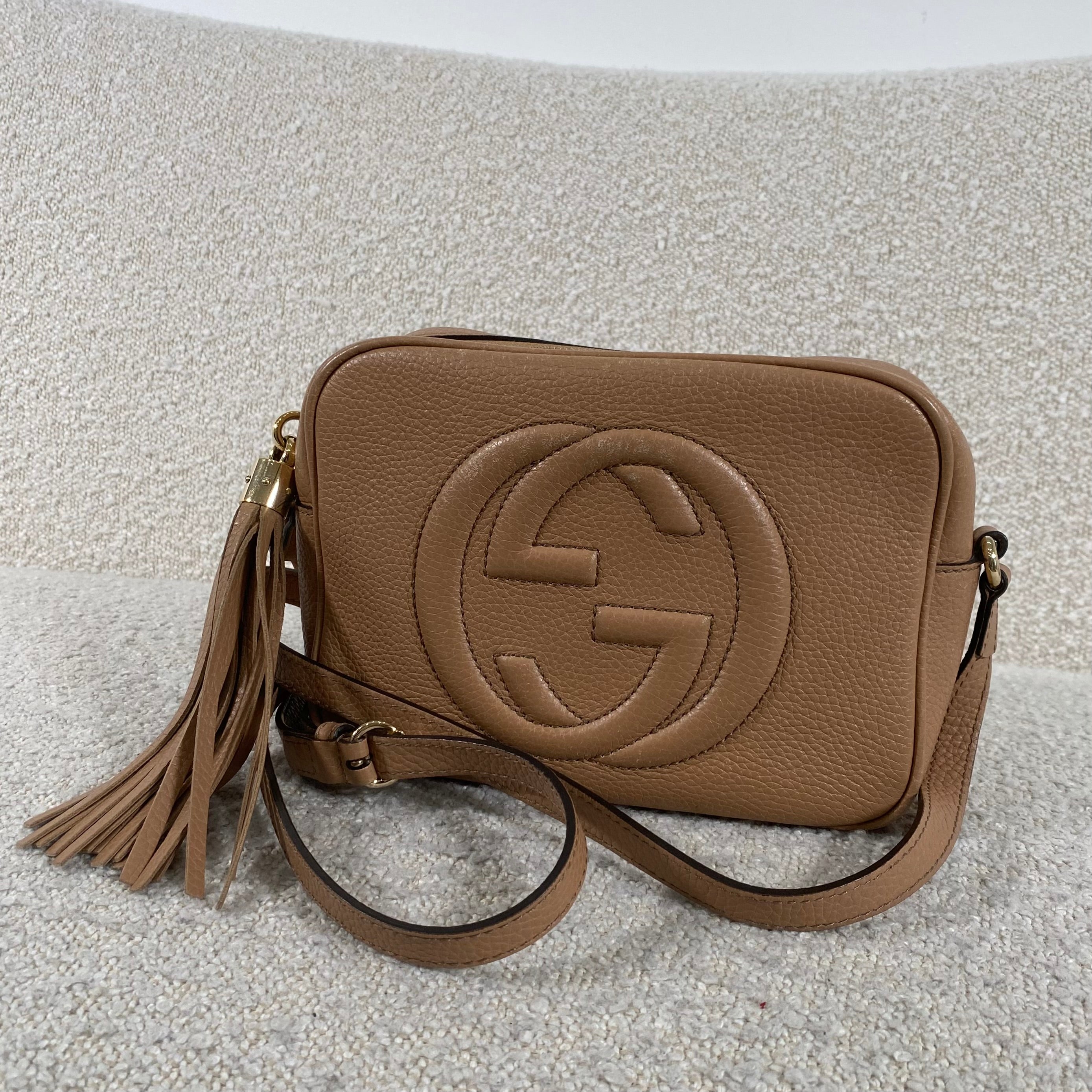 Pre-owned Gucci GG Soho Disco Camera Beige Crossbody Bag