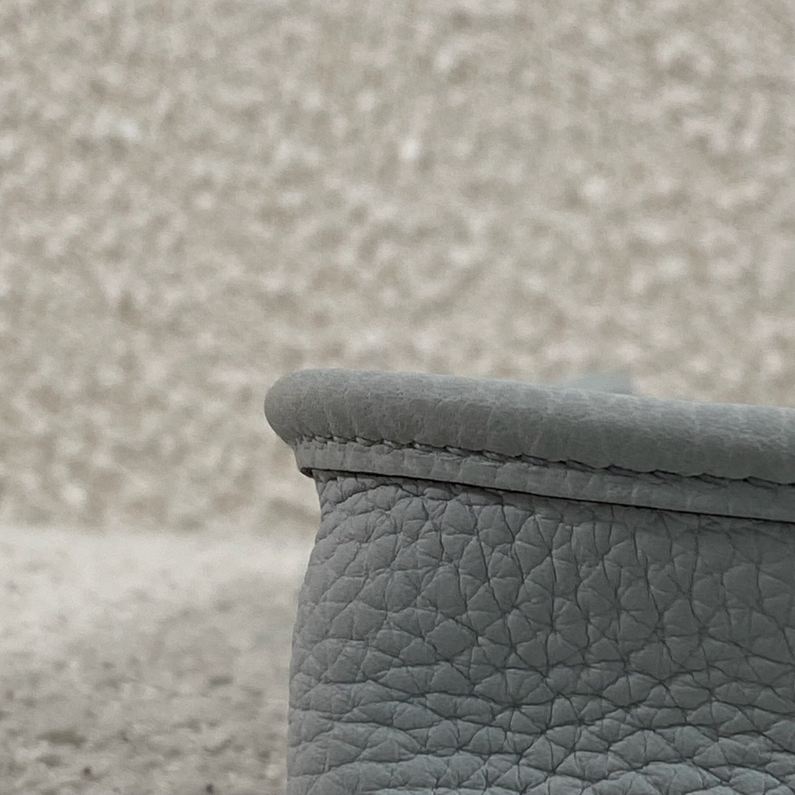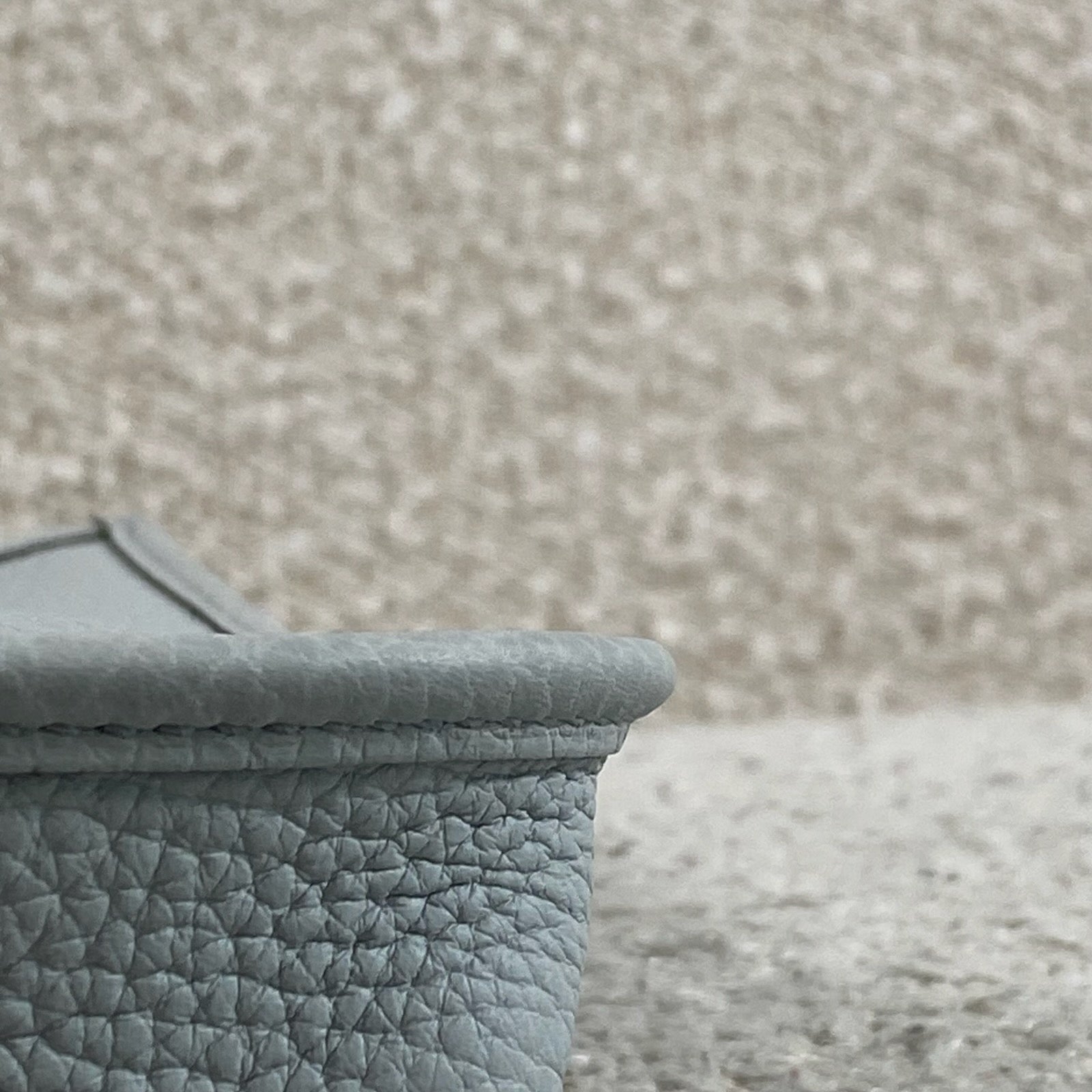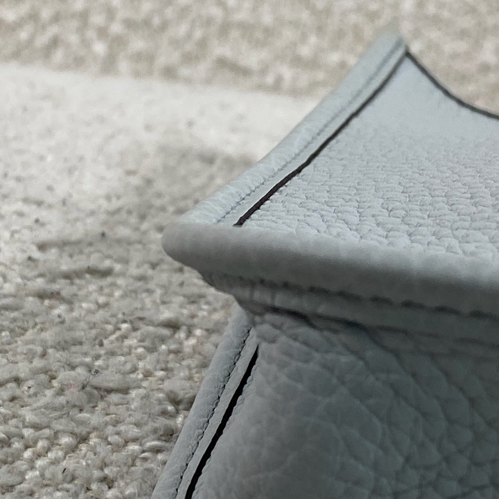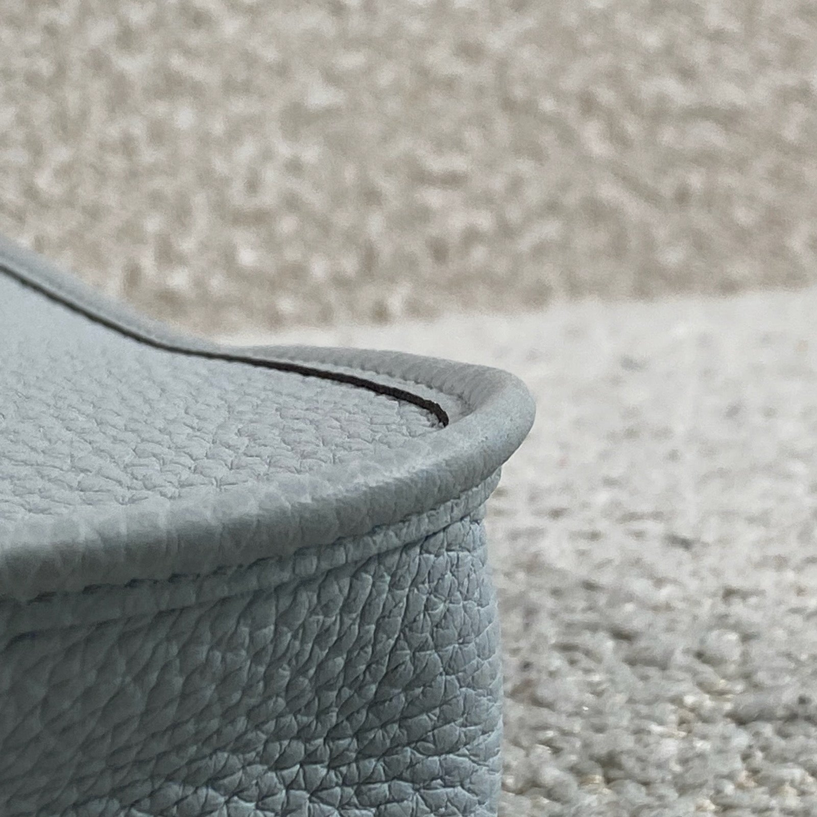 Beautiful Hermès Evelyne TPM in Bleu Pale / Gris Étain Clemence leather with palladium hardware.