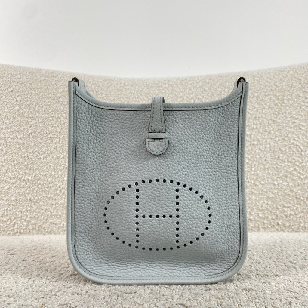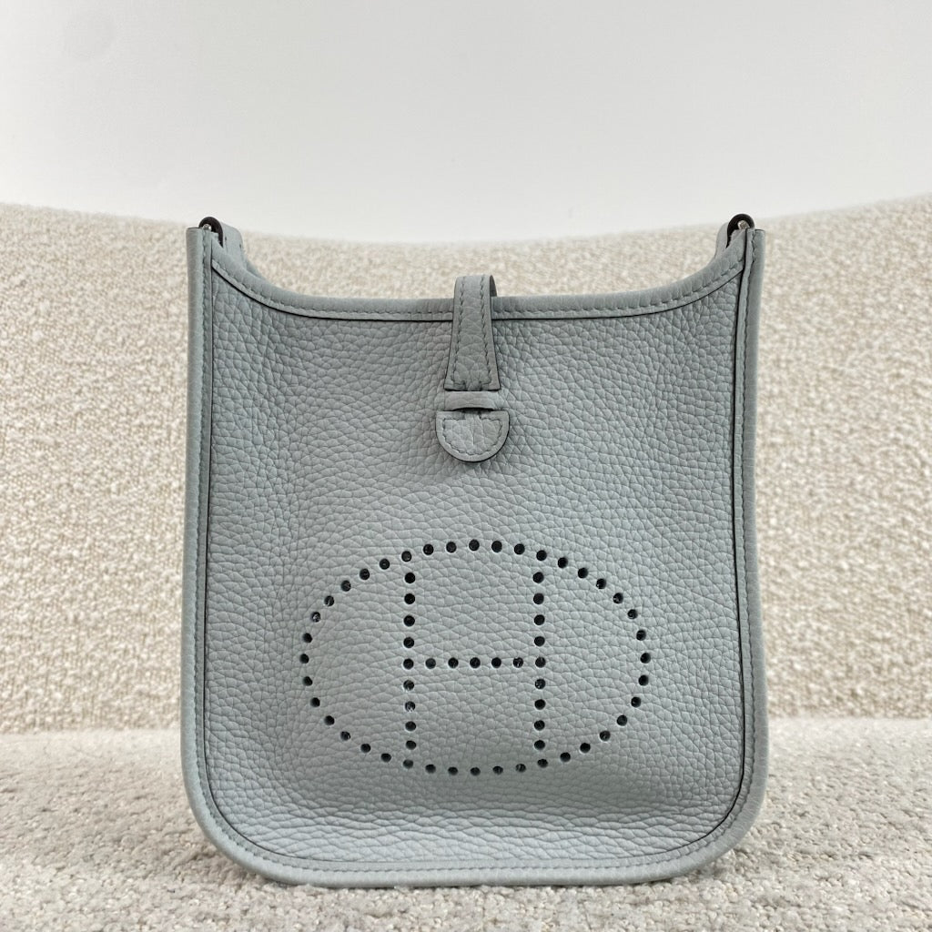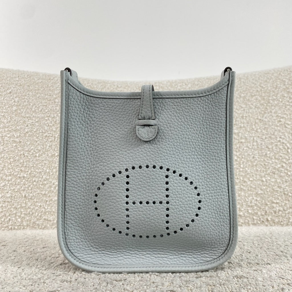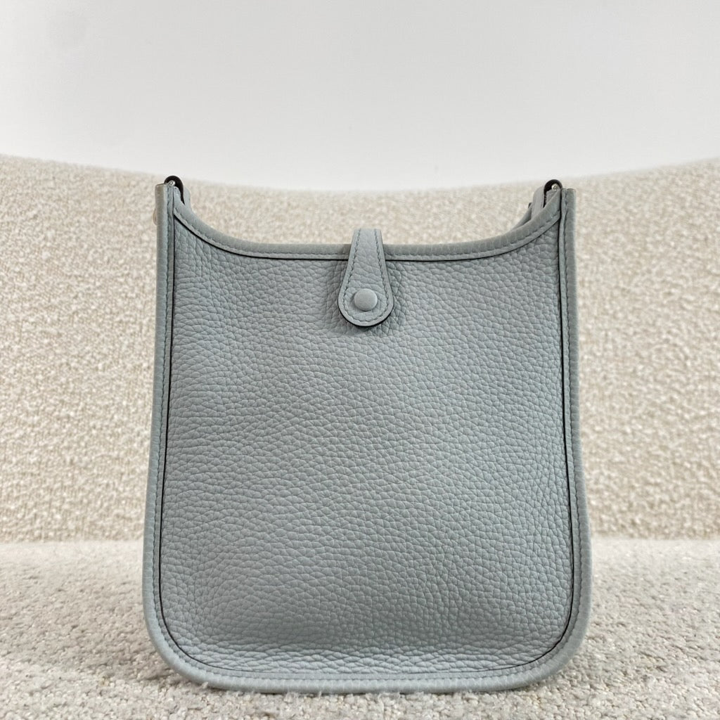 Pre-owned Hermès Mini Evelyne TPM 16 m Bleu Pale / Gris Etain Palladium Hardware