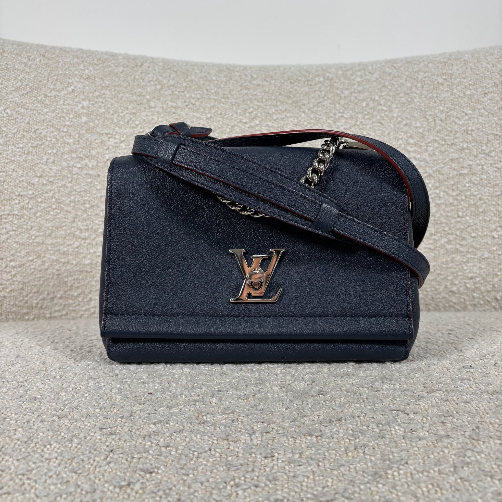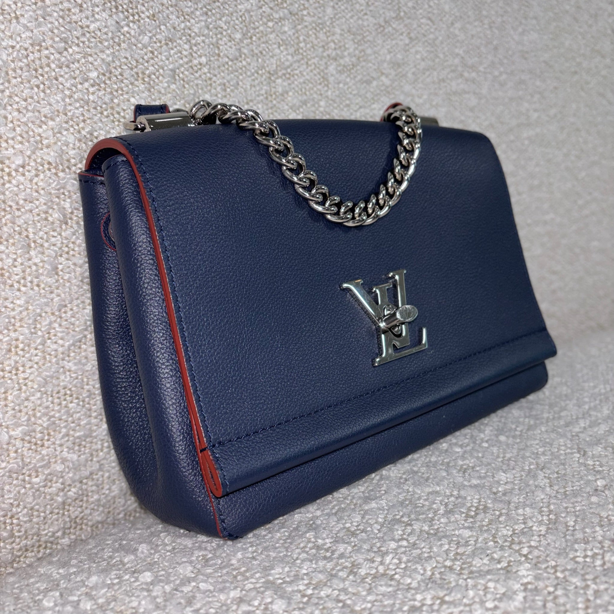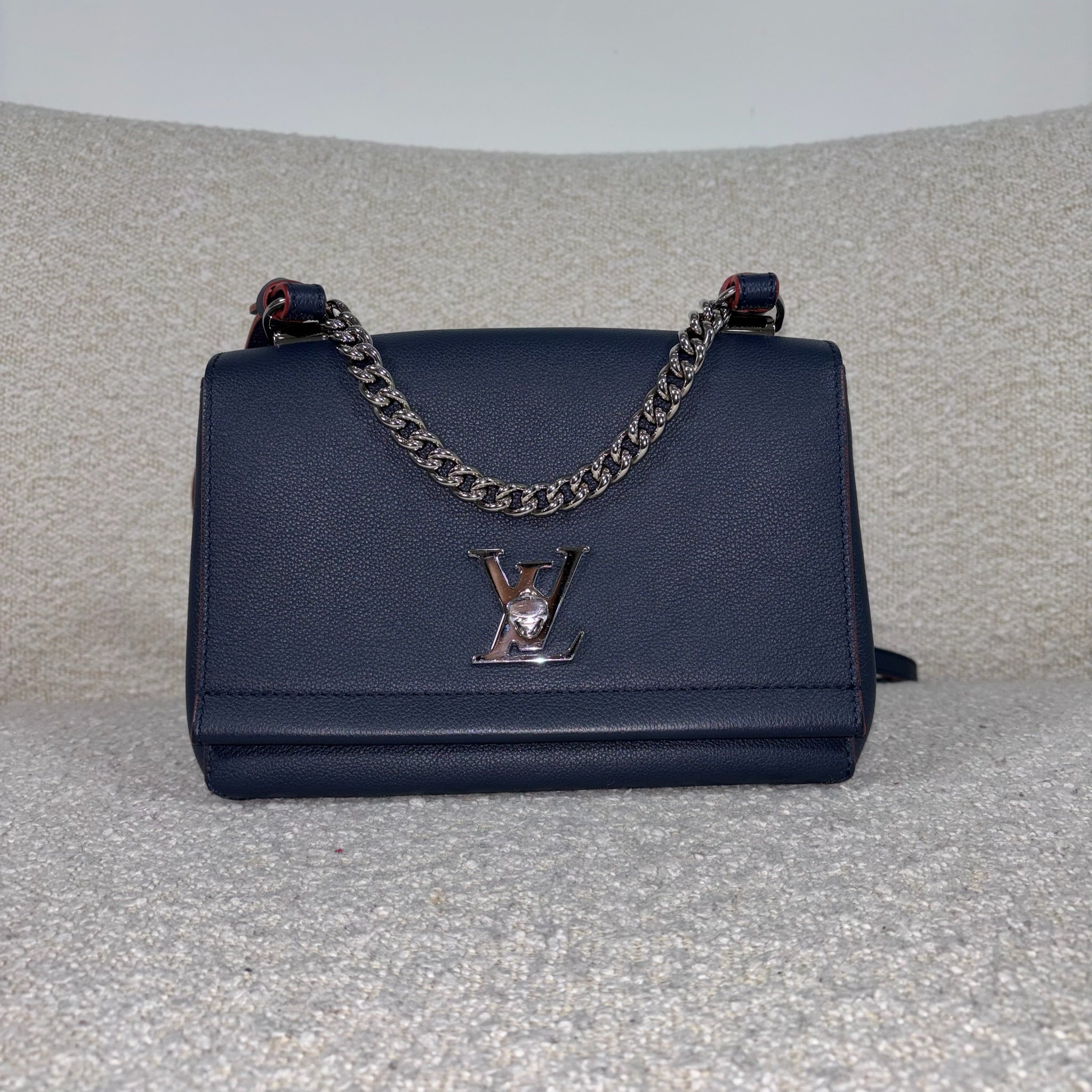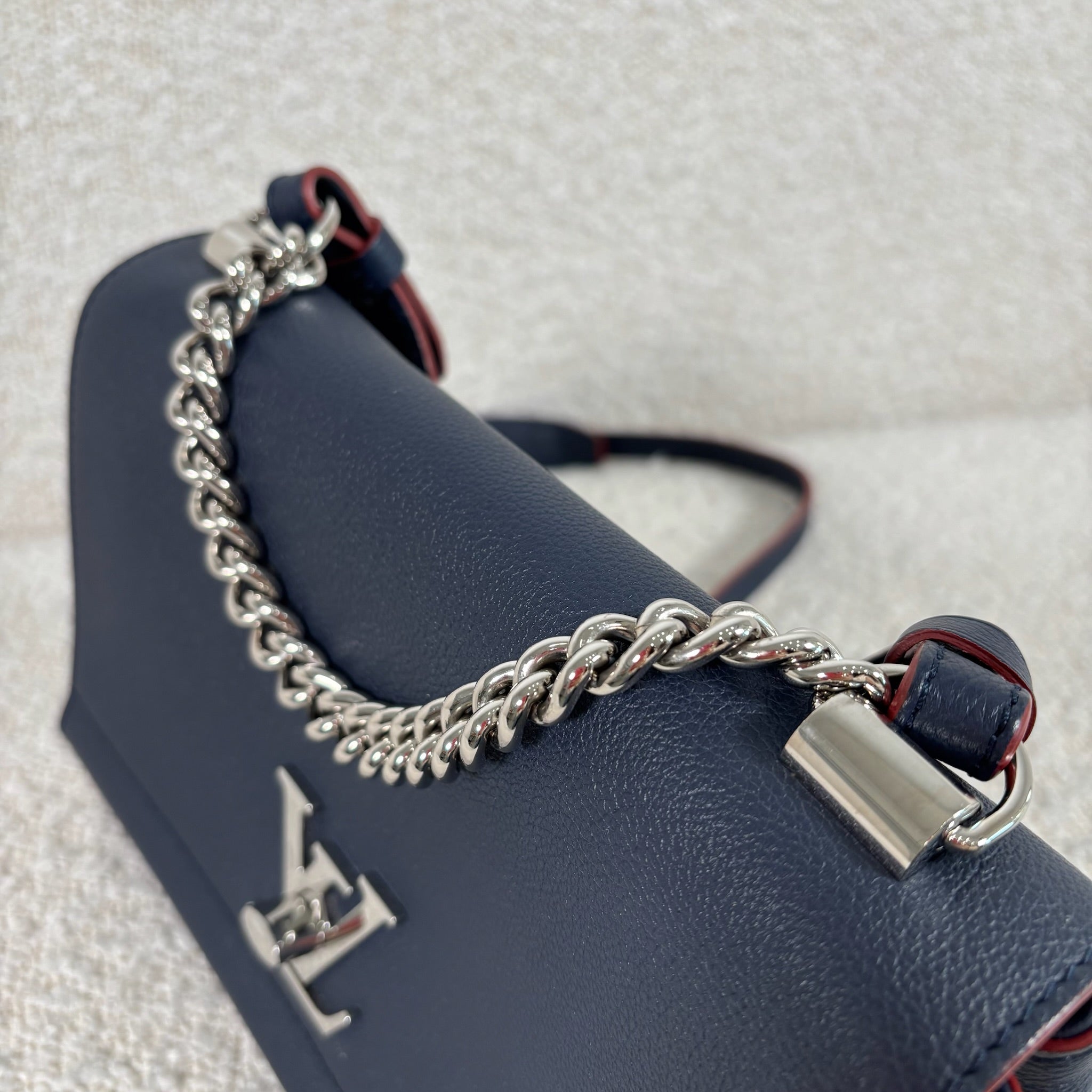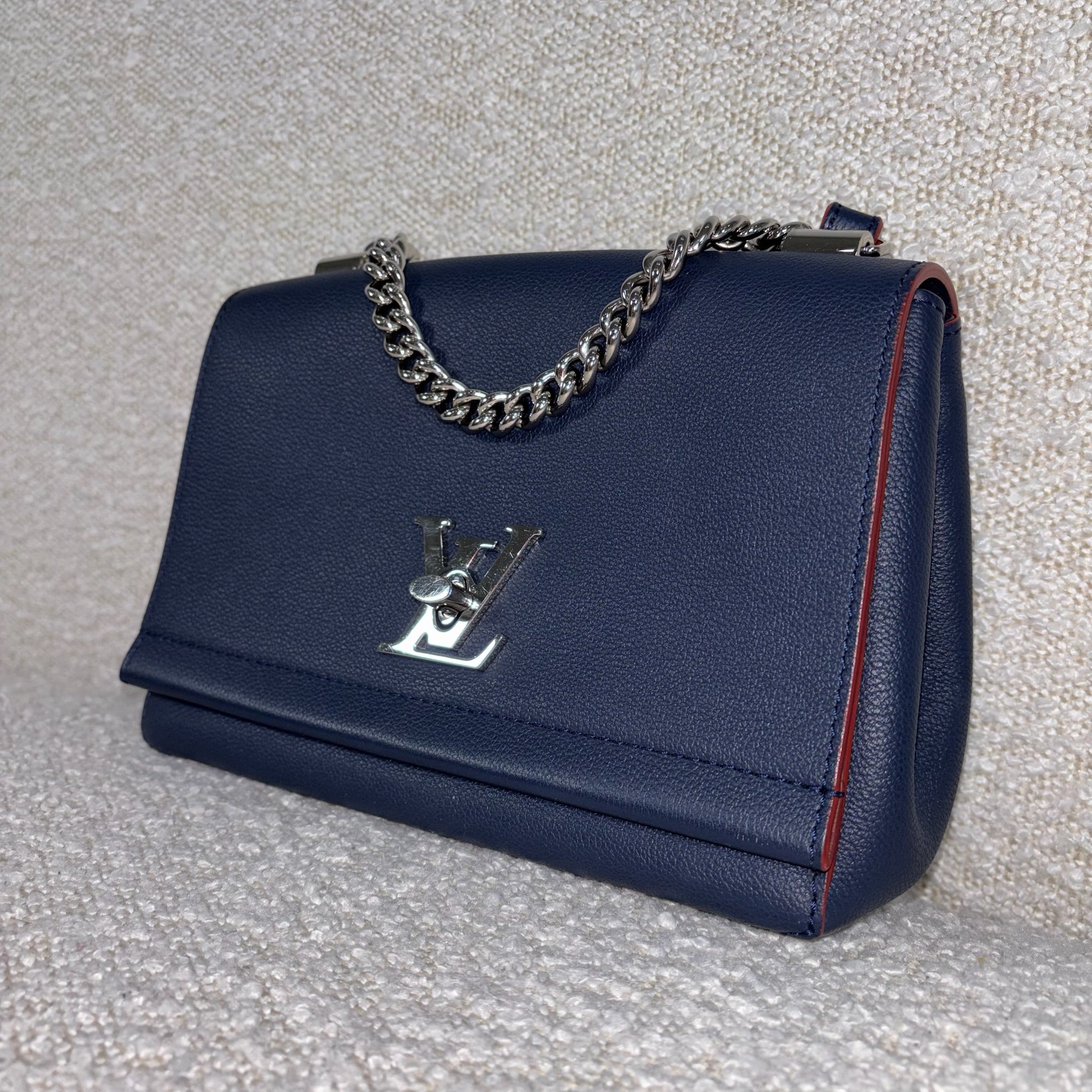 PRE-OWNED LOUIS VUITTON NAVY CALFSKIN LOCKME II CHAIN BAG BB