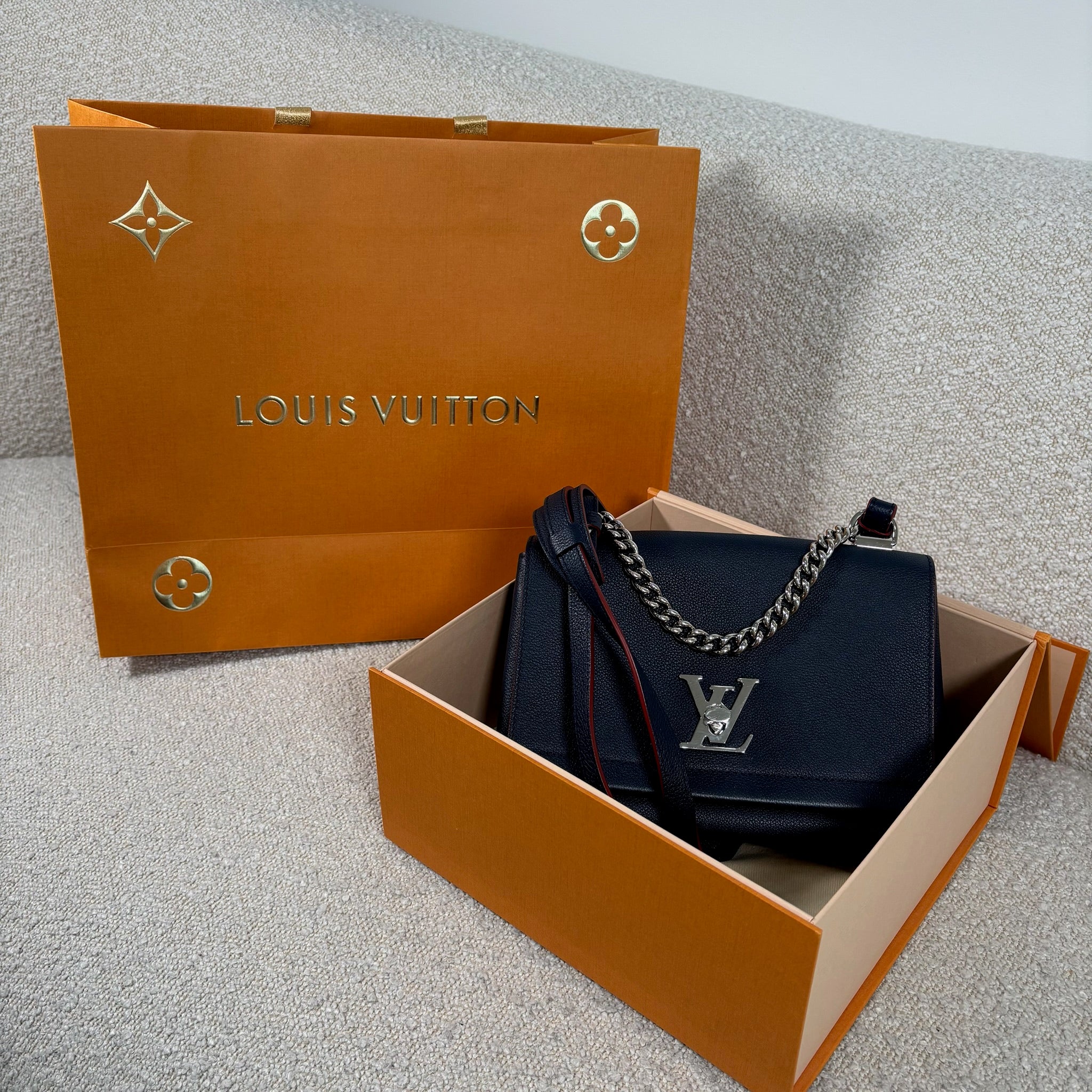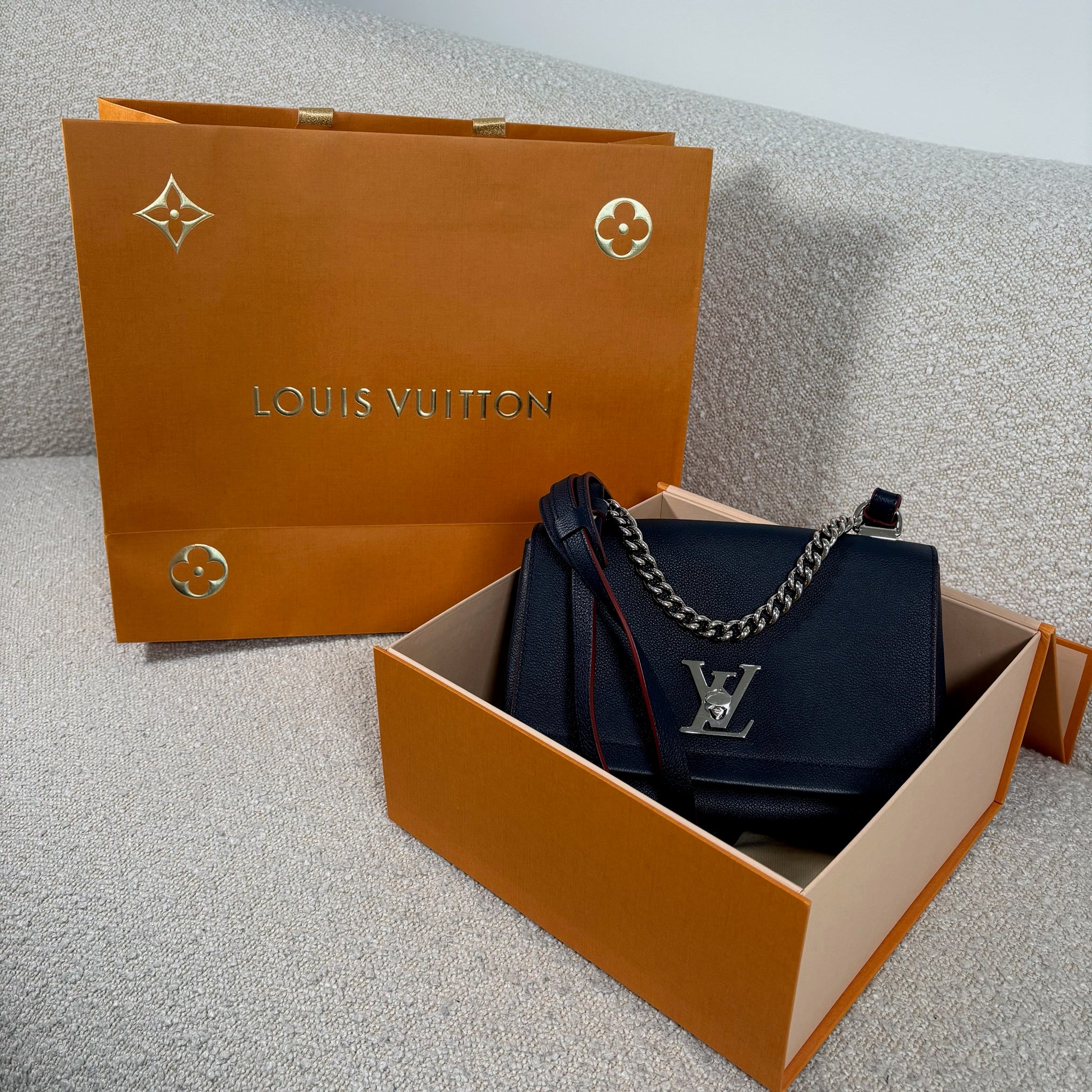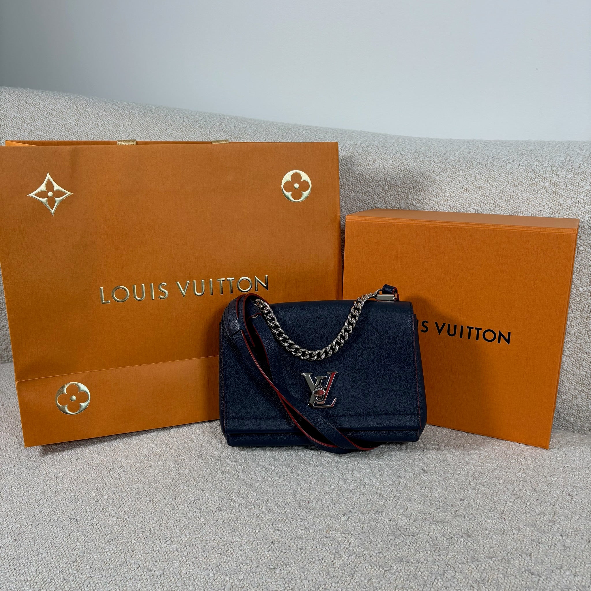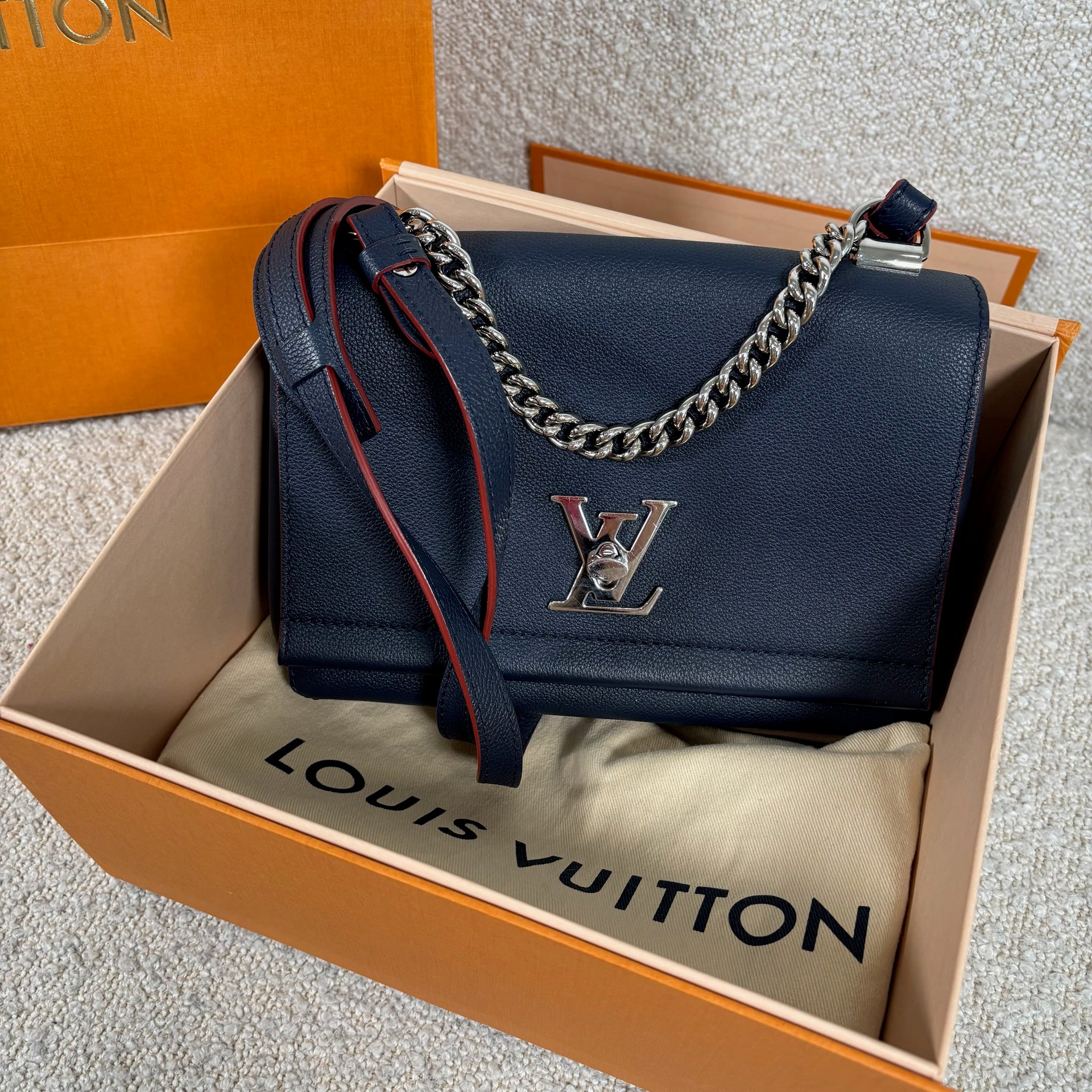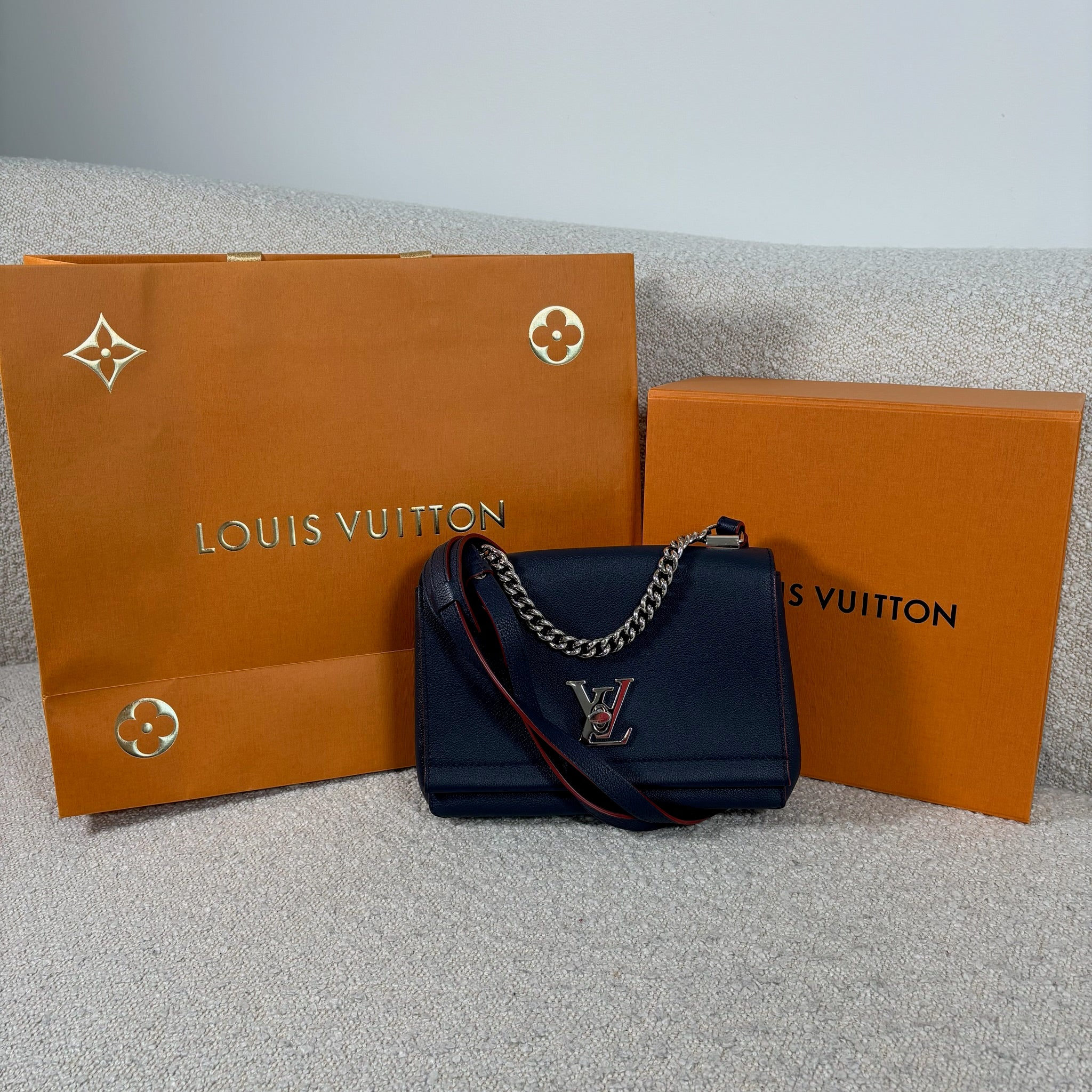 PRE-OWNED LOUIS VUITTON NAVY CALFSKIN LOCKME II CHAIN BAG BB