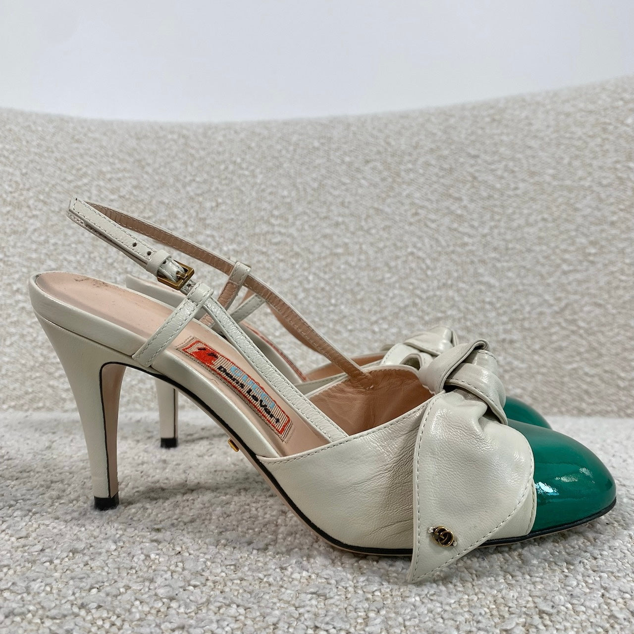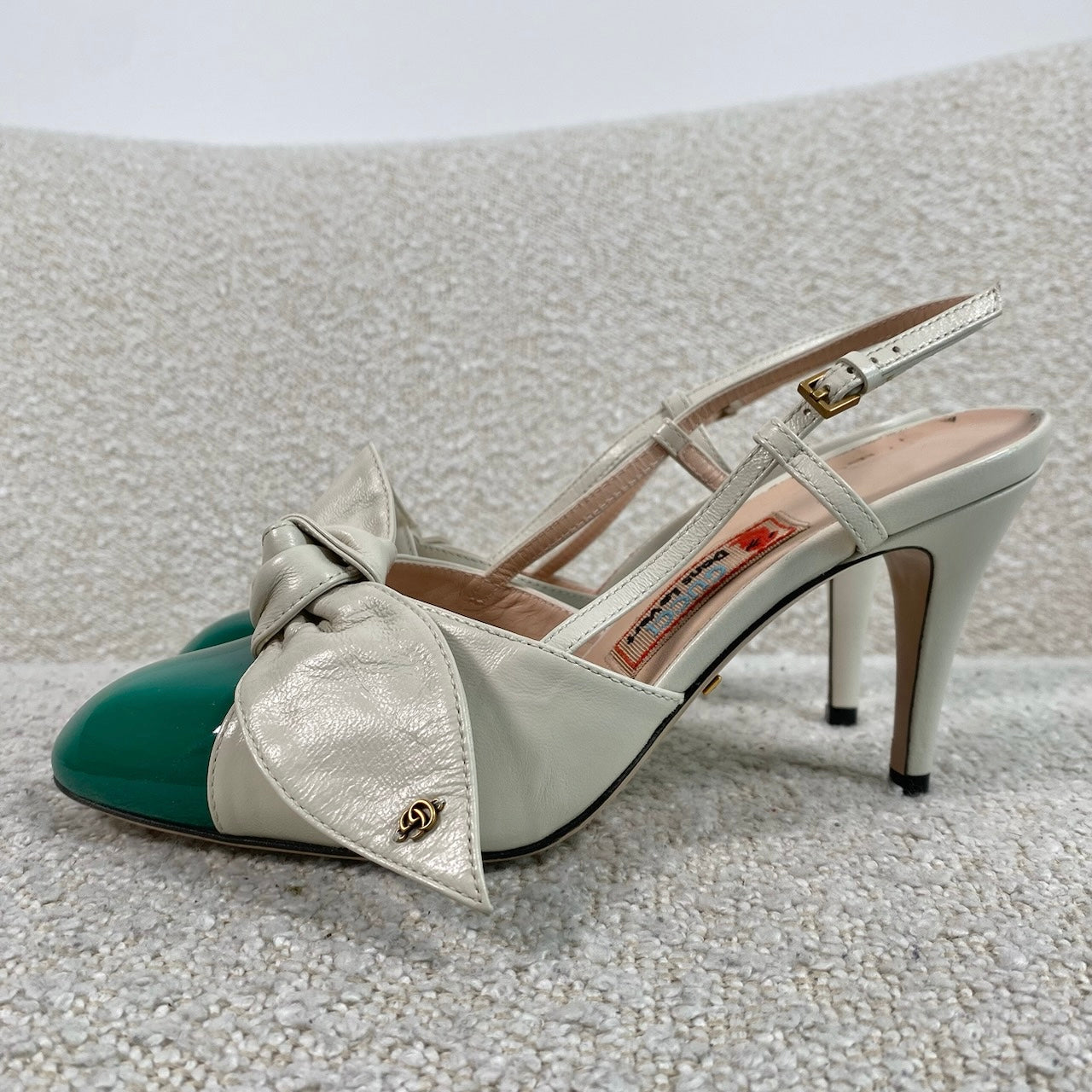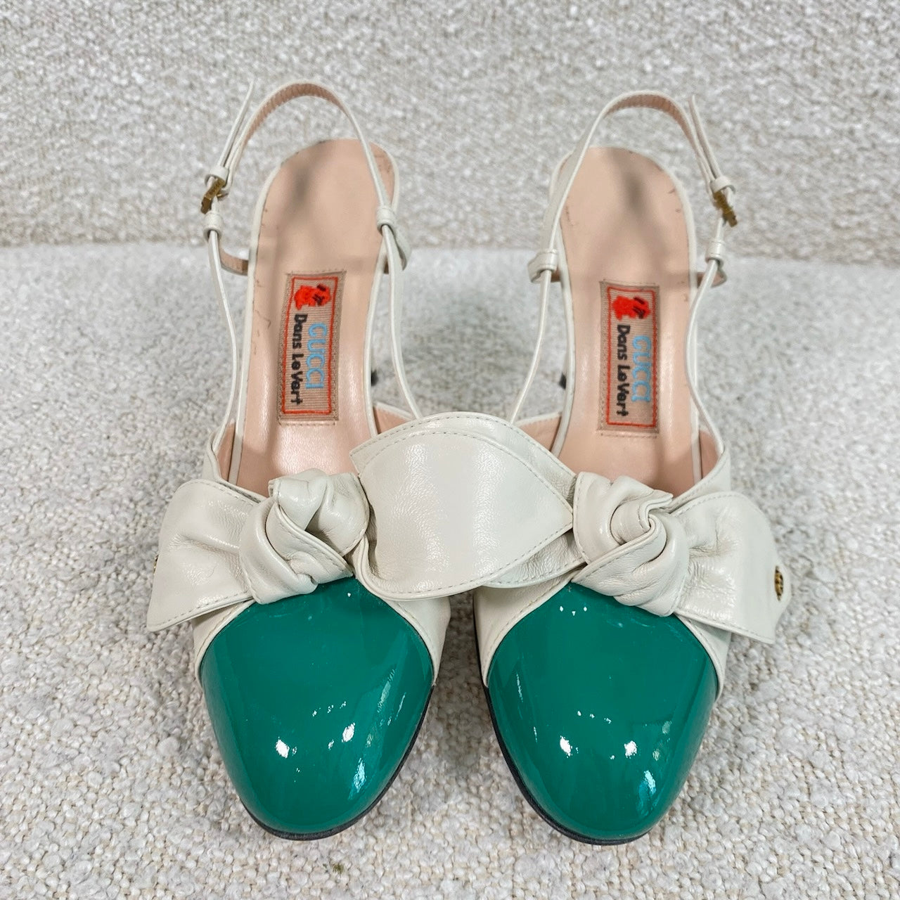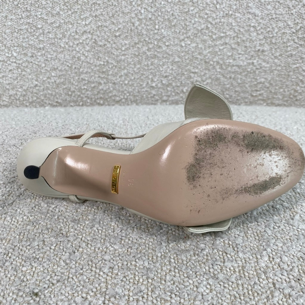 Pre-owned GUCCI Agata Bow-Embellished Smooth And Patent-Leather Slingback Sandals 36