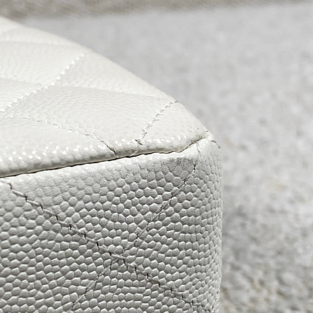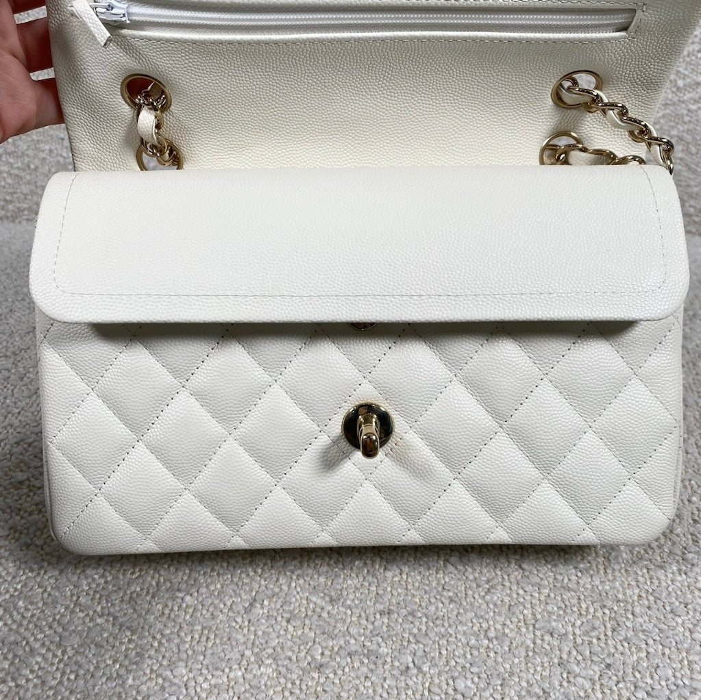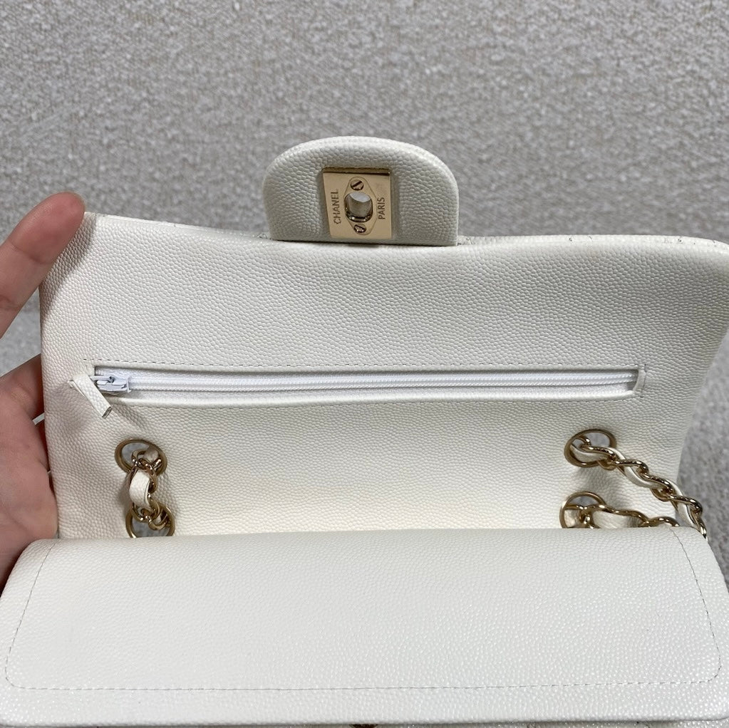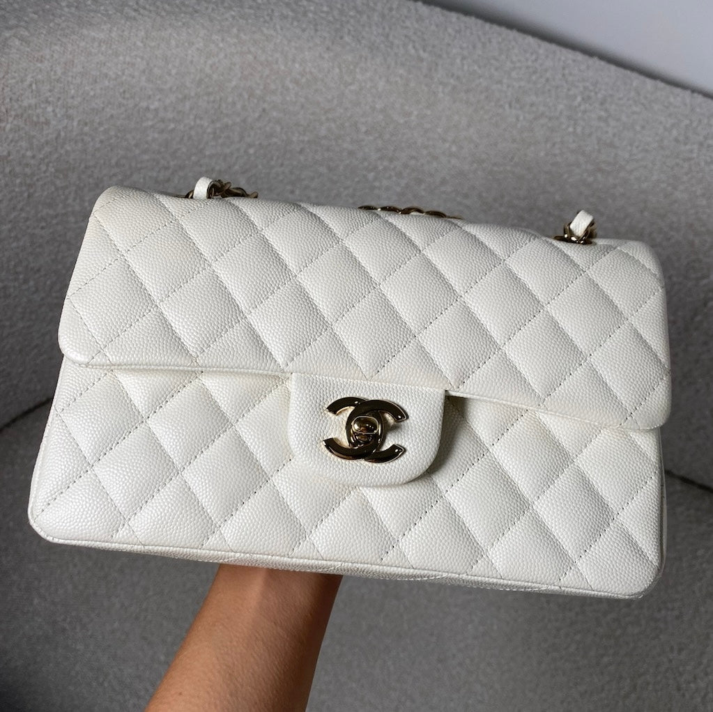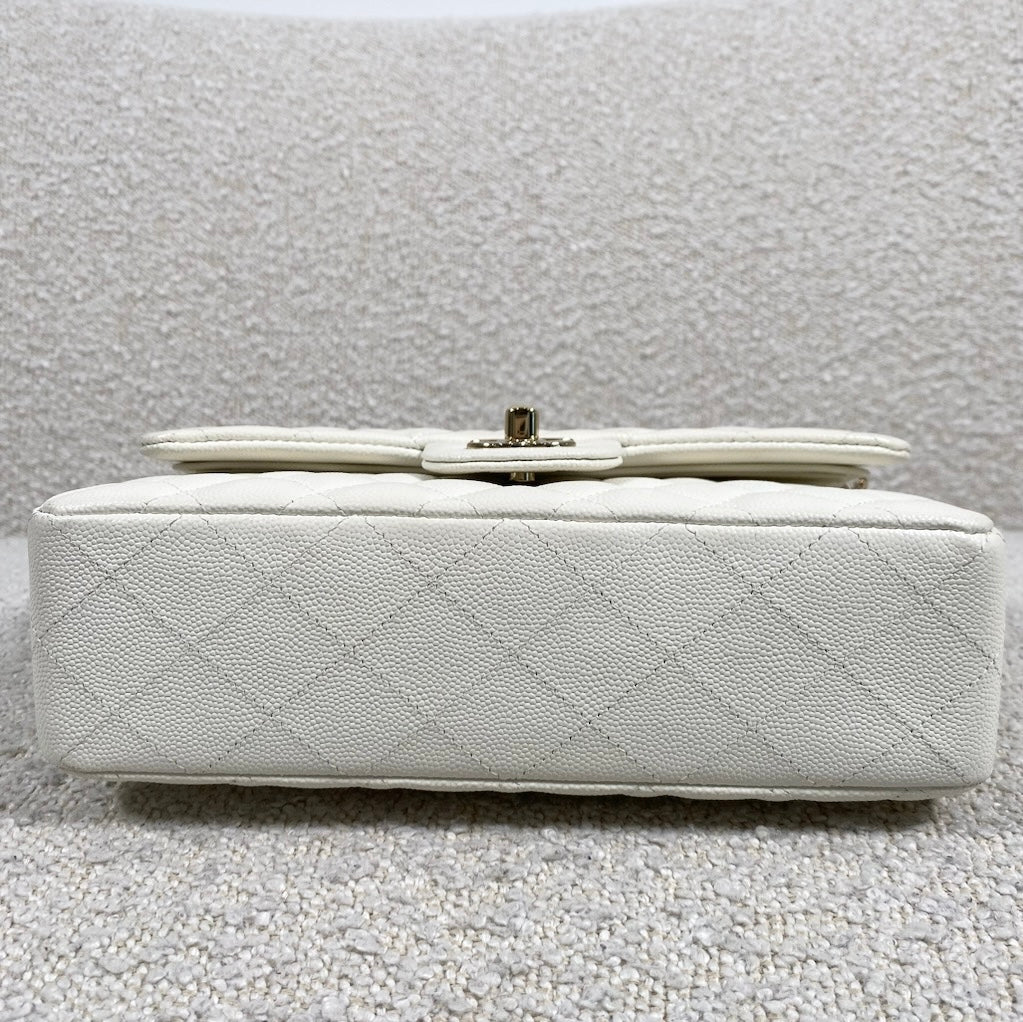 Pre-owned Chanel Classic Flap Bag Small White Caviar Gold tone hardware