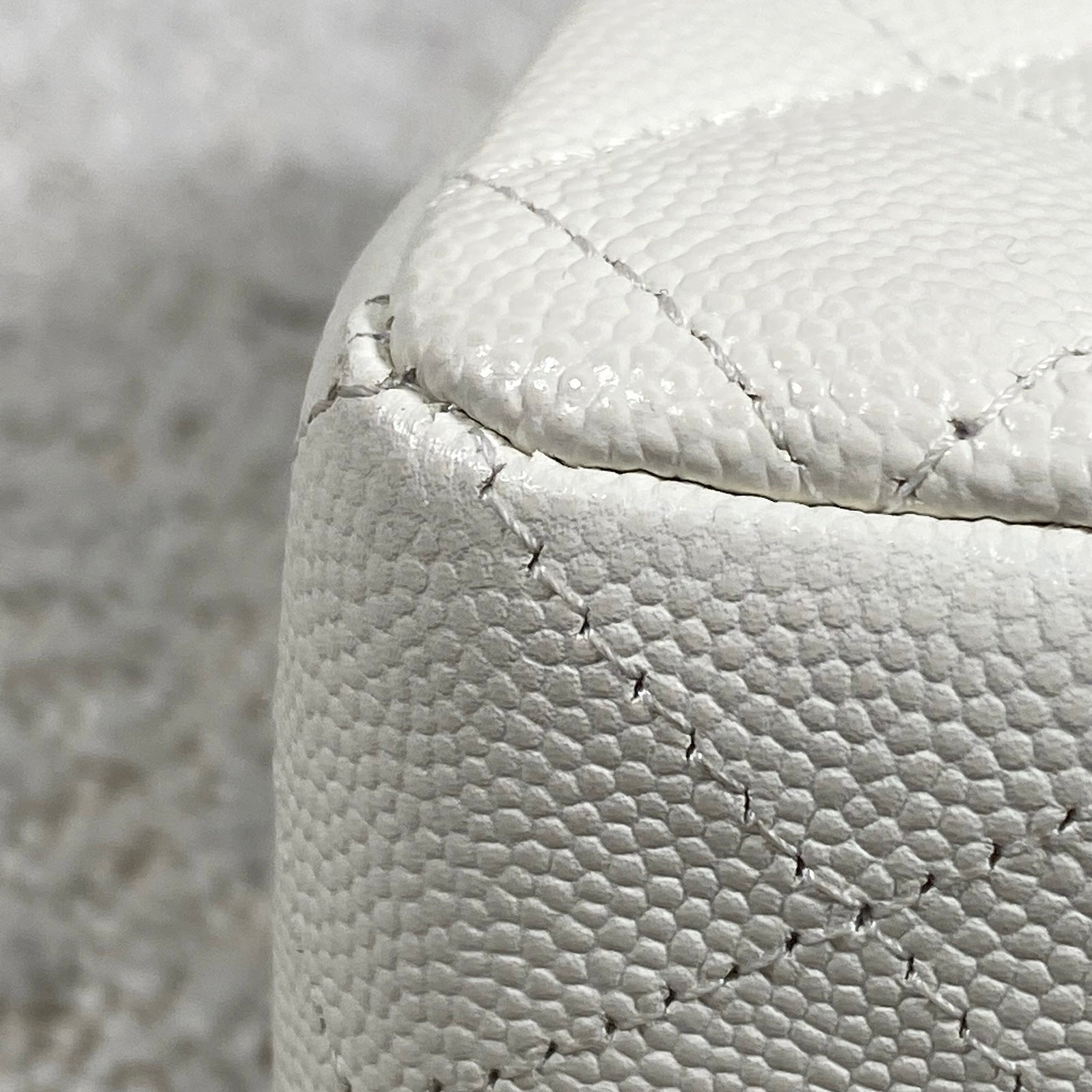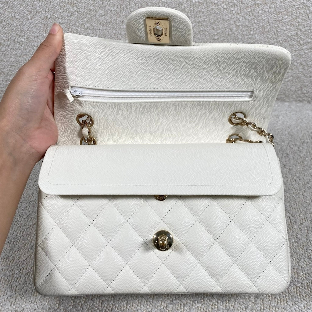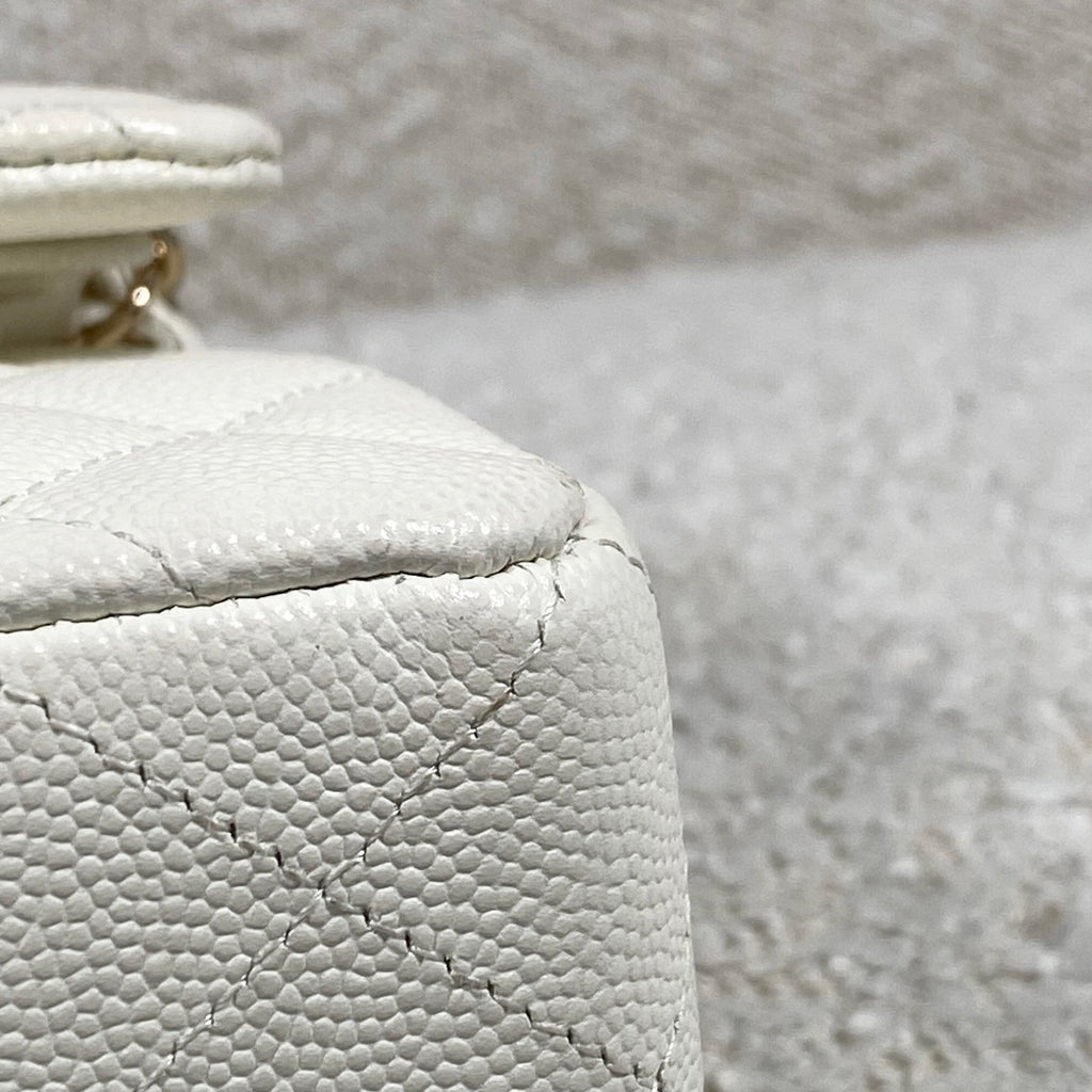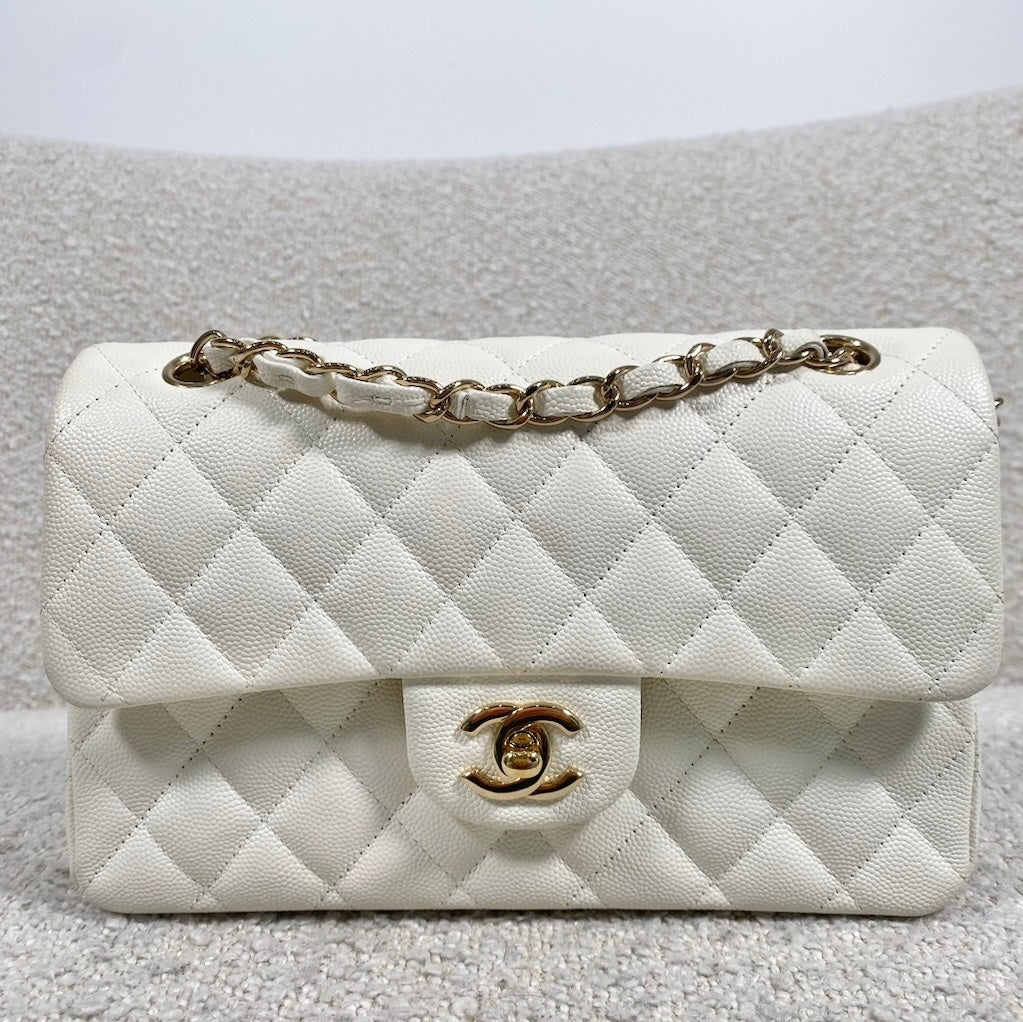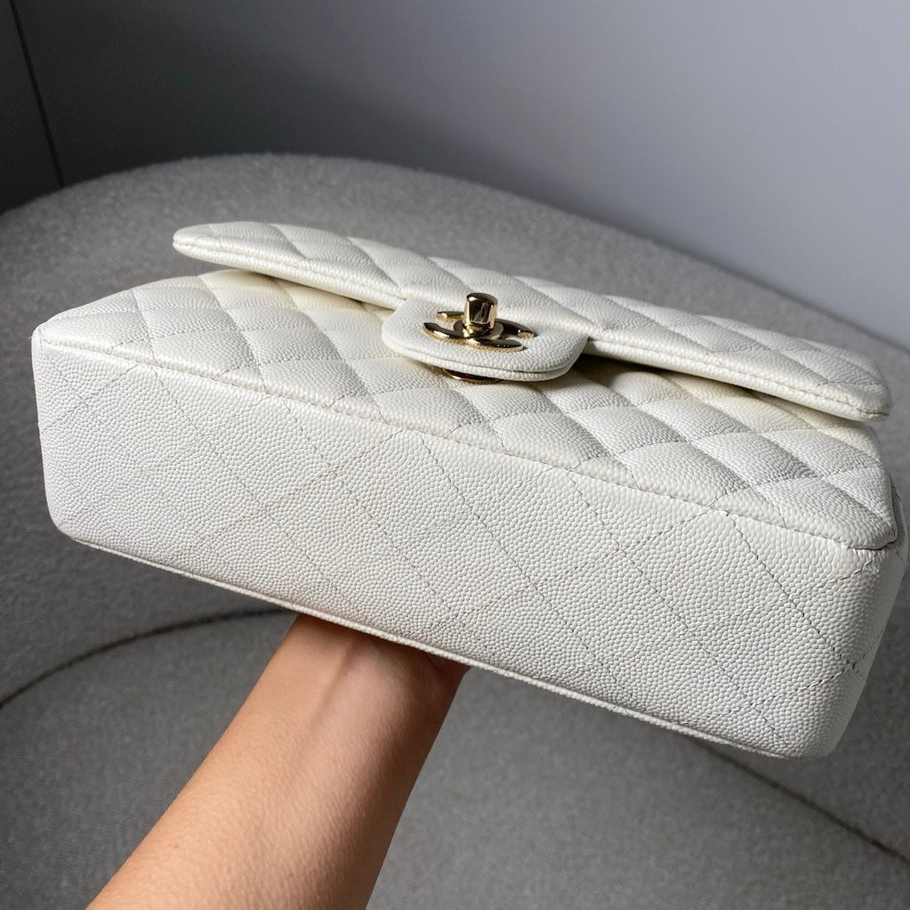 Pre-owned Chanel Classic Flap Bag Small White Caviar Gold tone hardware