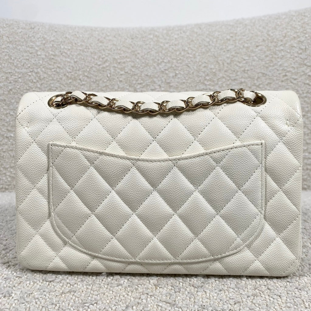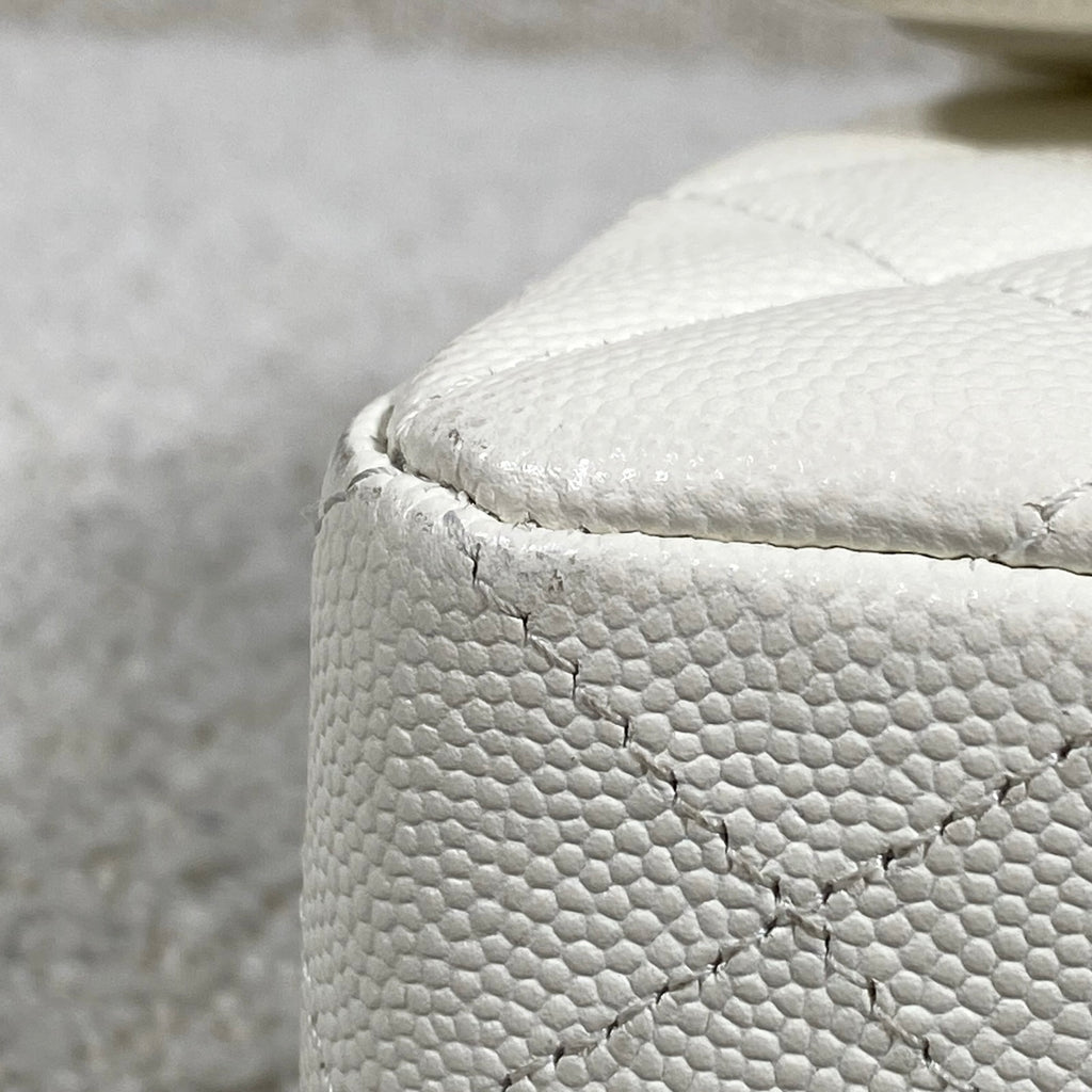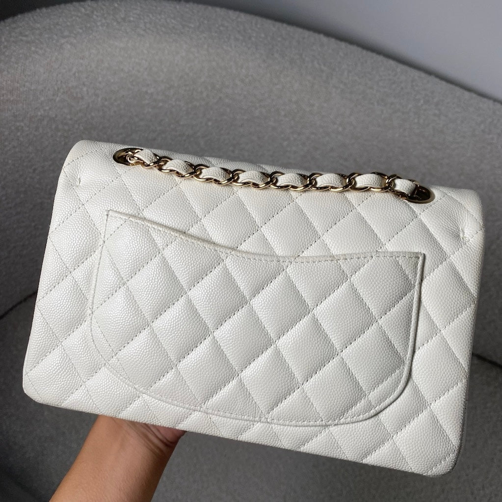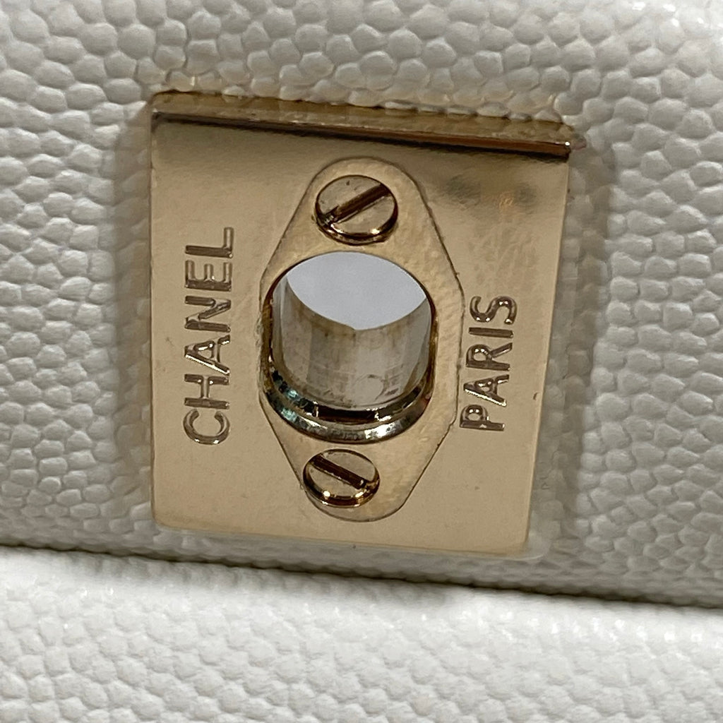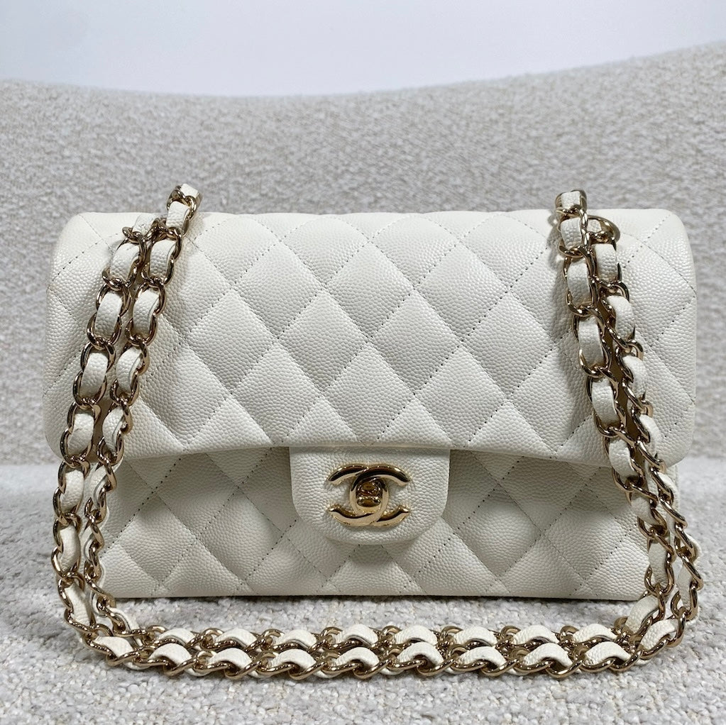 Pre-owned Chanel Classic Flap Bag Small White Caviar Gold tone hardware