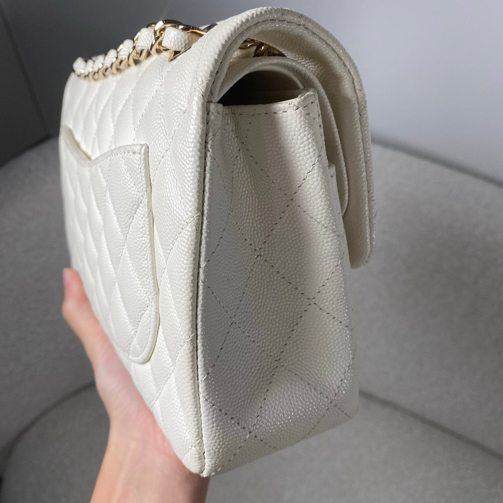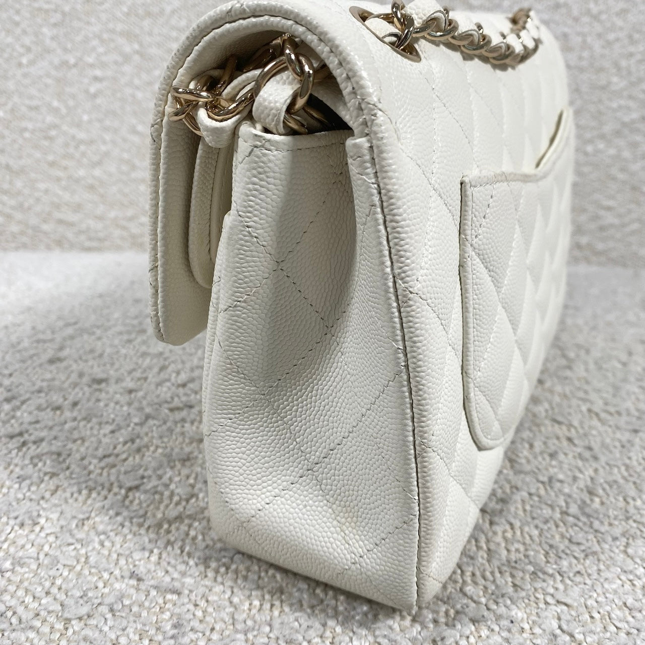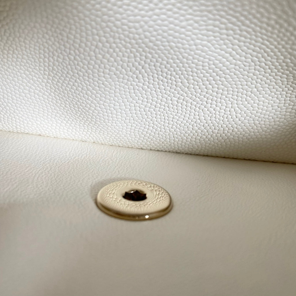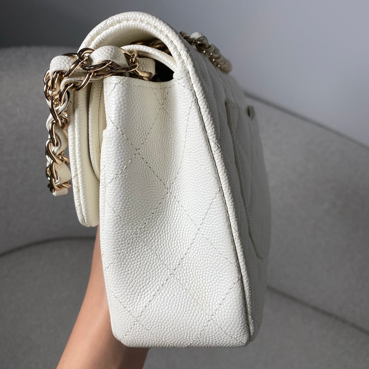 Pre-owned Chanel Classic Flap Bag Small White Caviar Gold tone hardware