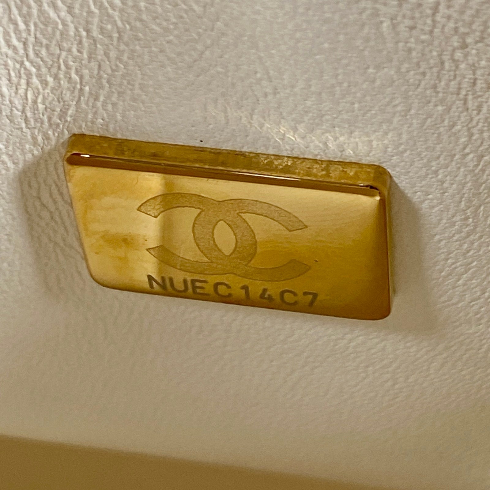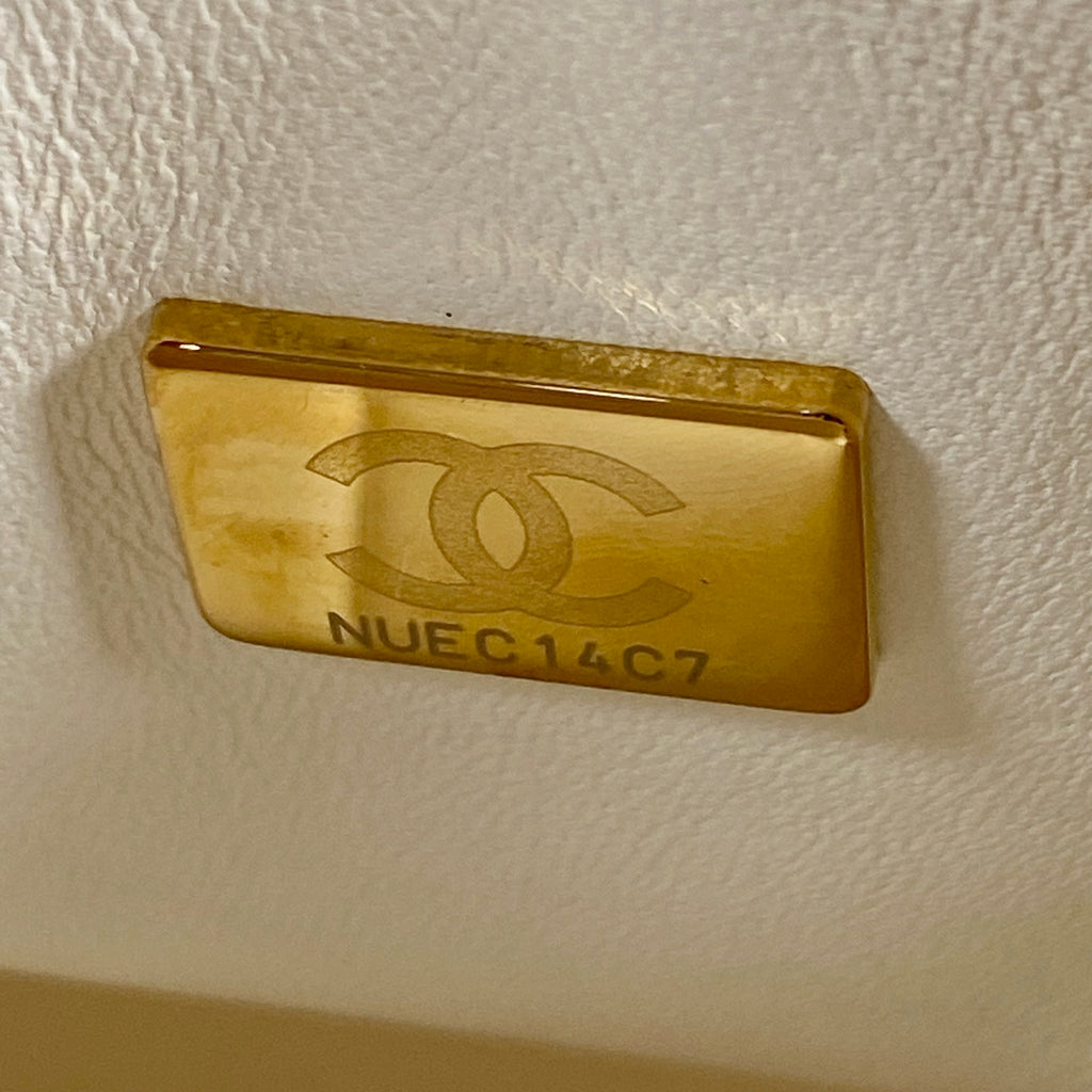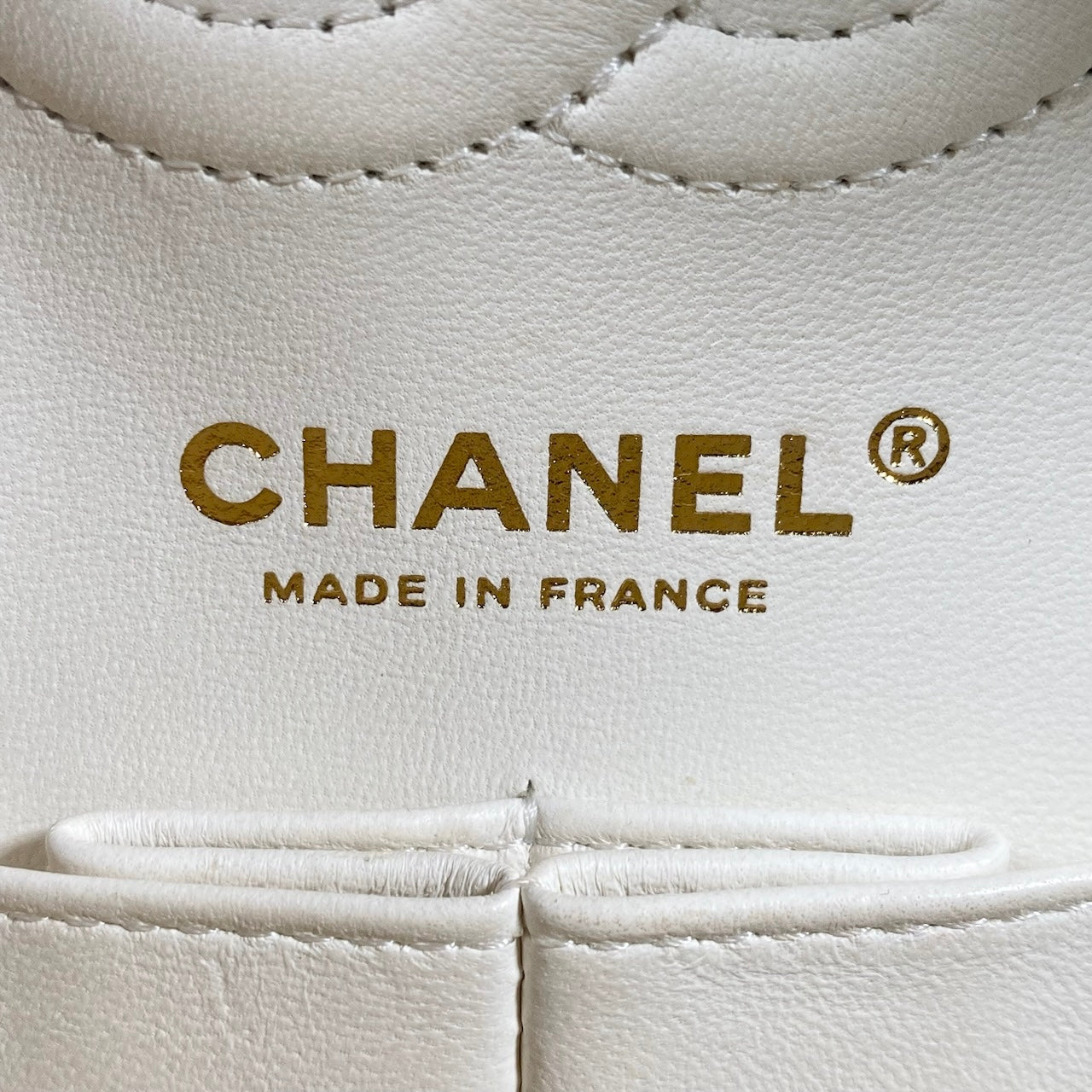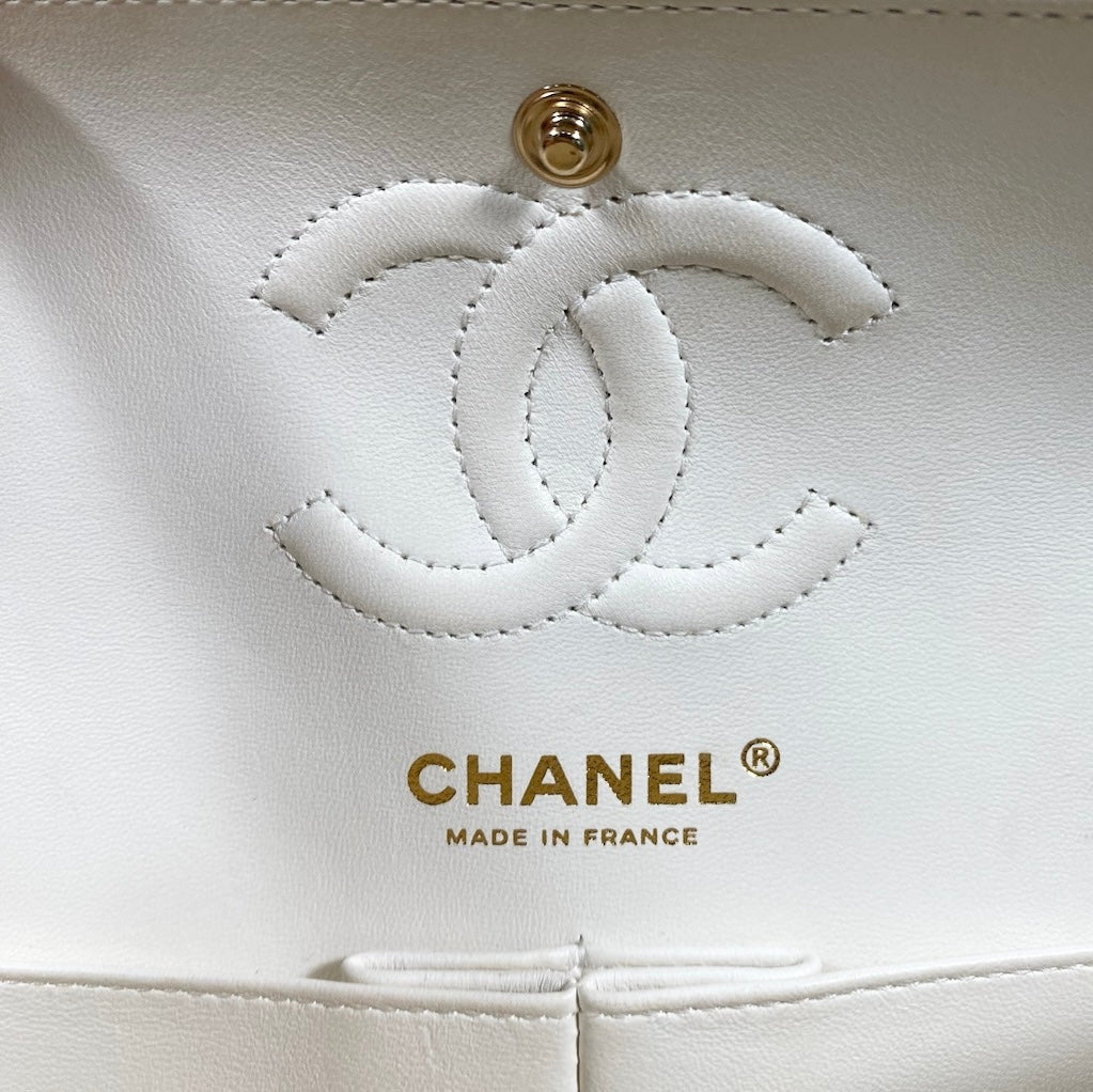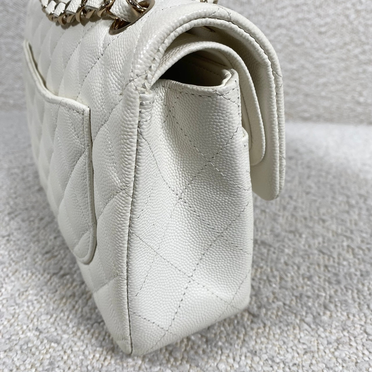 Pre-owned Chanel Classic Flap Bag Small White Caviar Gold tone hardware