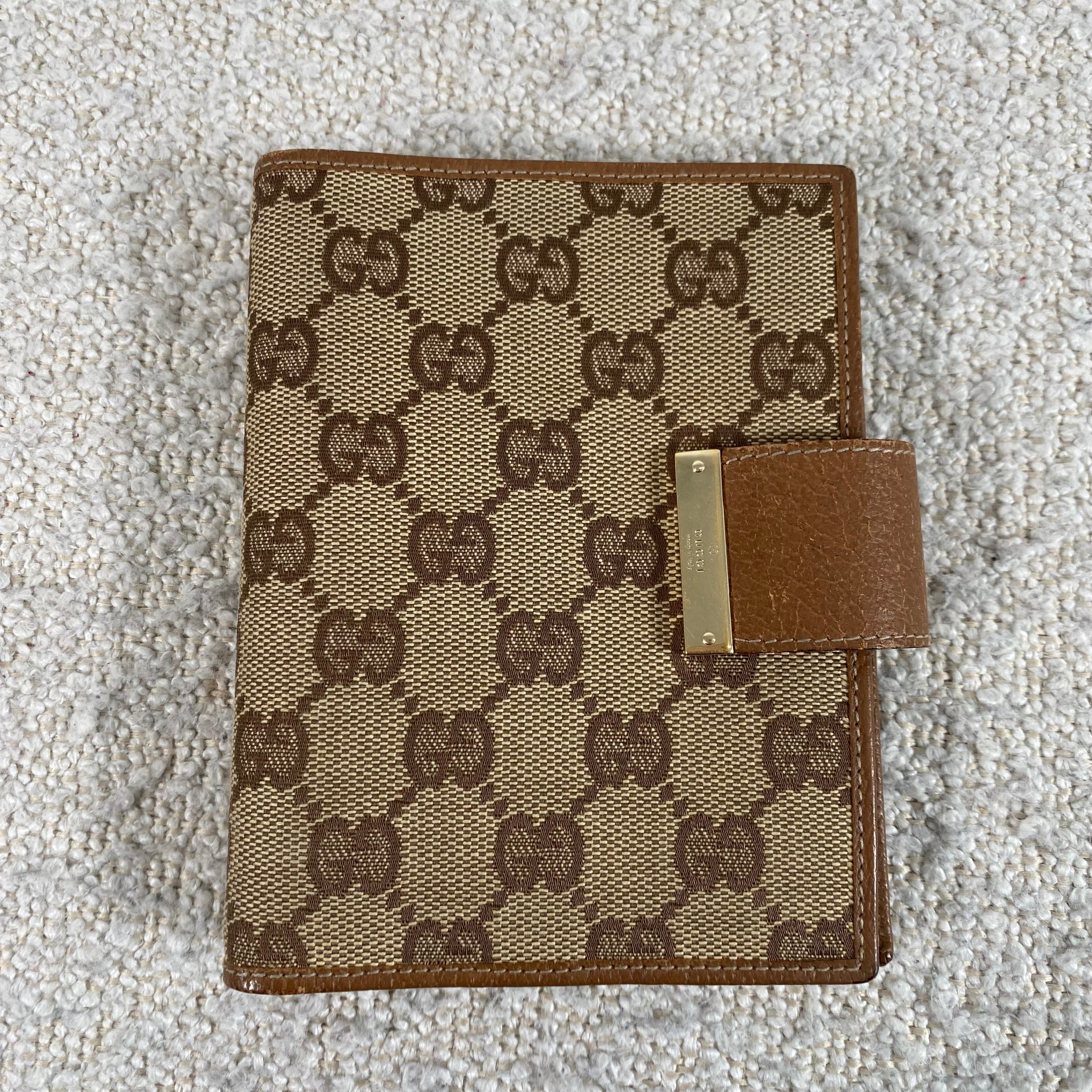 Pre-owned Gucci Agenda Cover in monogram brown canvas & gold tone hardware