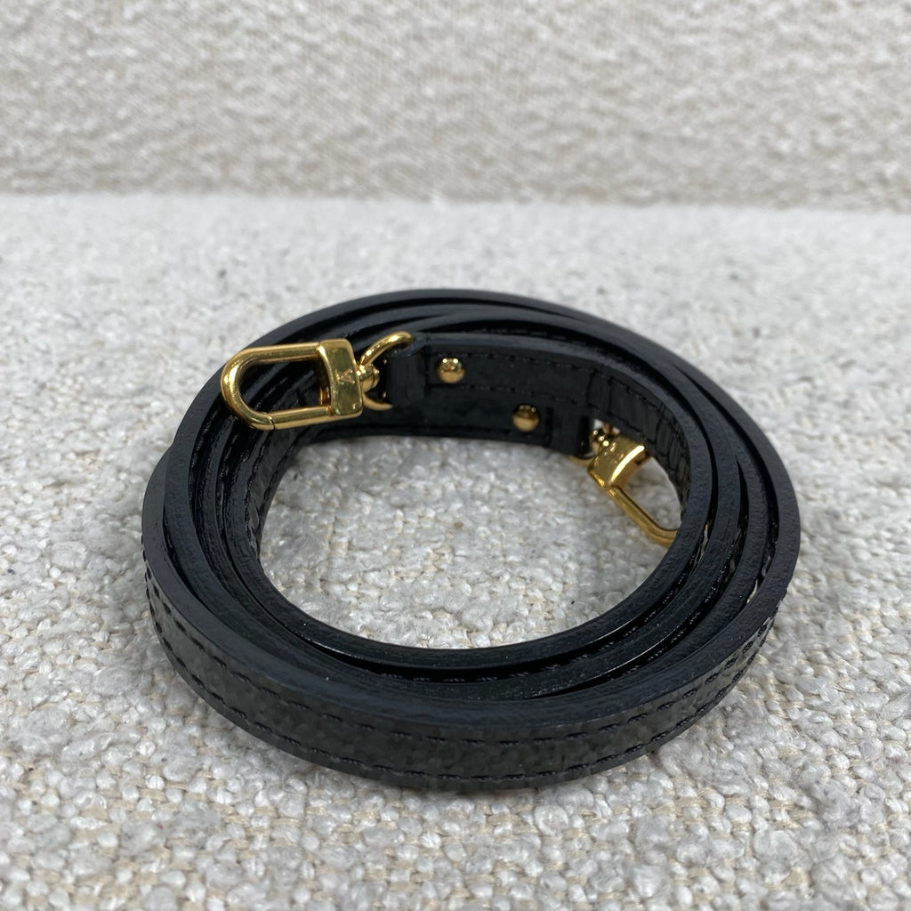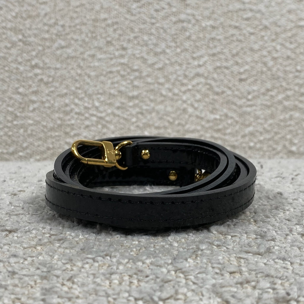 Cream and black vernis monogram leather. BB size. 9.3 x 6.9 x 4.5” strap drop 22”.