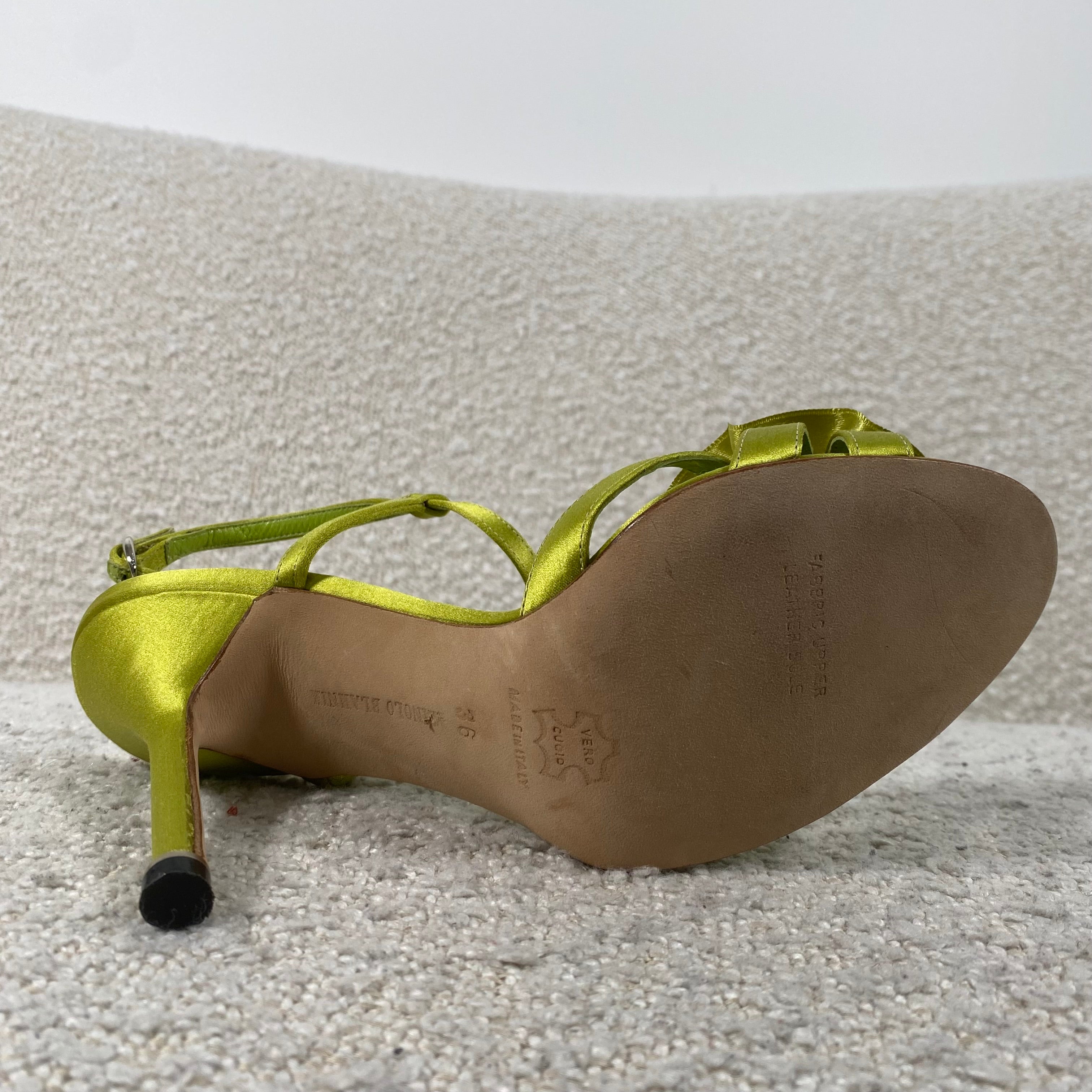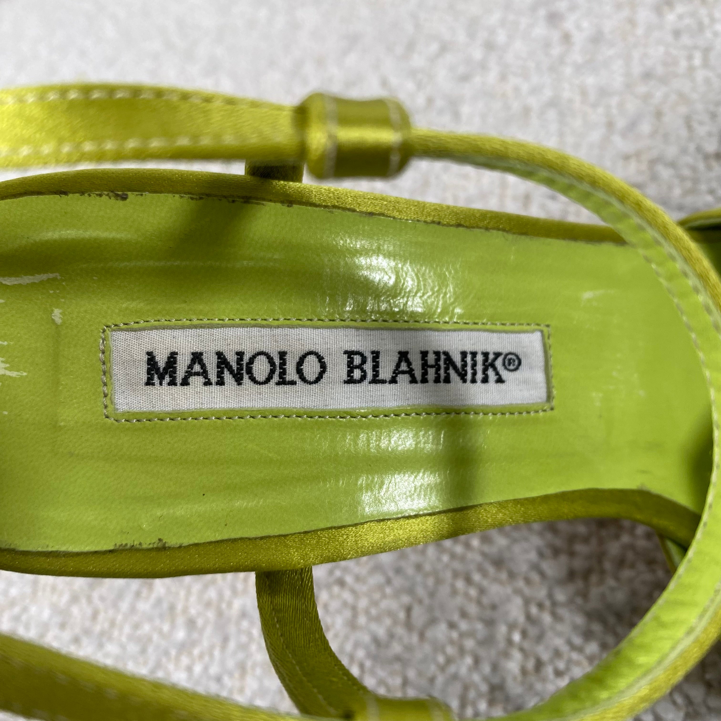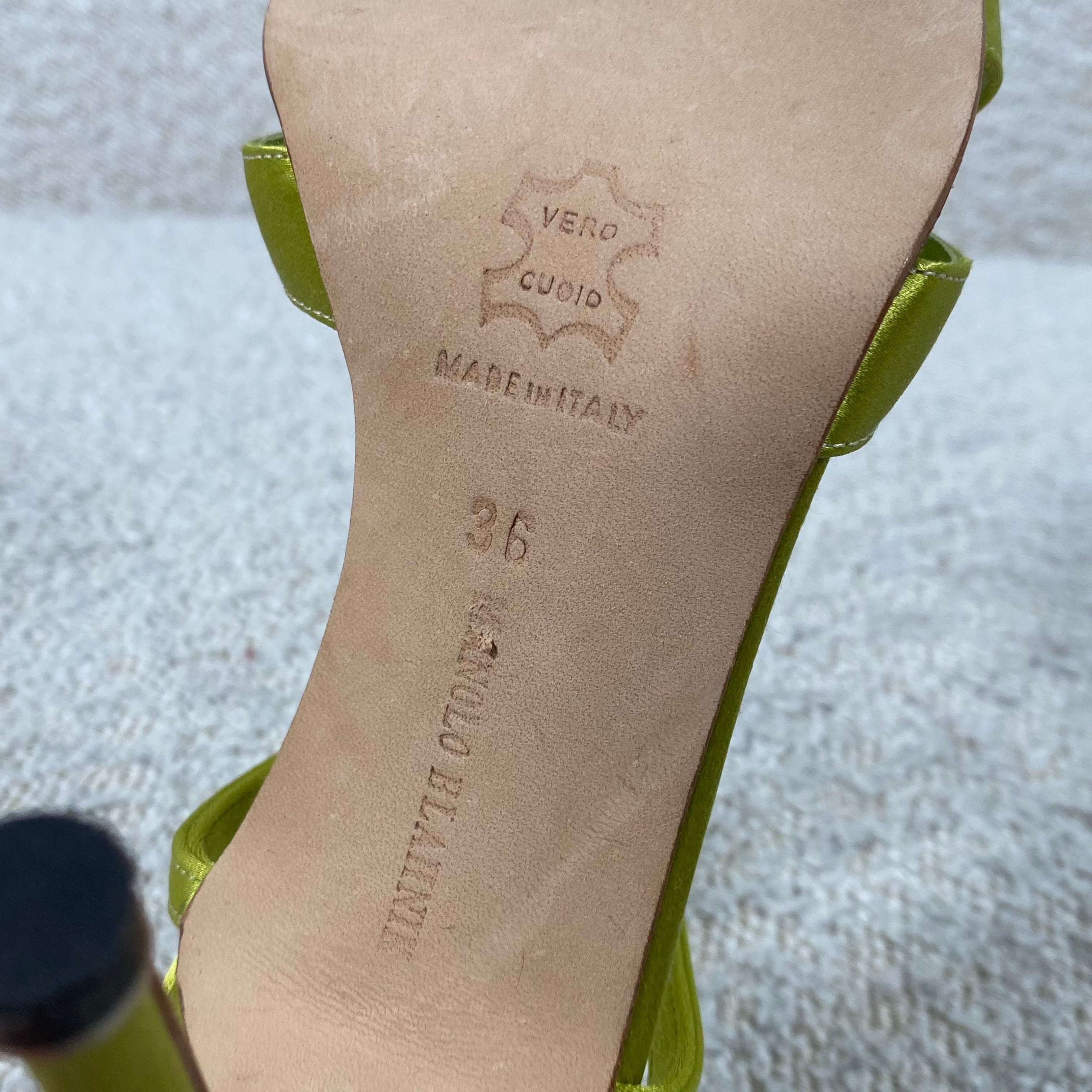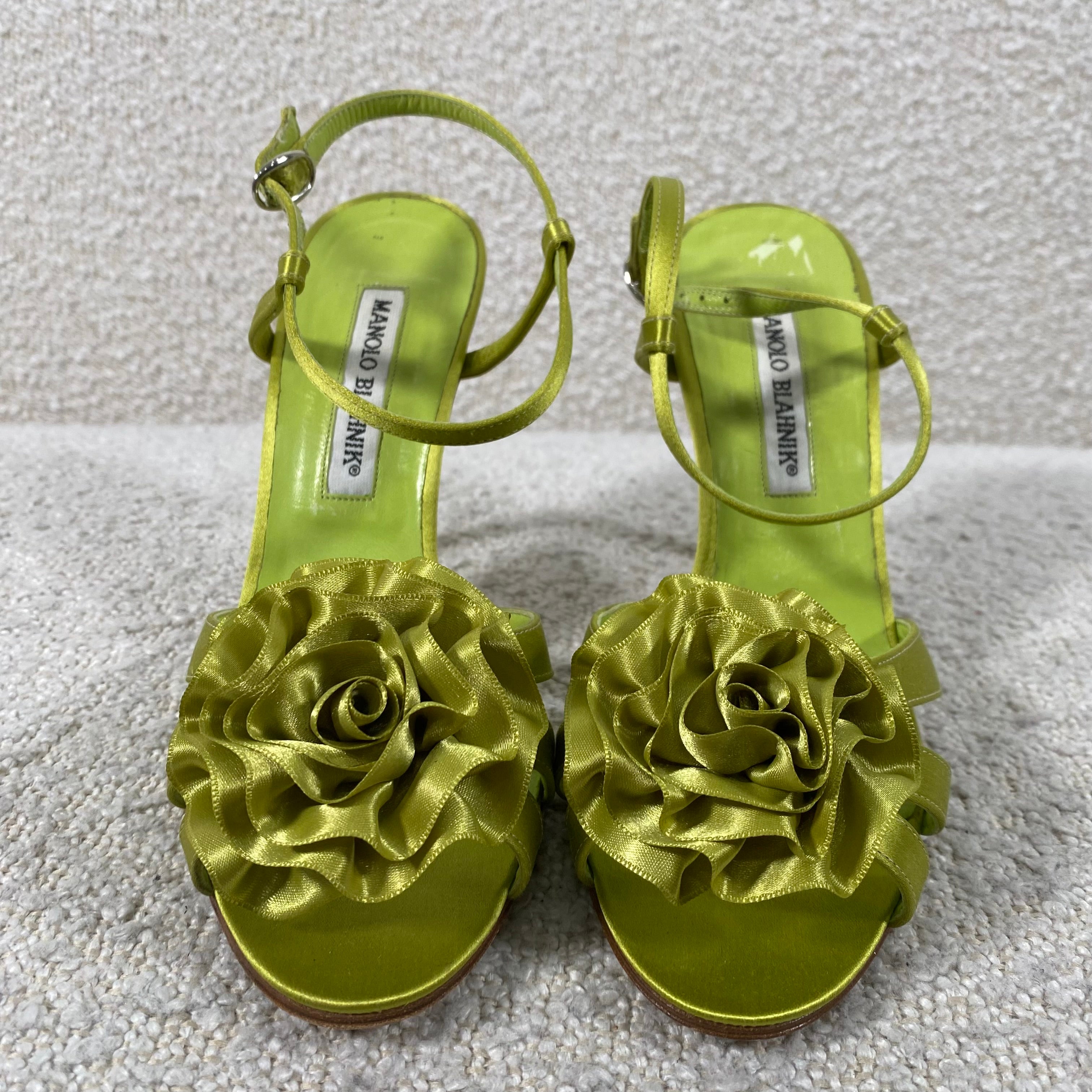 Pre-owned Manolo Blahnik Flower Heels Green Satin 36