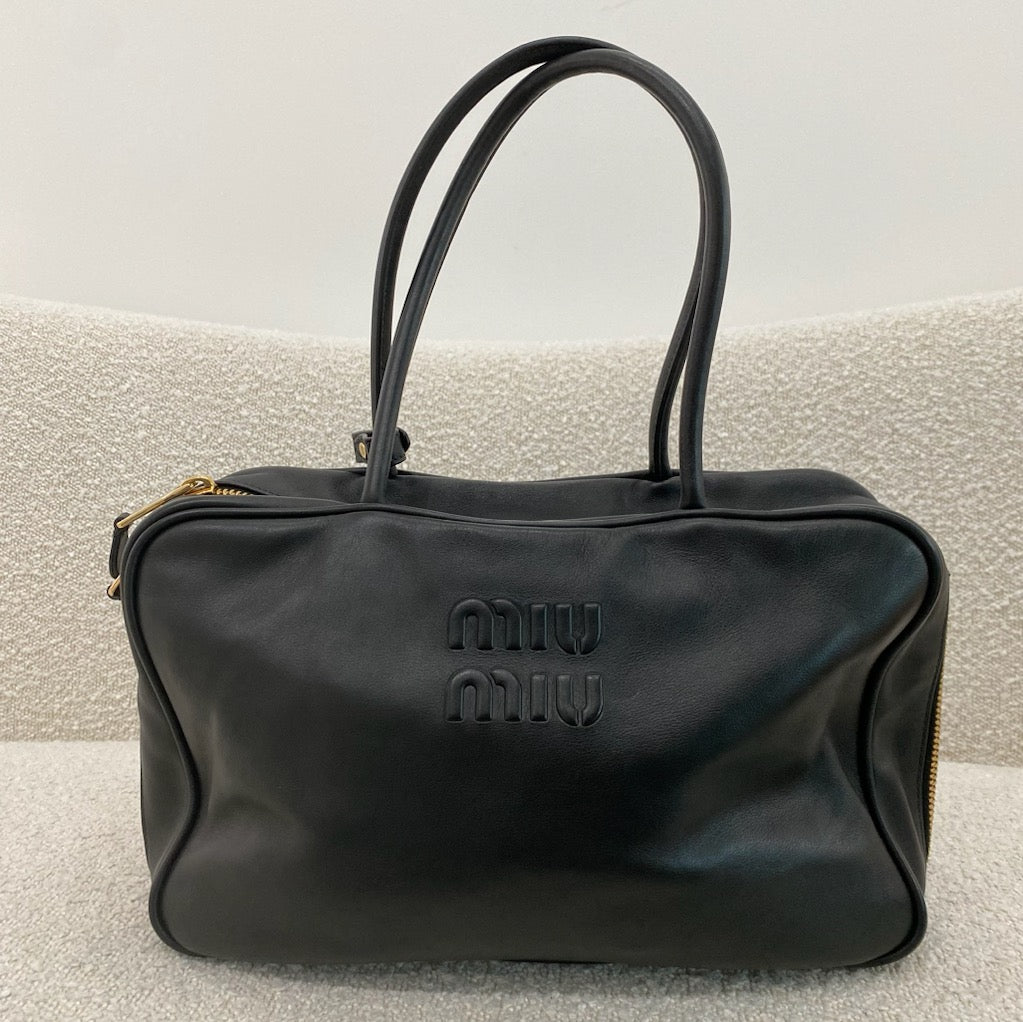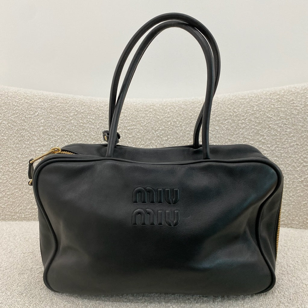 Pre-owned MIU MIU Black Large Leather Beau Bag