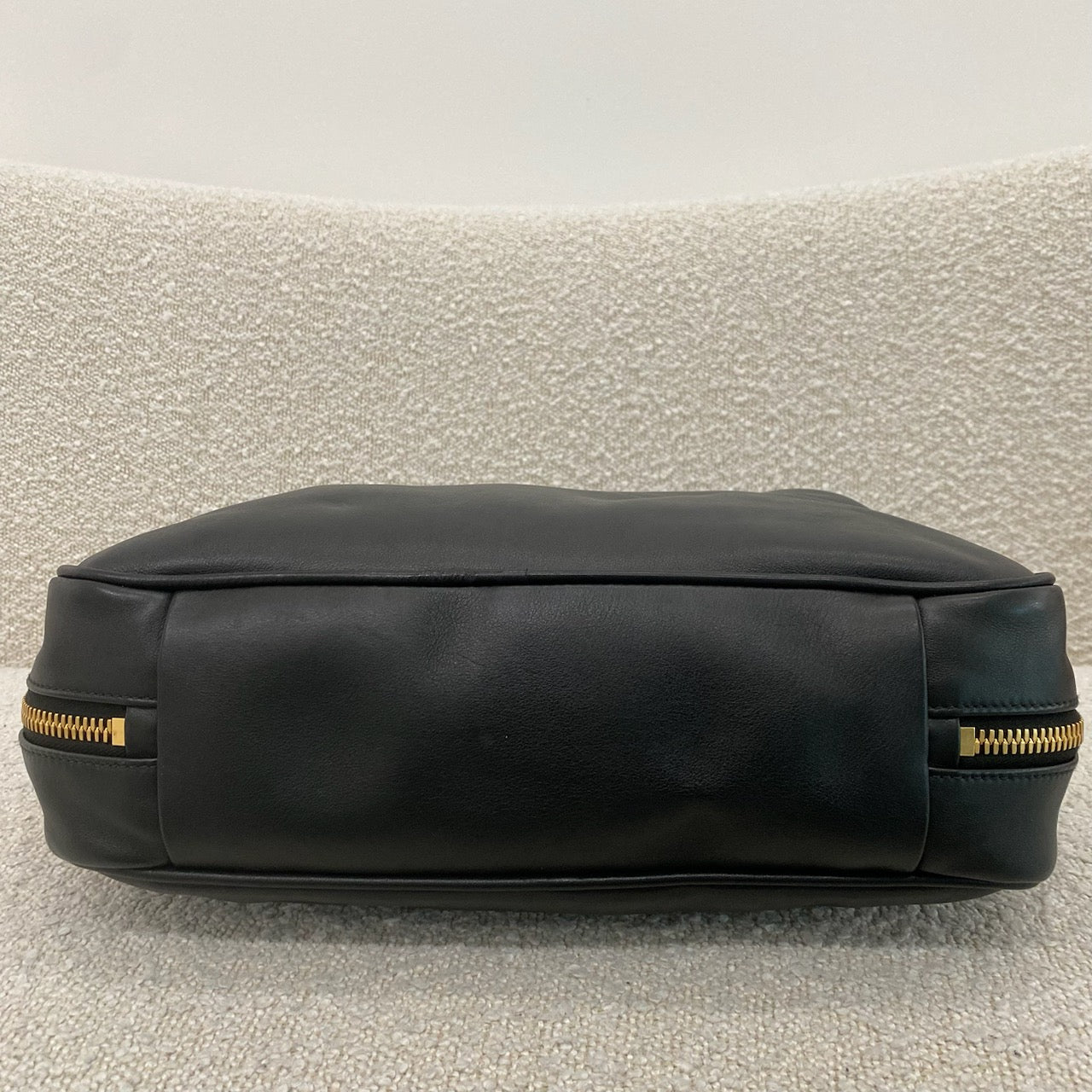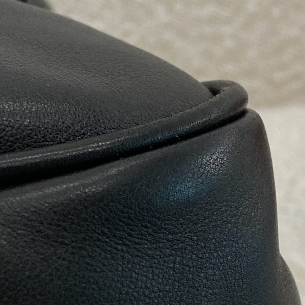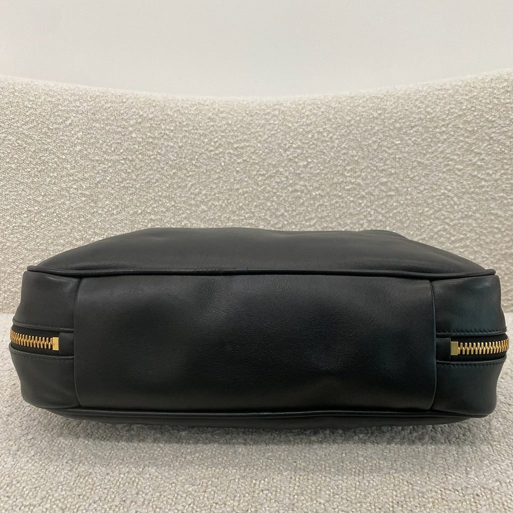 Gold tone hardware. Buffed calfskin shoulder bag in black. H9" x W13.5" x D4.5"