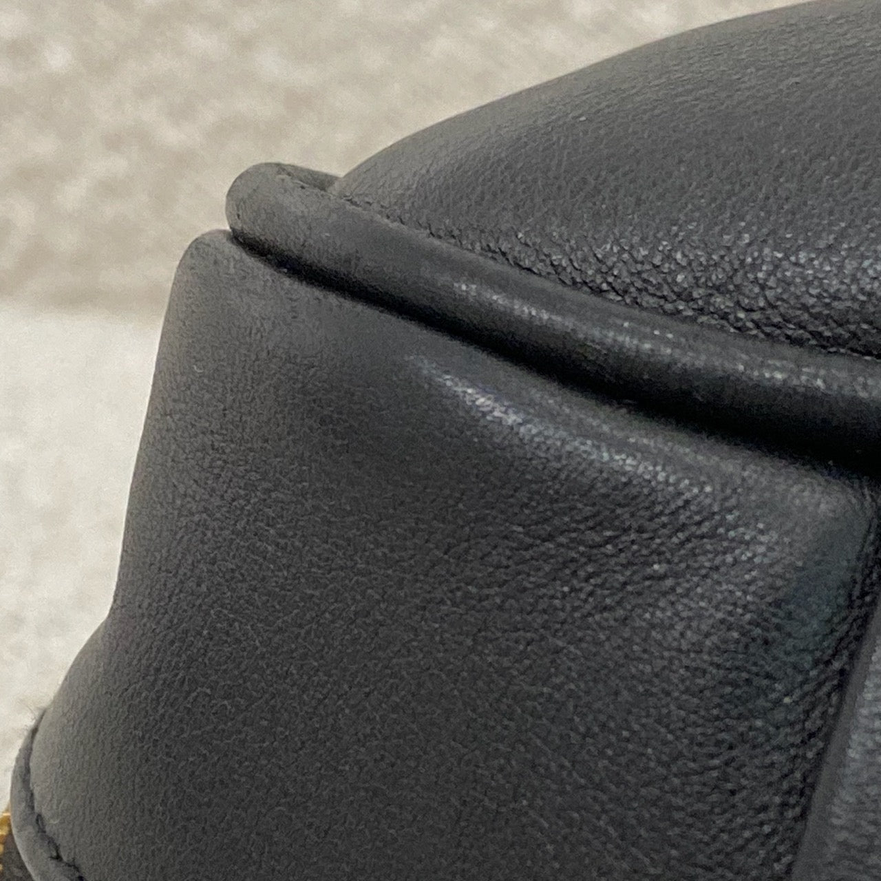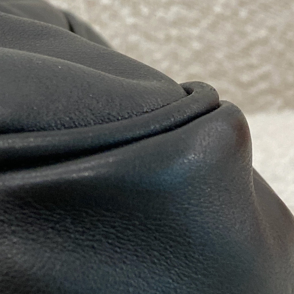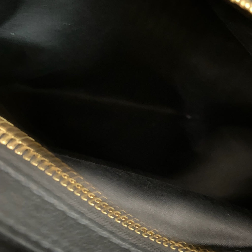 Gold tone hardware. Buffed calfskin shoulder bag in black. H9" x W13.5" x D4.5"