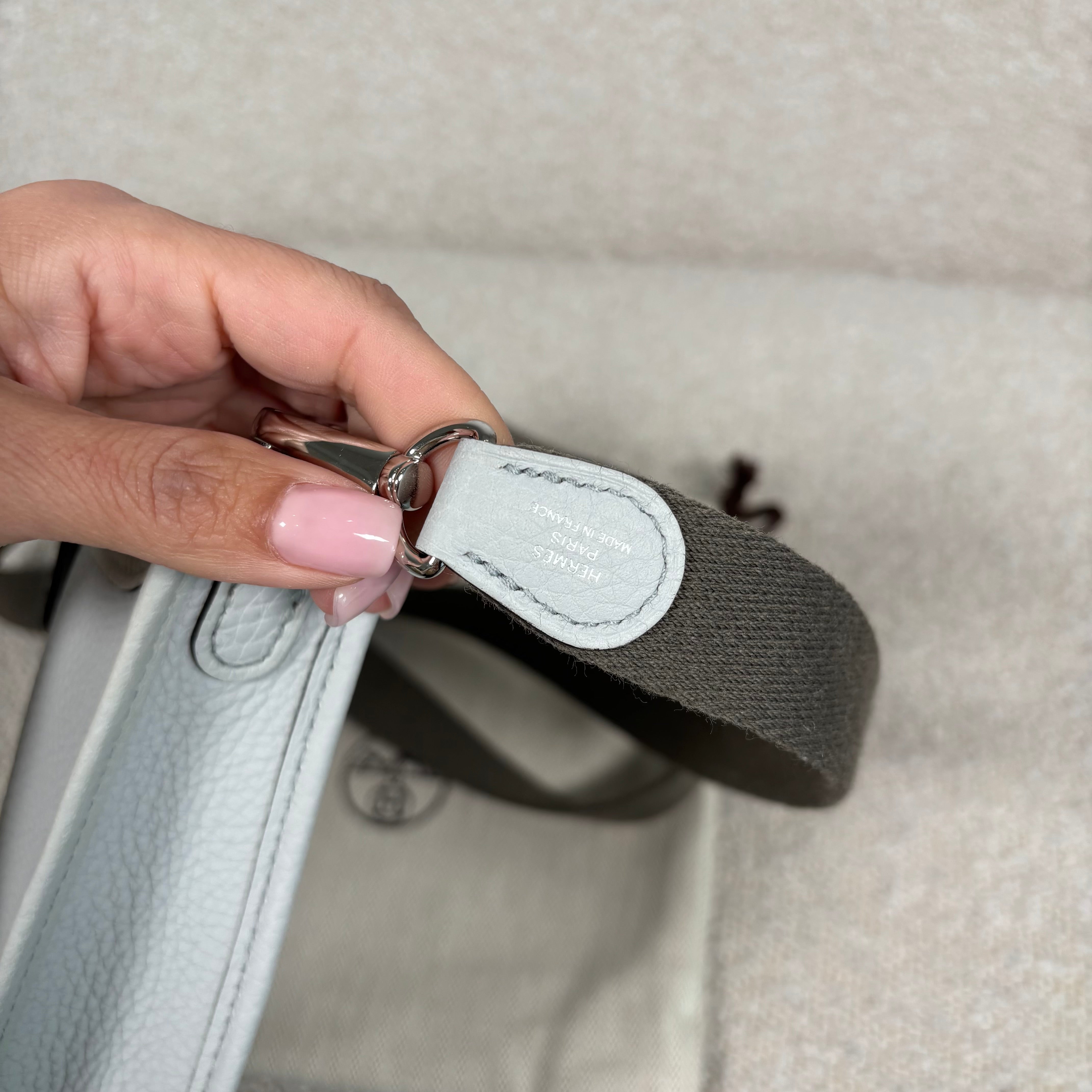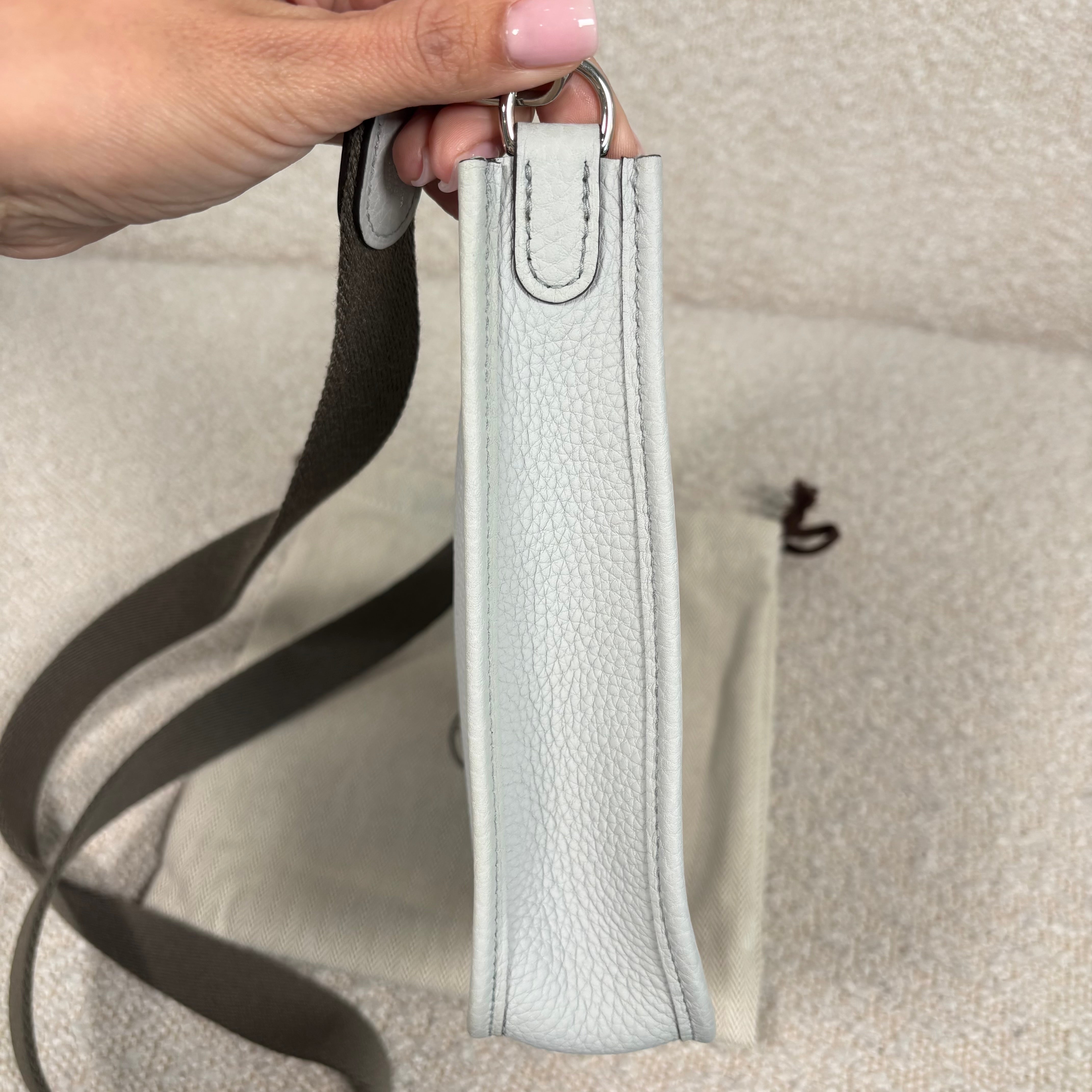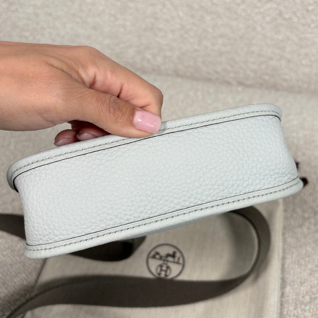 Pre-owned Hermès Mini Evelyne TPM 16 m Bleu Pale / Gris Etain Gold Hardware