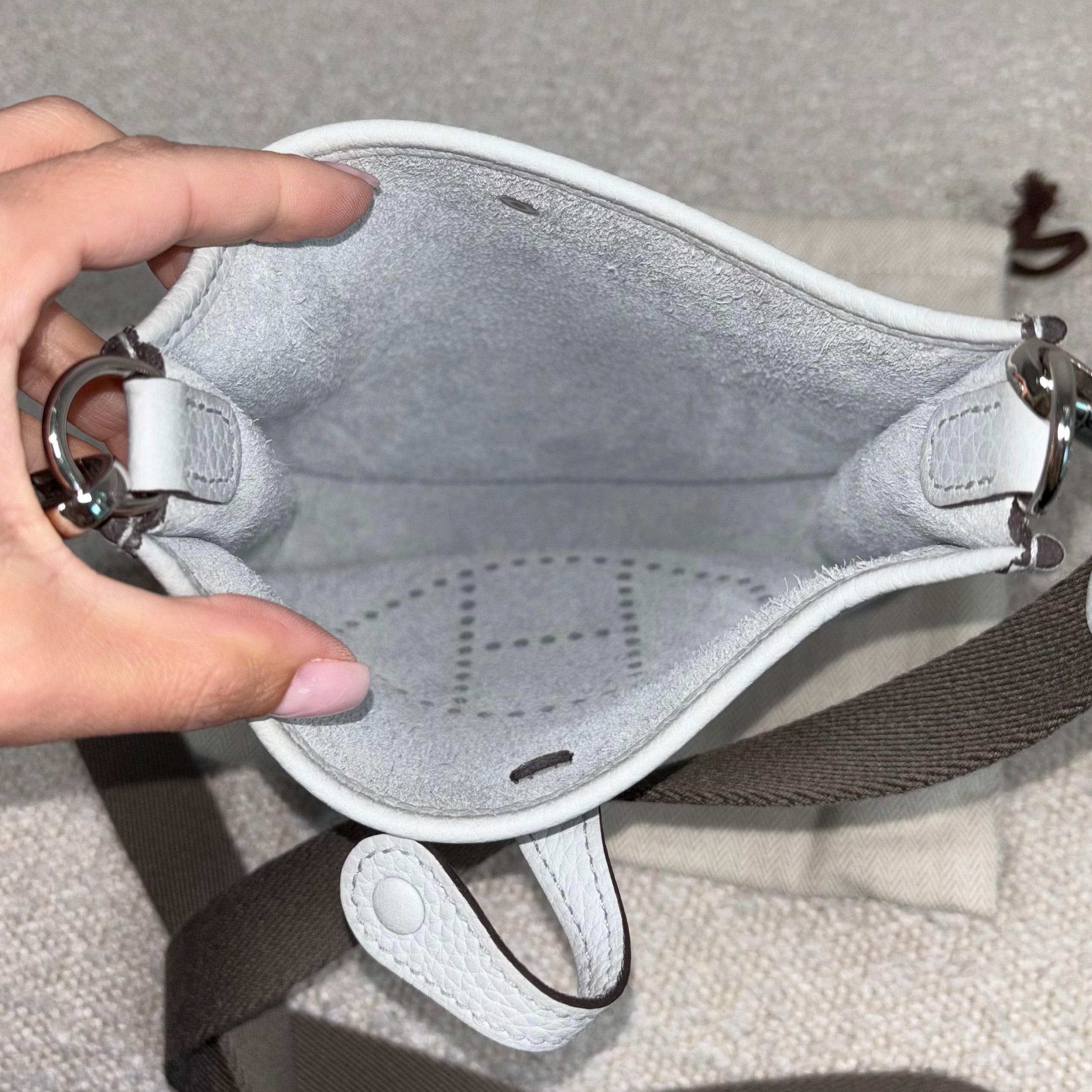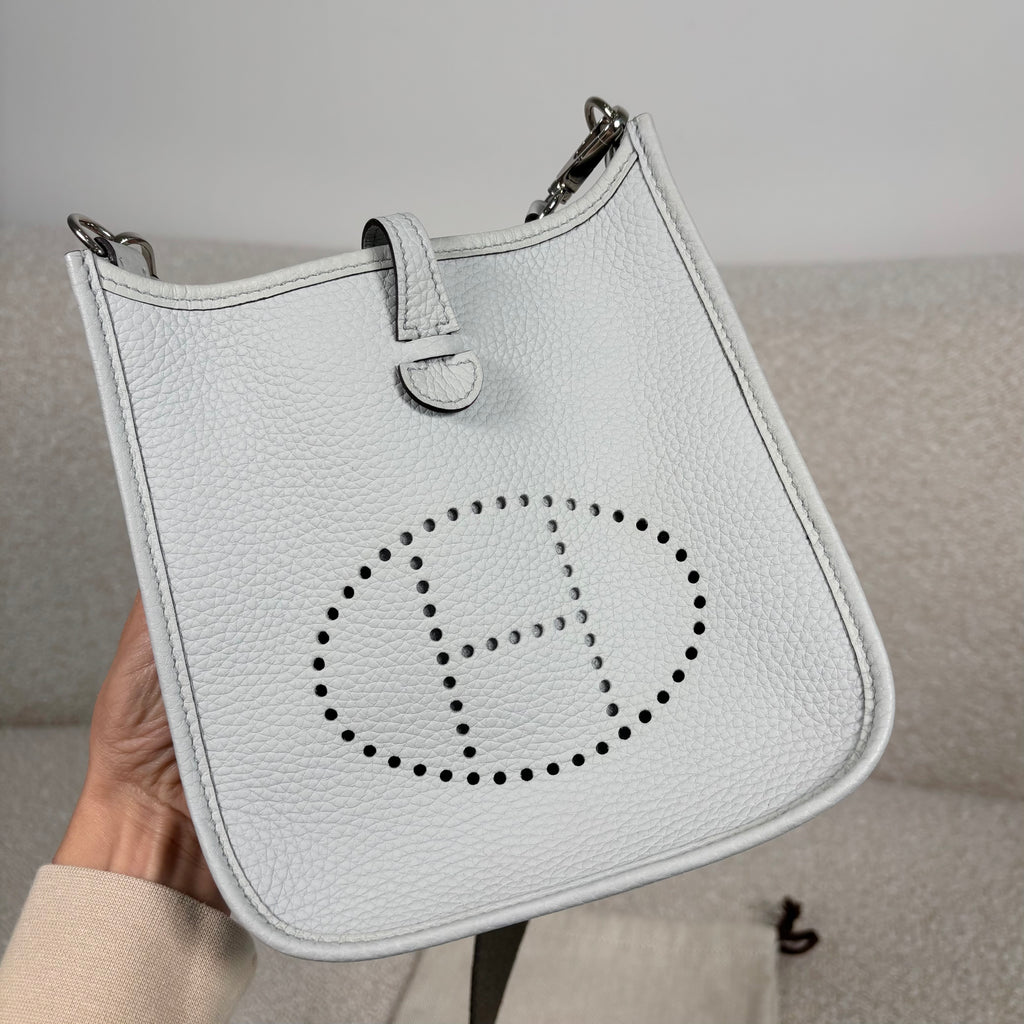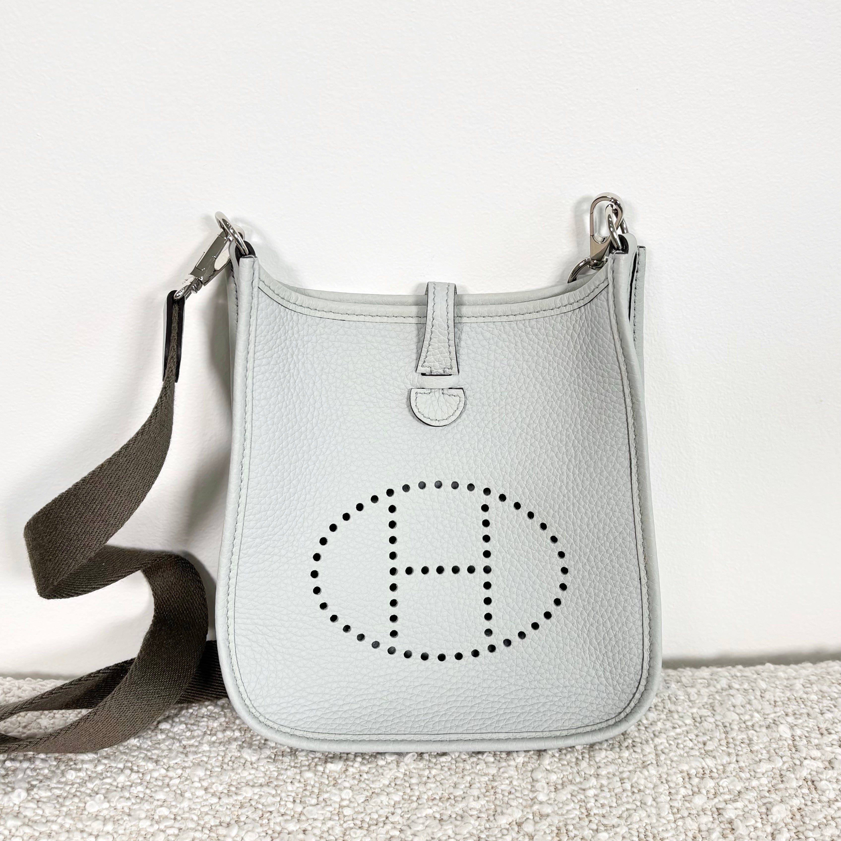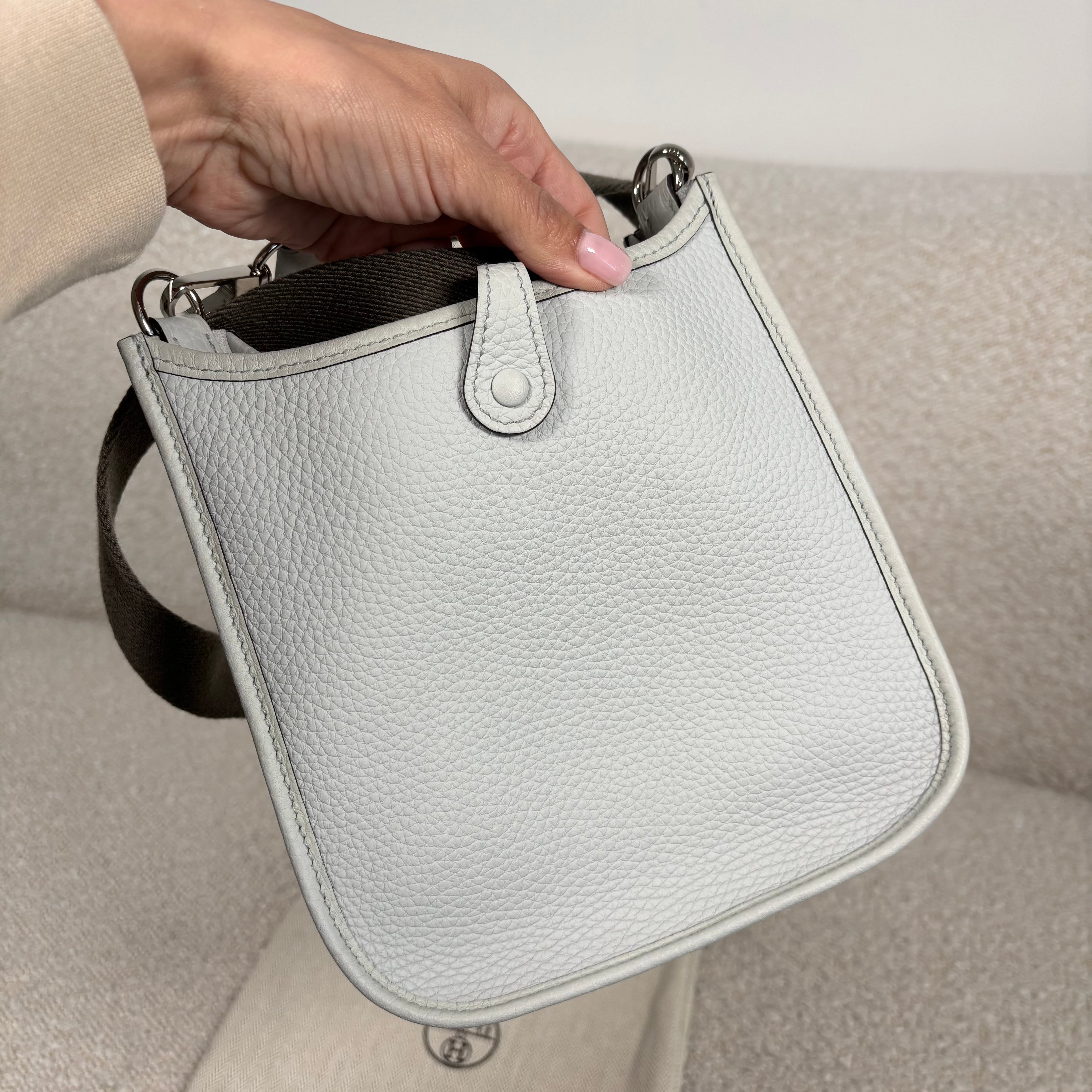Pre-owned Hermès Mini Evelyne TPM 16 m Bleu Pale / Gris Etain Gold Hardware