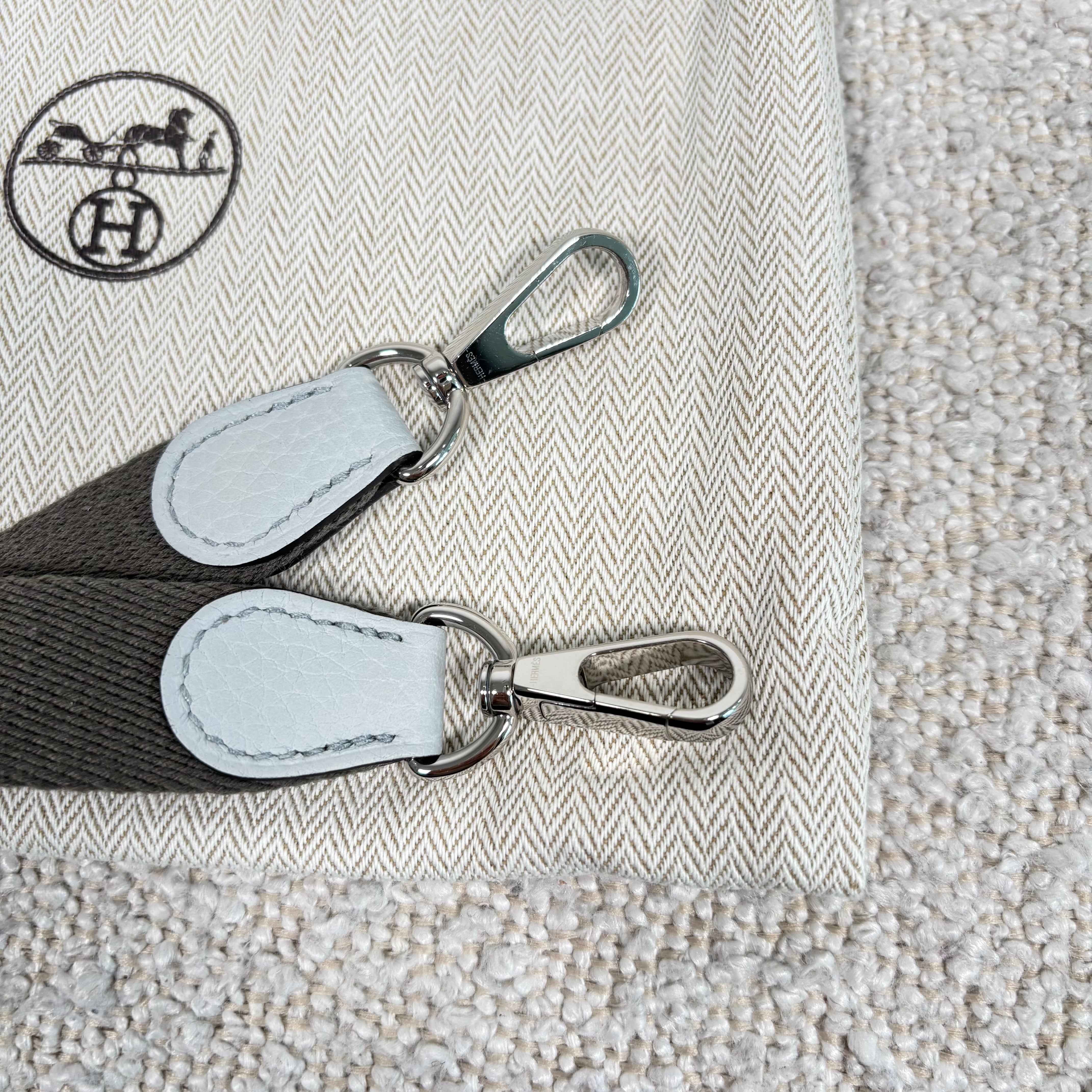 Bleu Pale / Gris Etain clenience. Gold hardware. Stamp B.