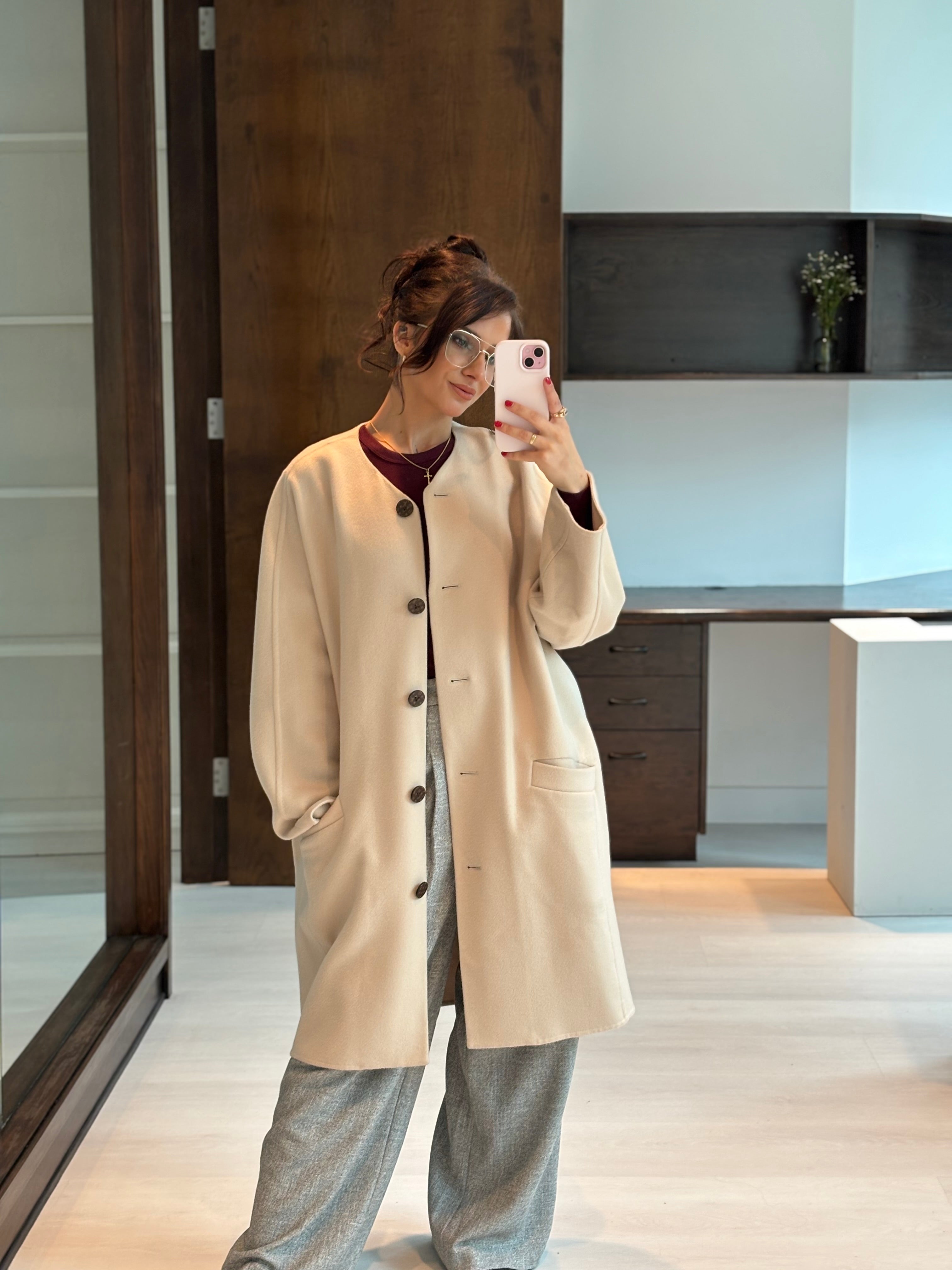 Pre-owned Louis Vuitton Beige Cashmere Coat 42