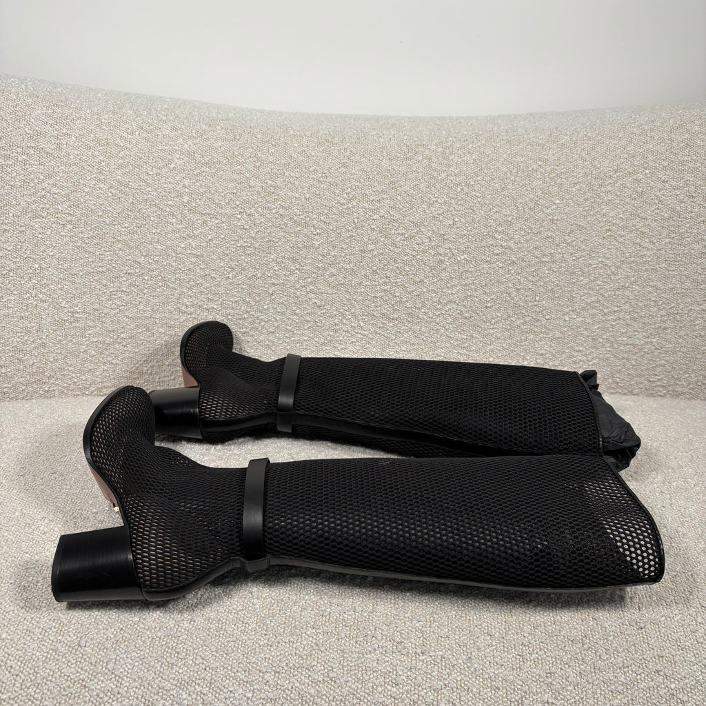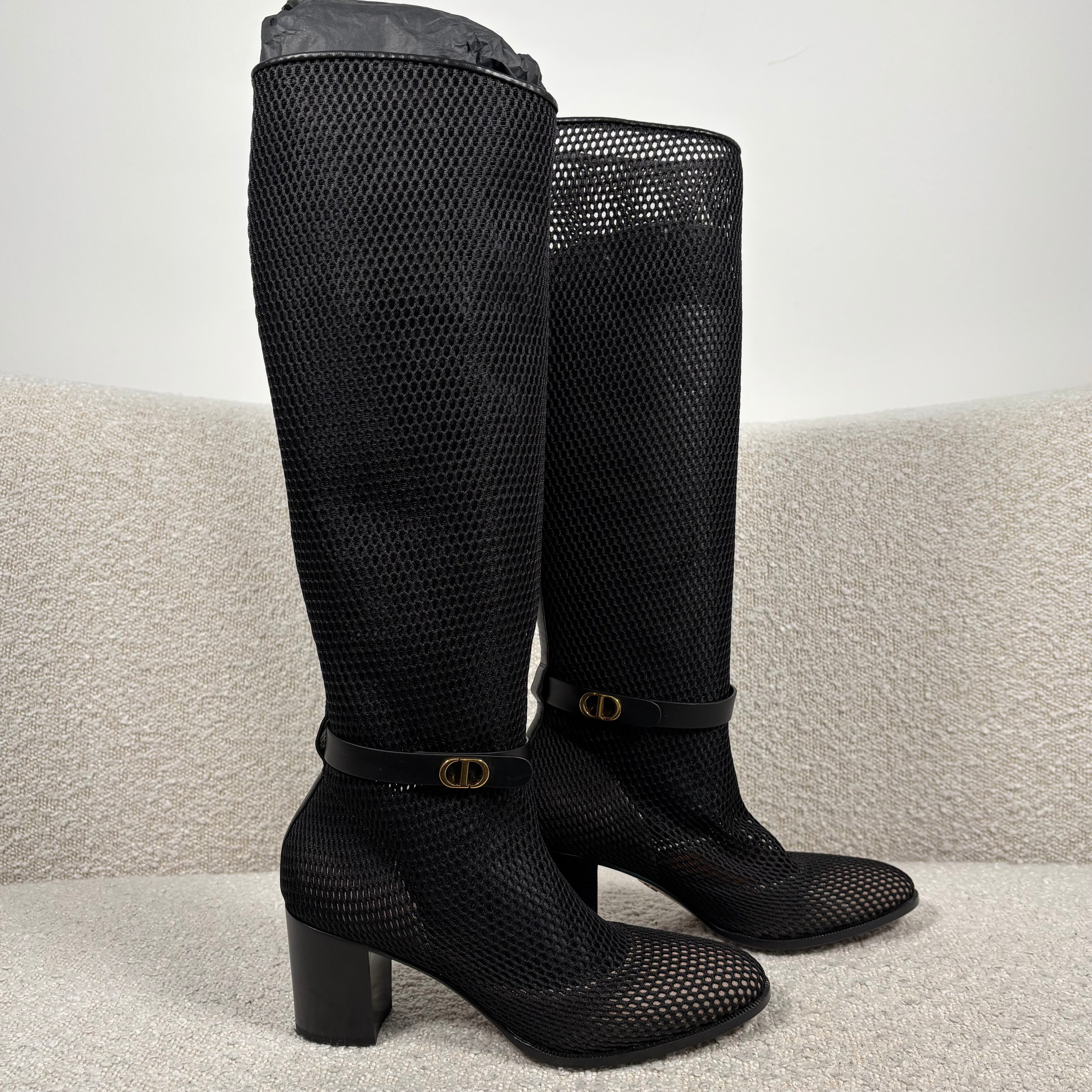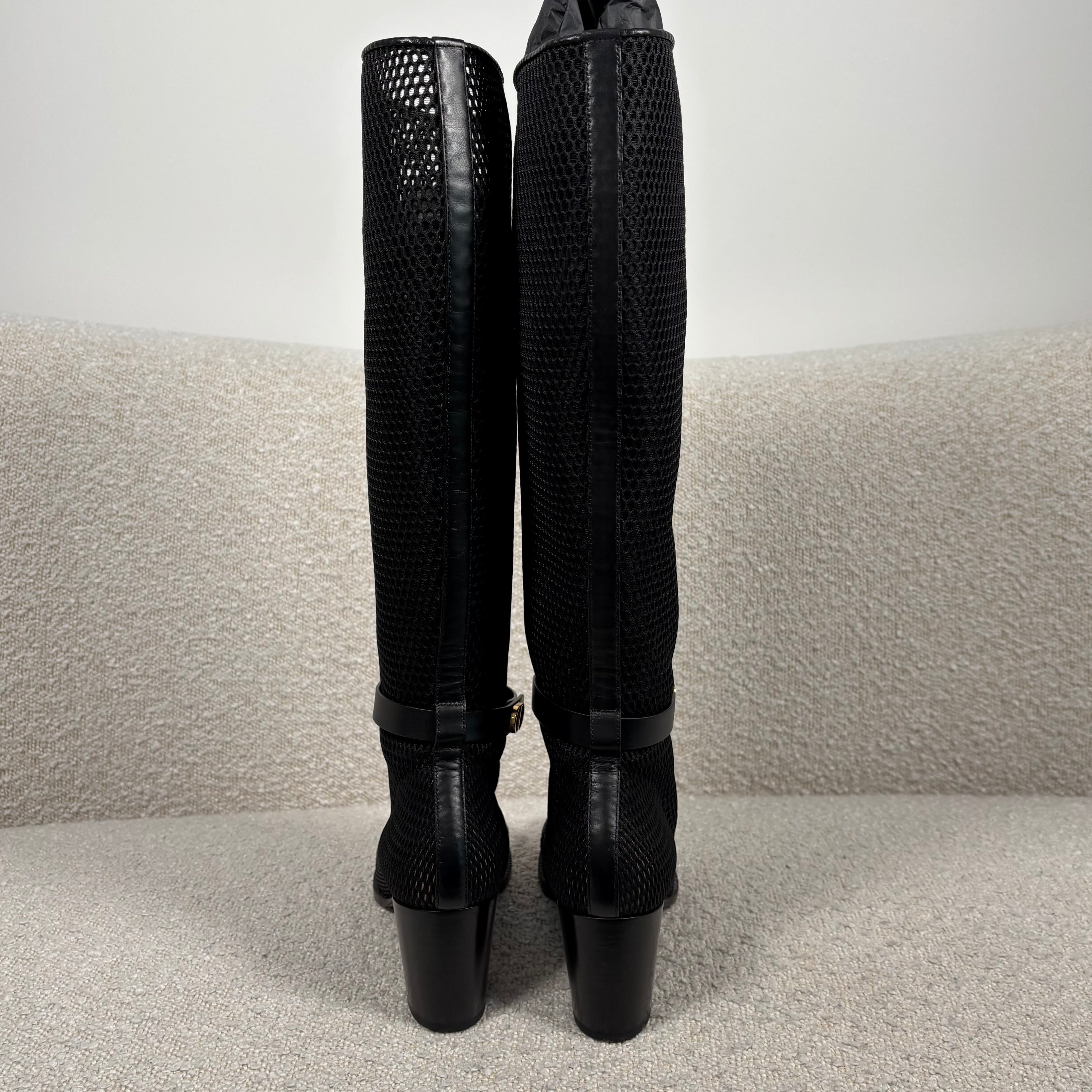 Pre-owned Dior Black & Gold Empreinte Mesh Knee Height Boot 38
