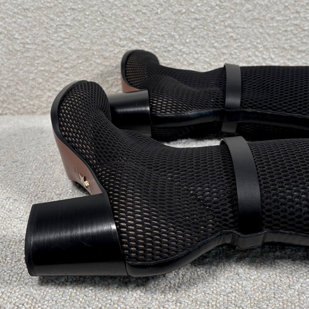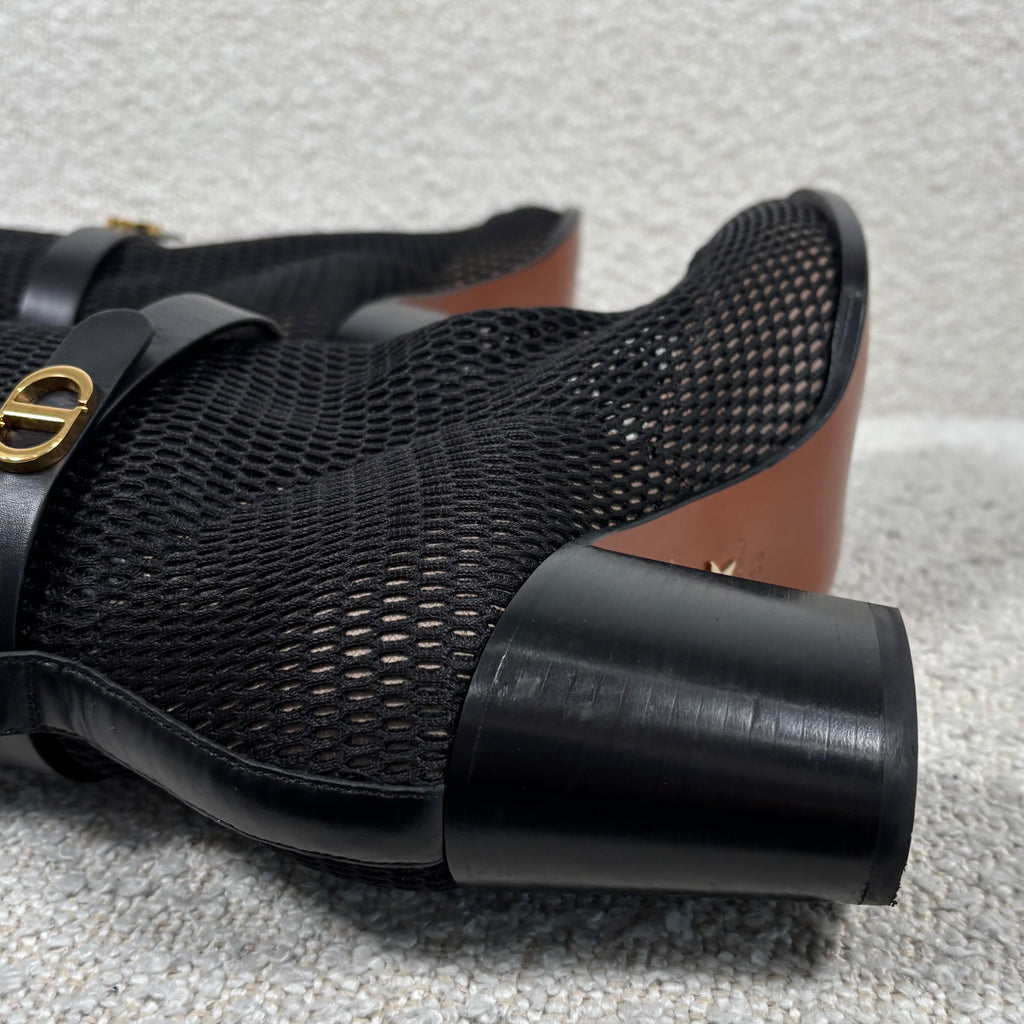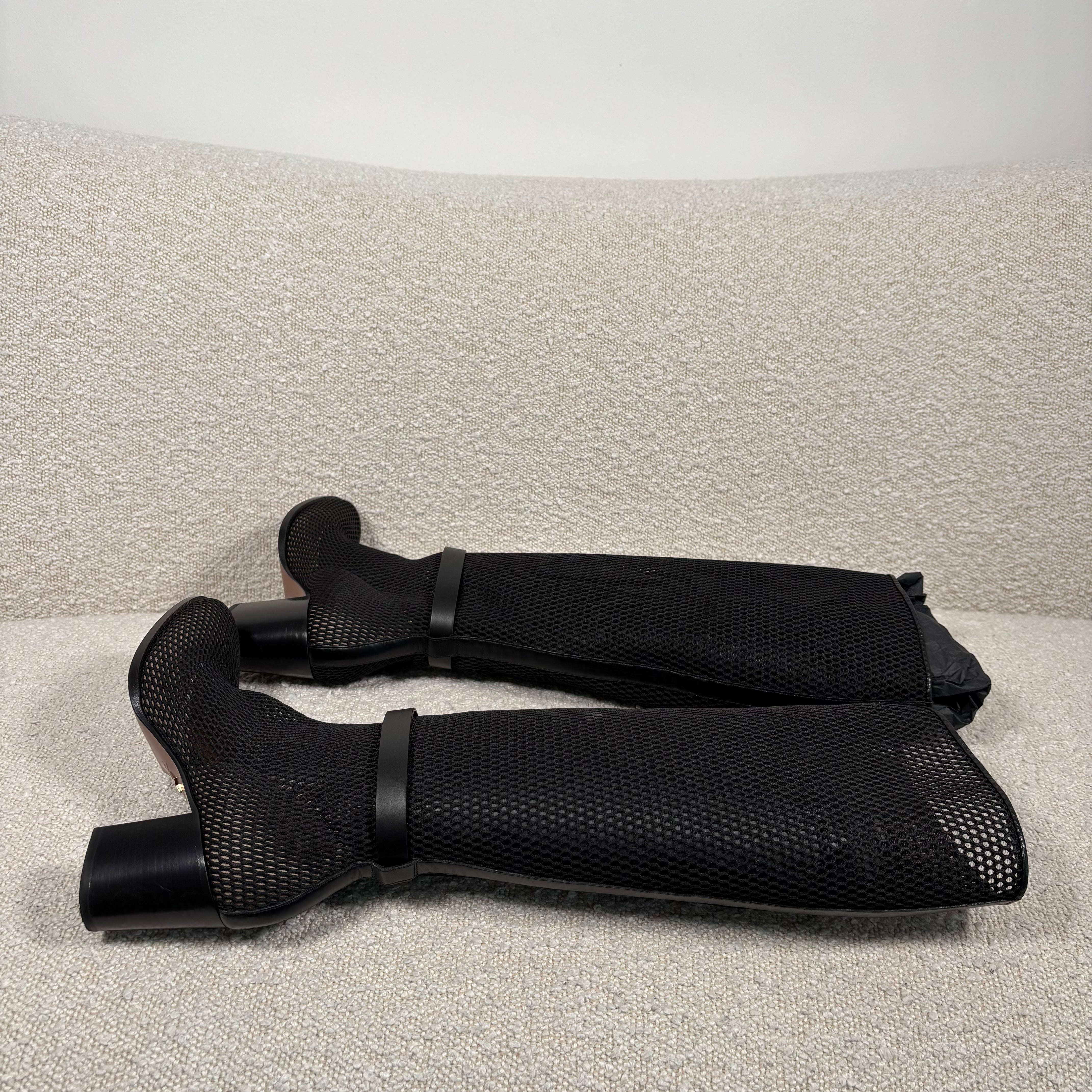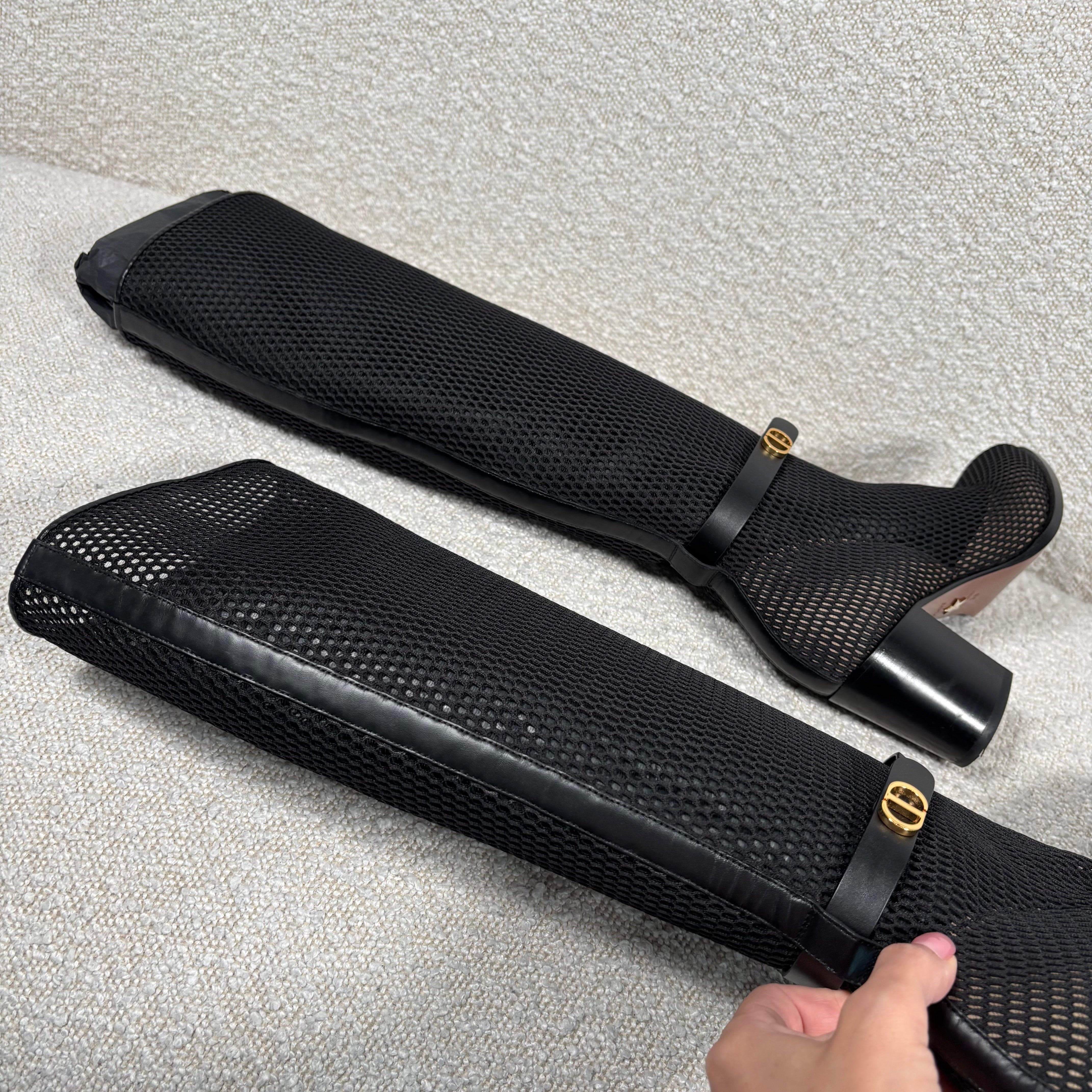 Pre-owned Dior Black & Gold Empreinte Mesh Knee Height Boot 38