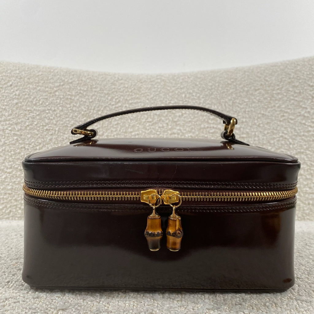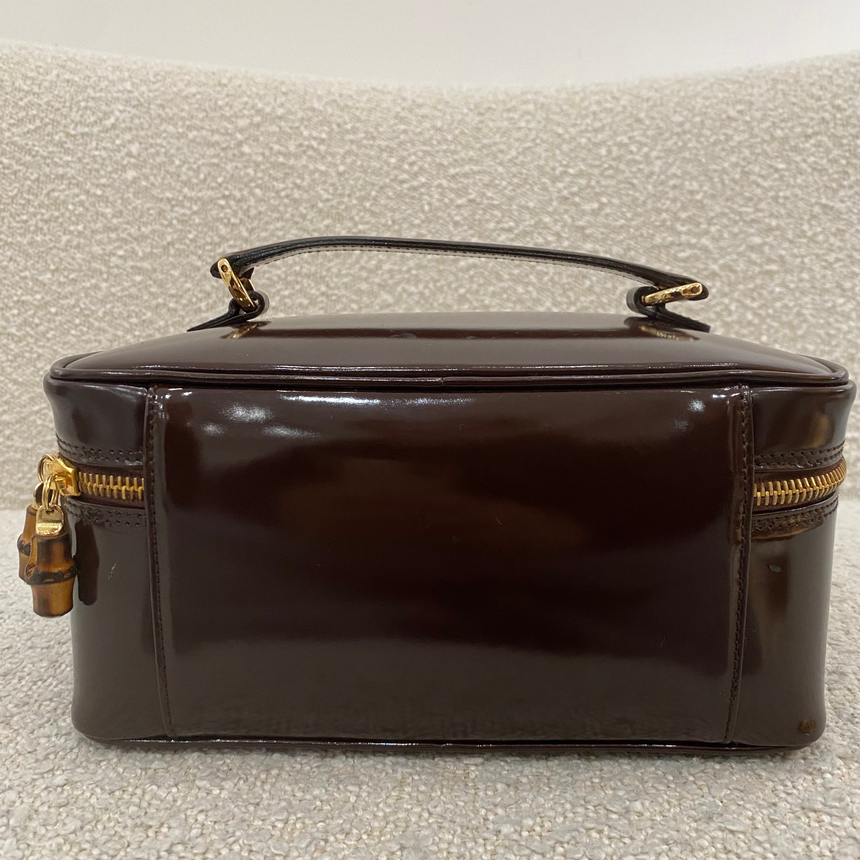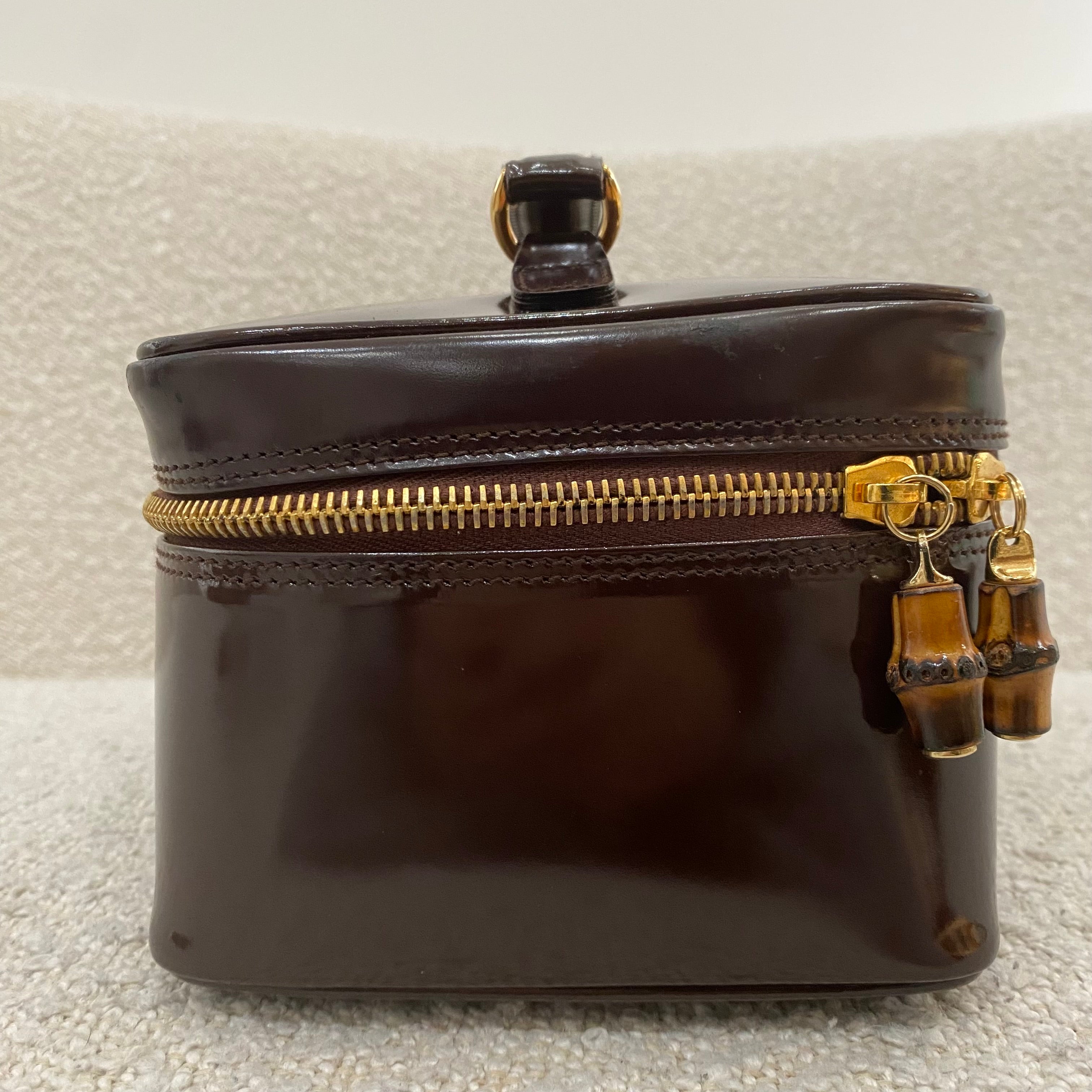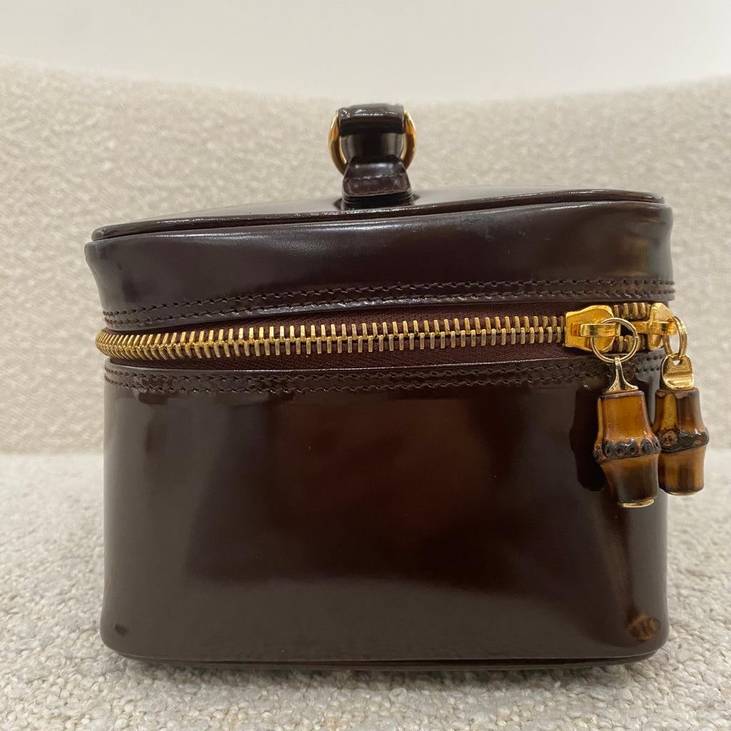 Pre-owned Gucci Vintage Bamboo Brown Patent Leather Vanity
