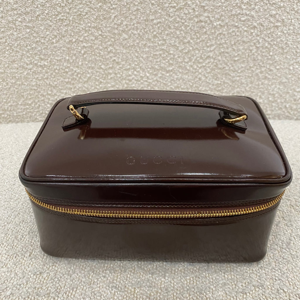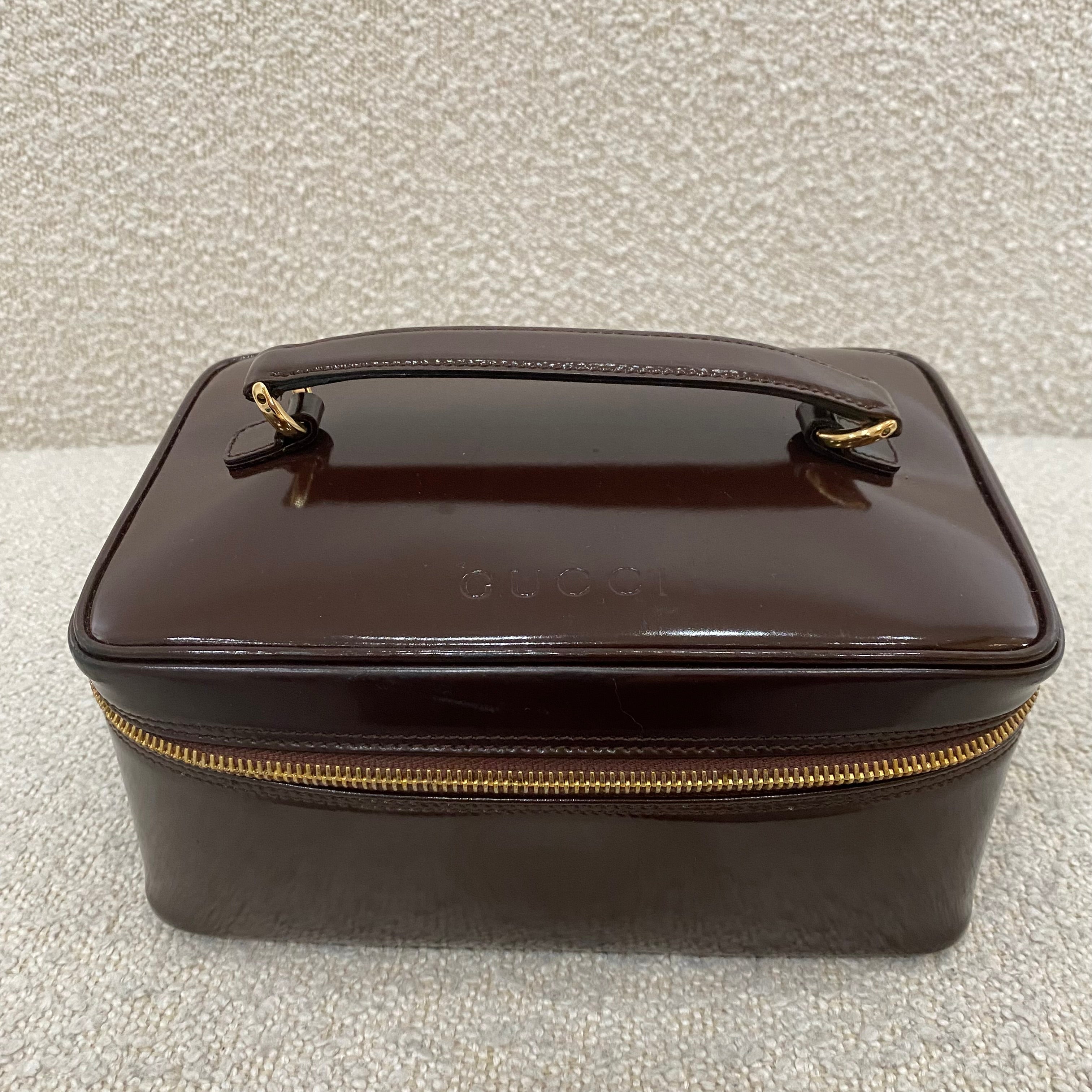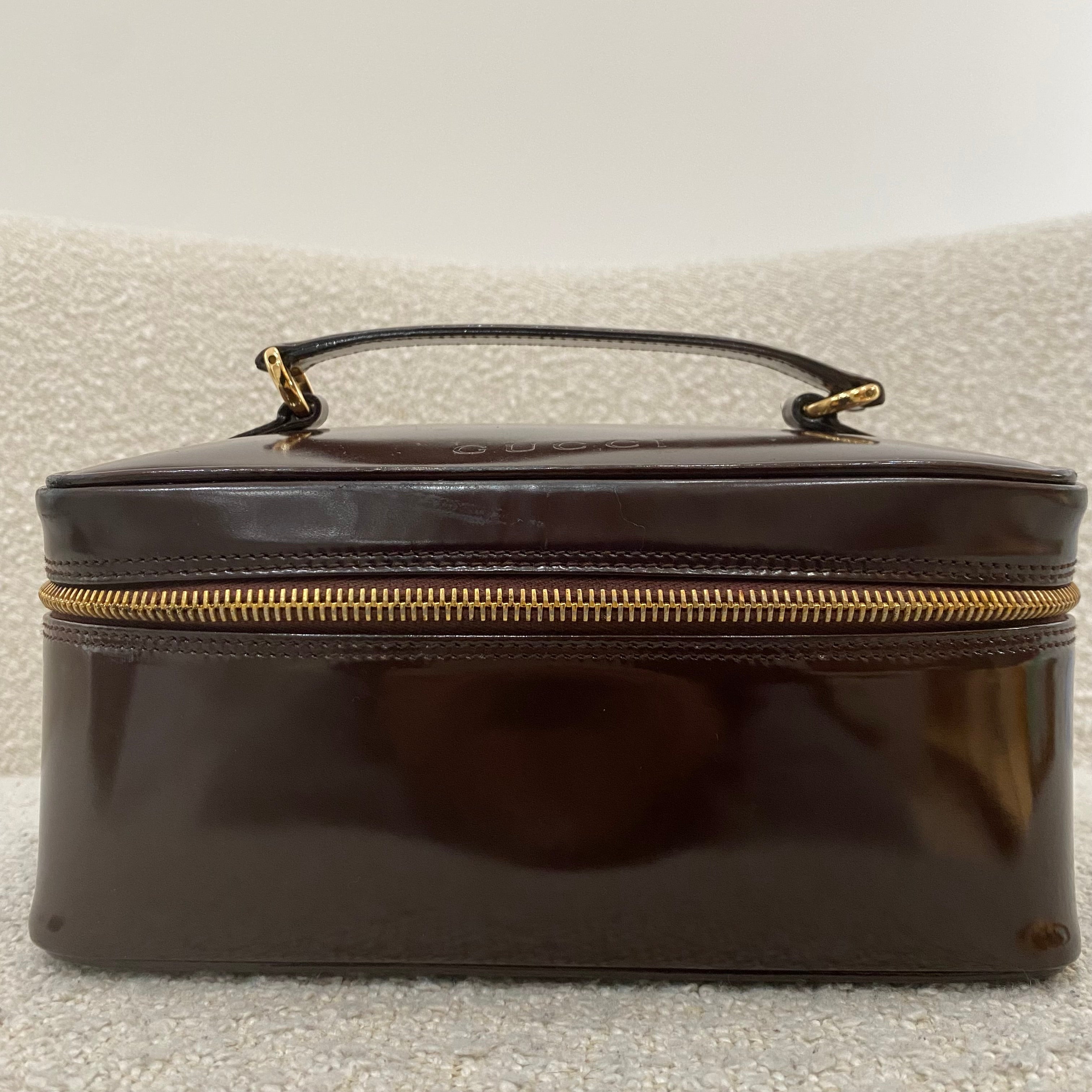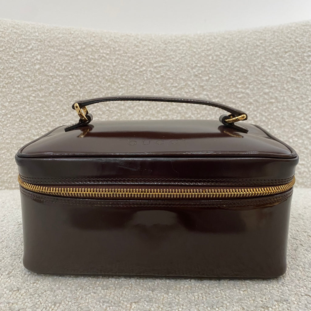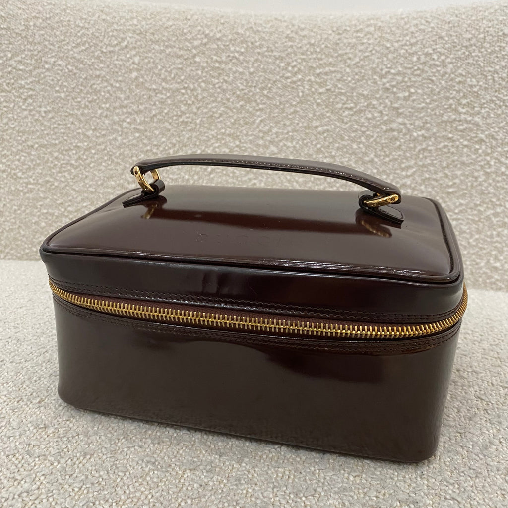 Pre-owned Gucci Vintage Bamboo Brown Patent Leather Vanity
