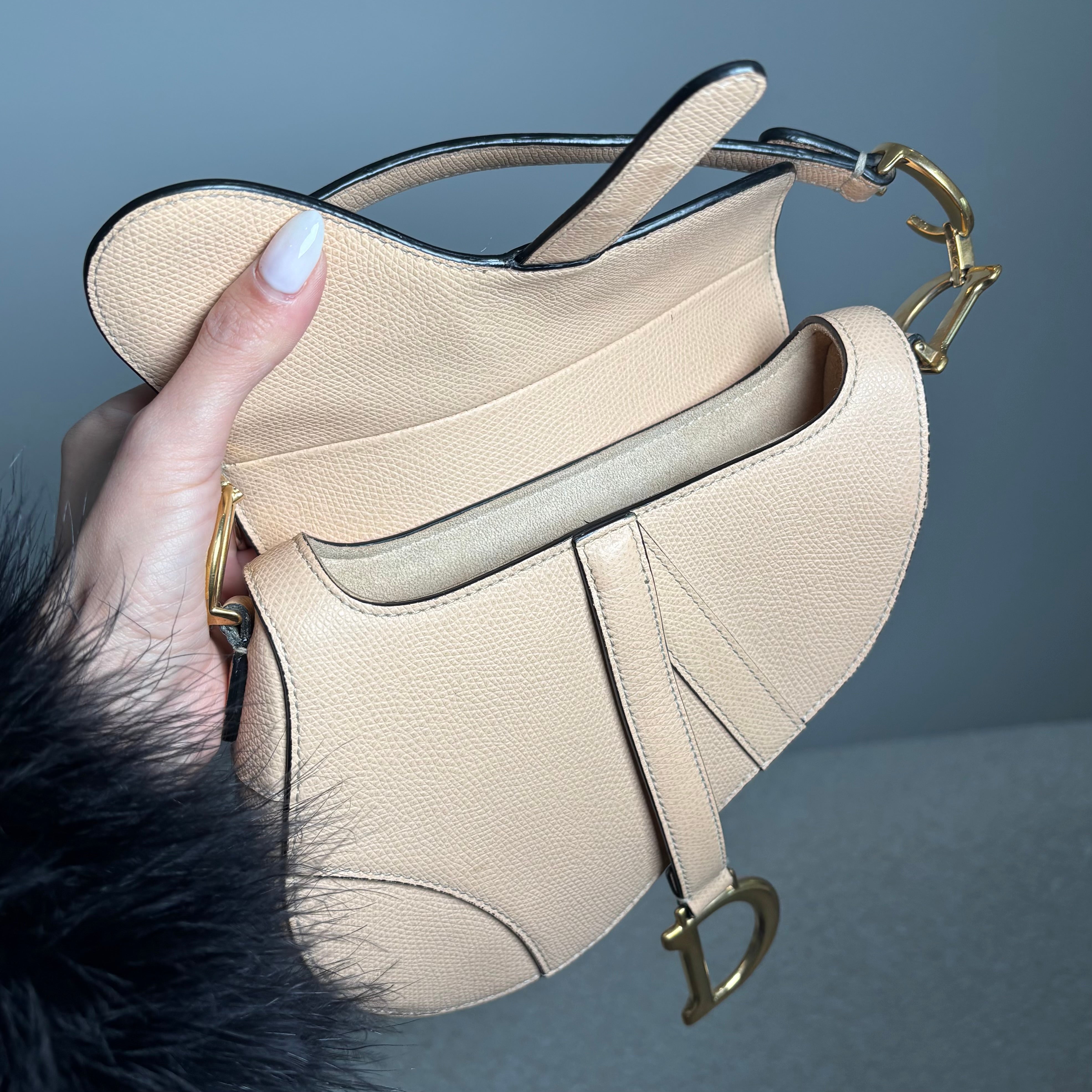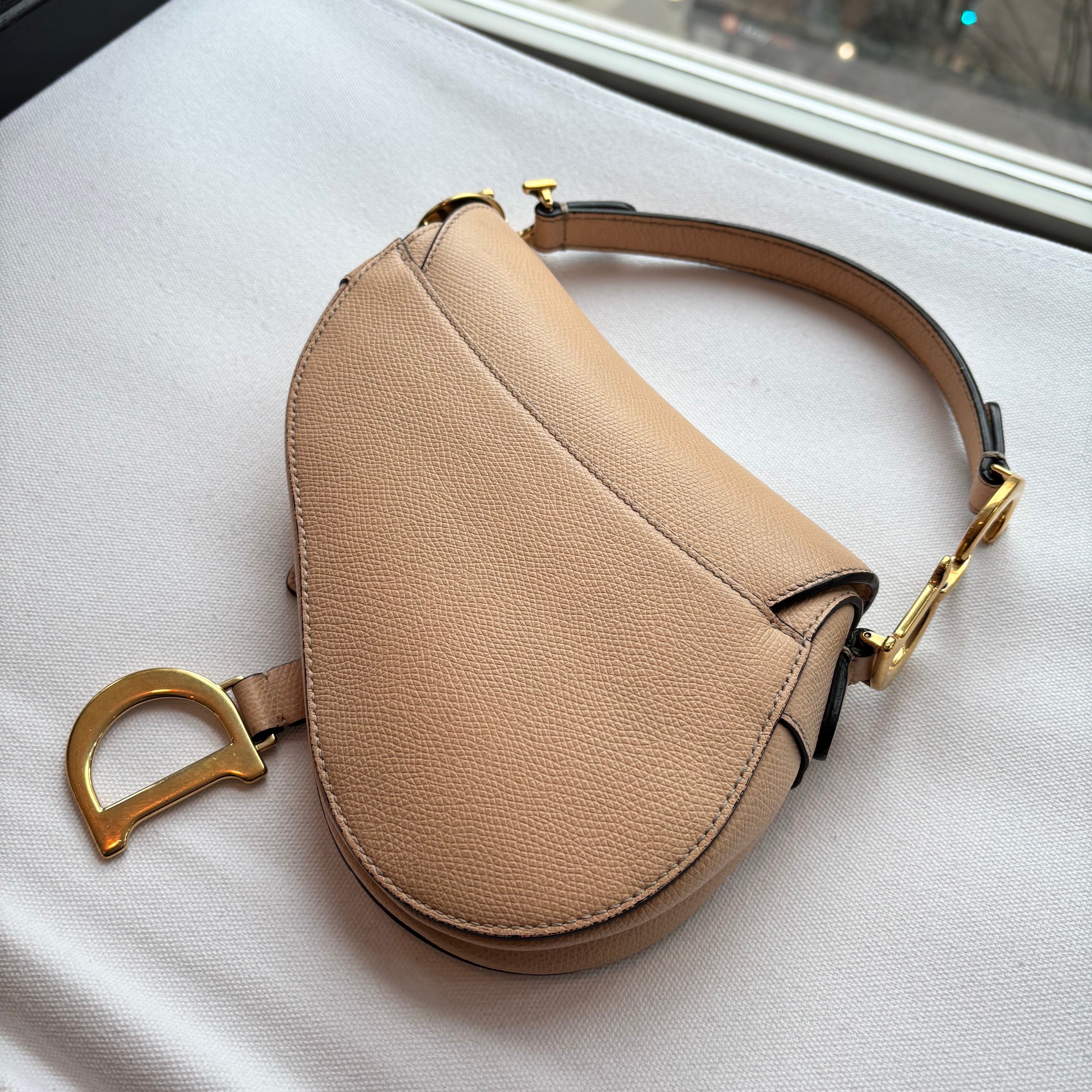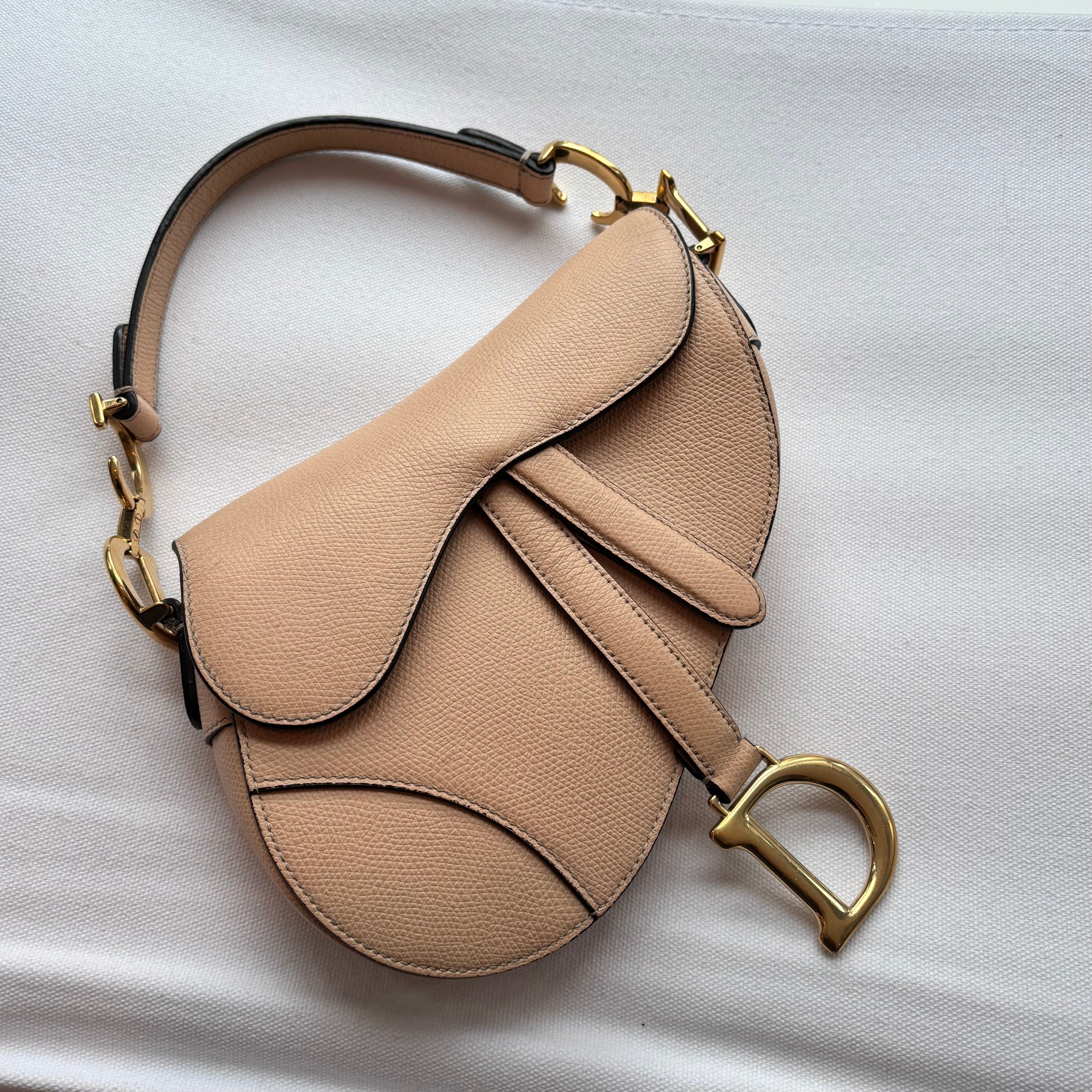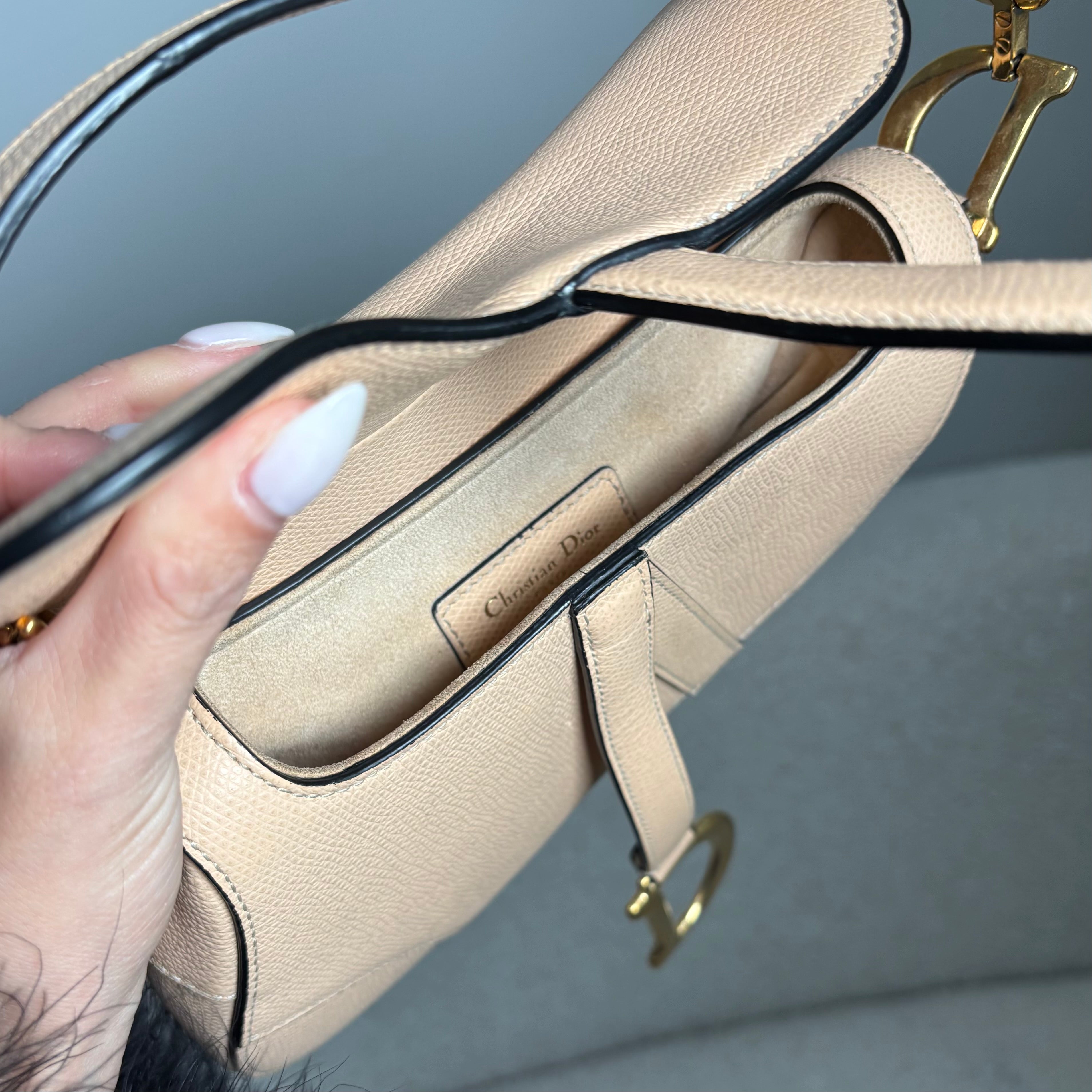 Pre-owned Christian Dior Light Beige Grained Leather Mini Saddle Bag