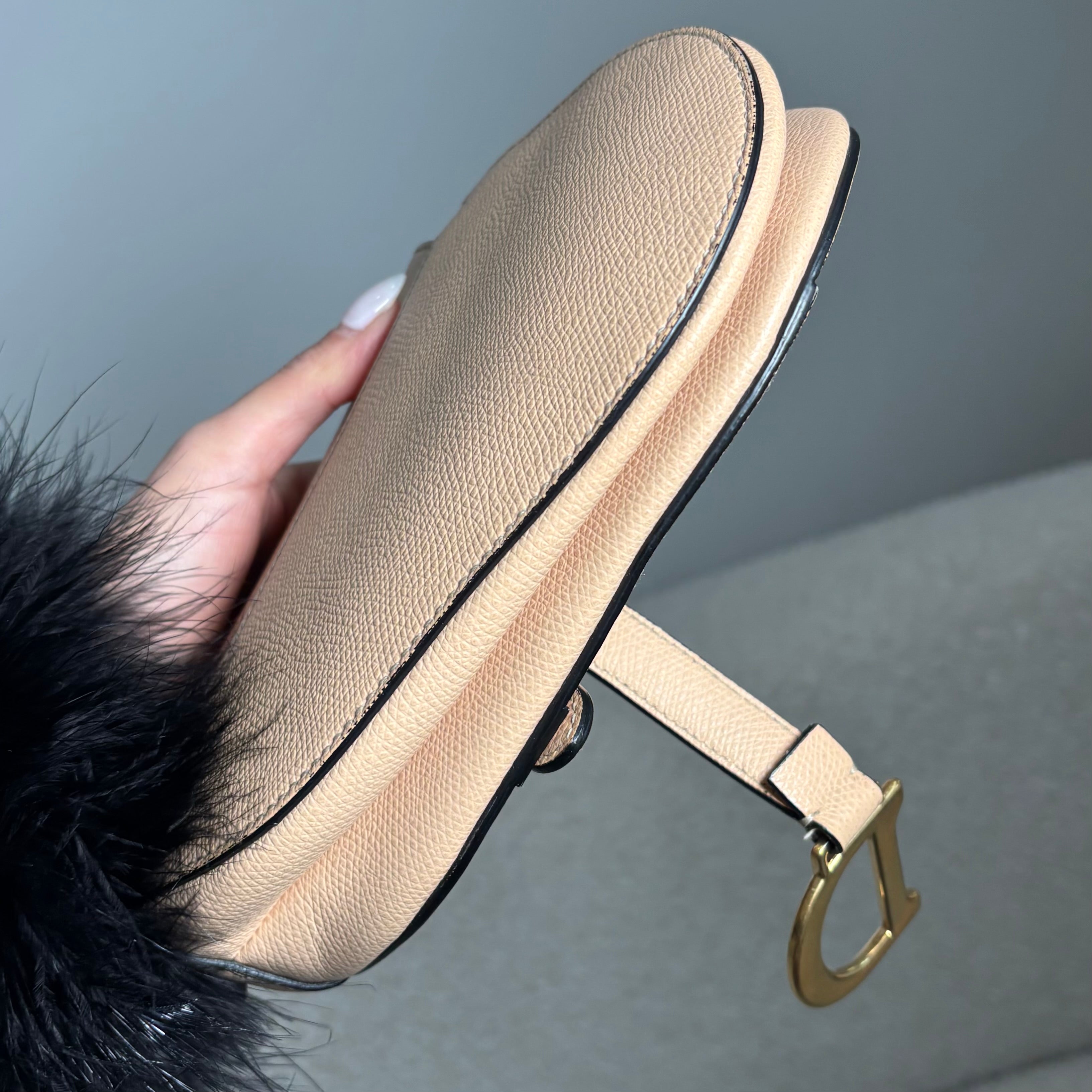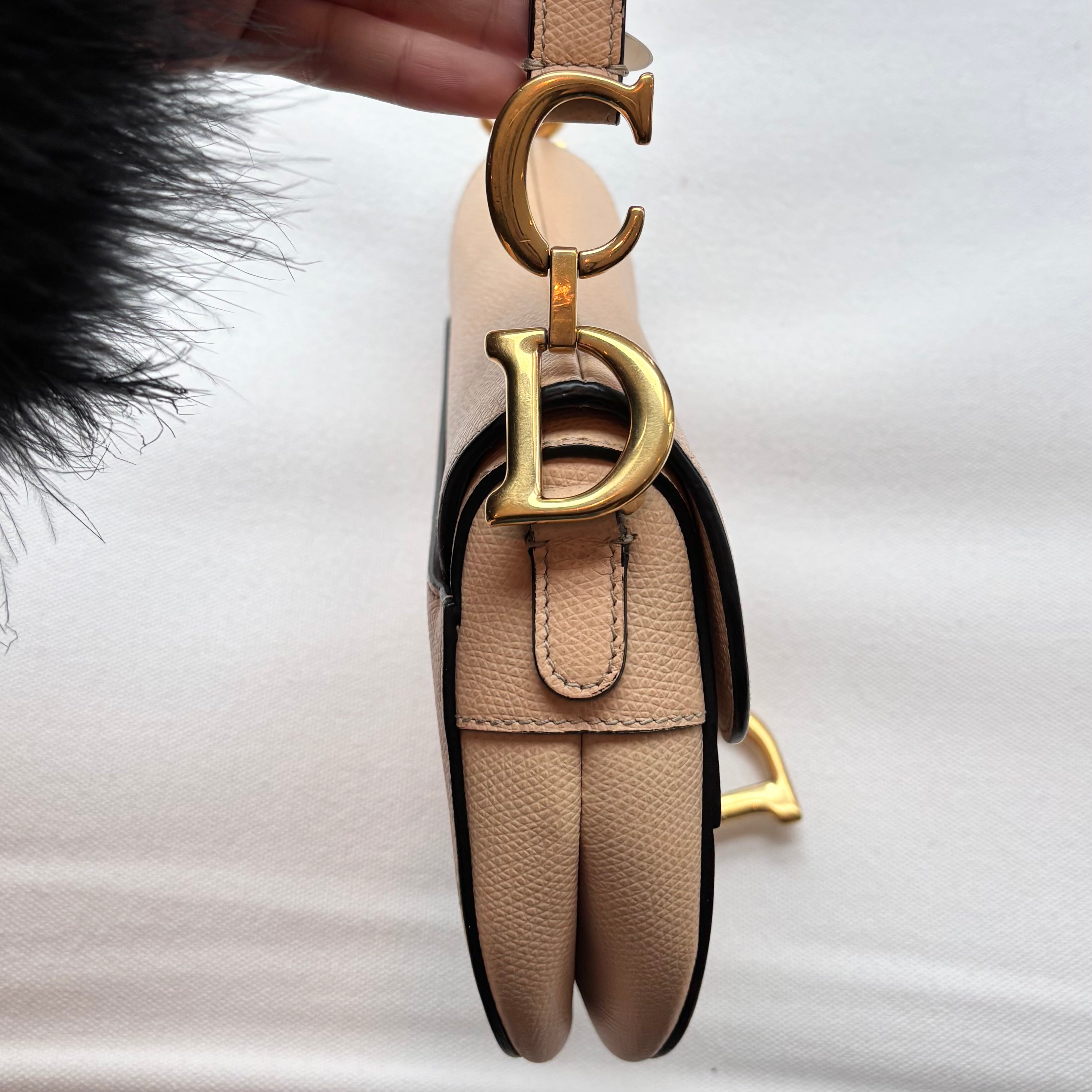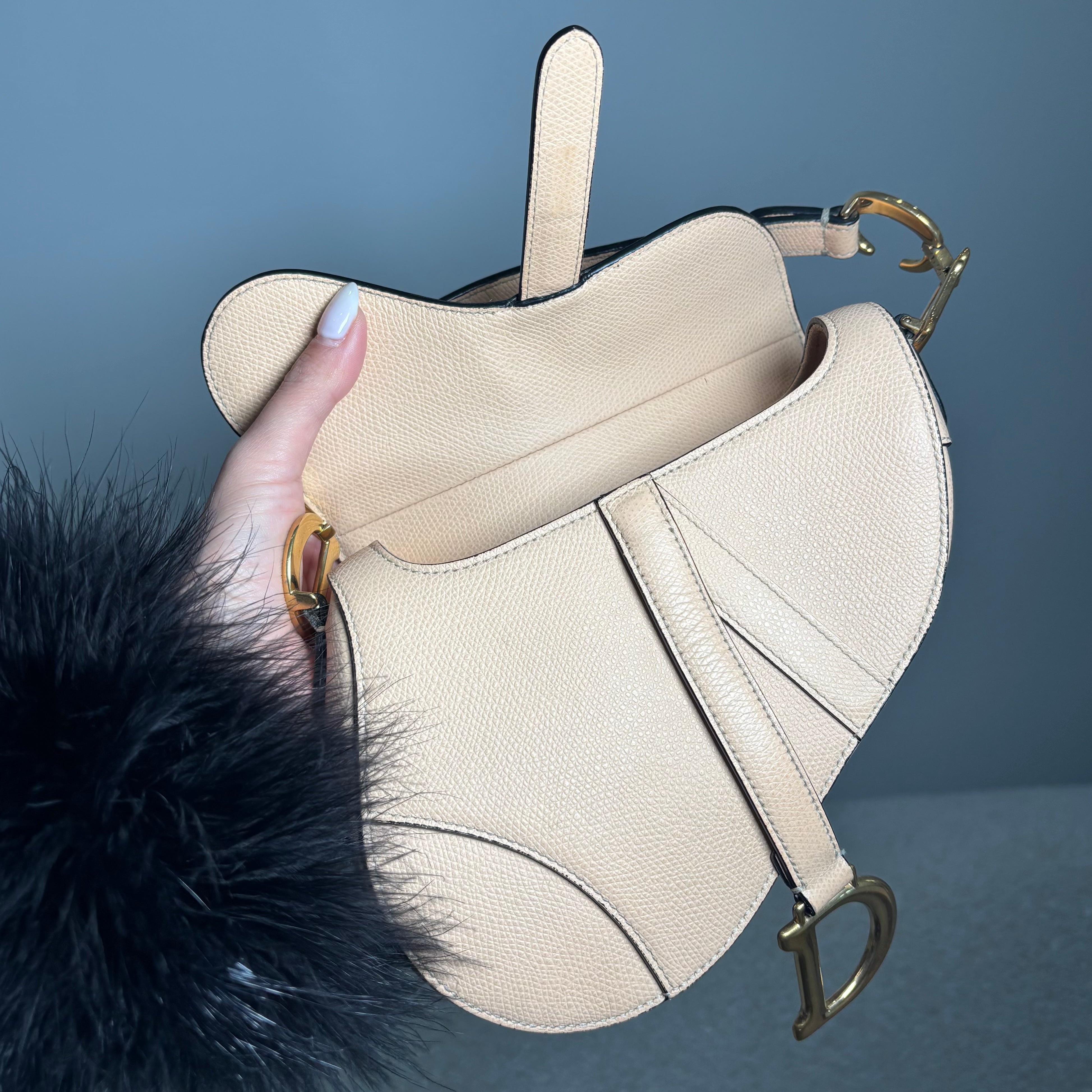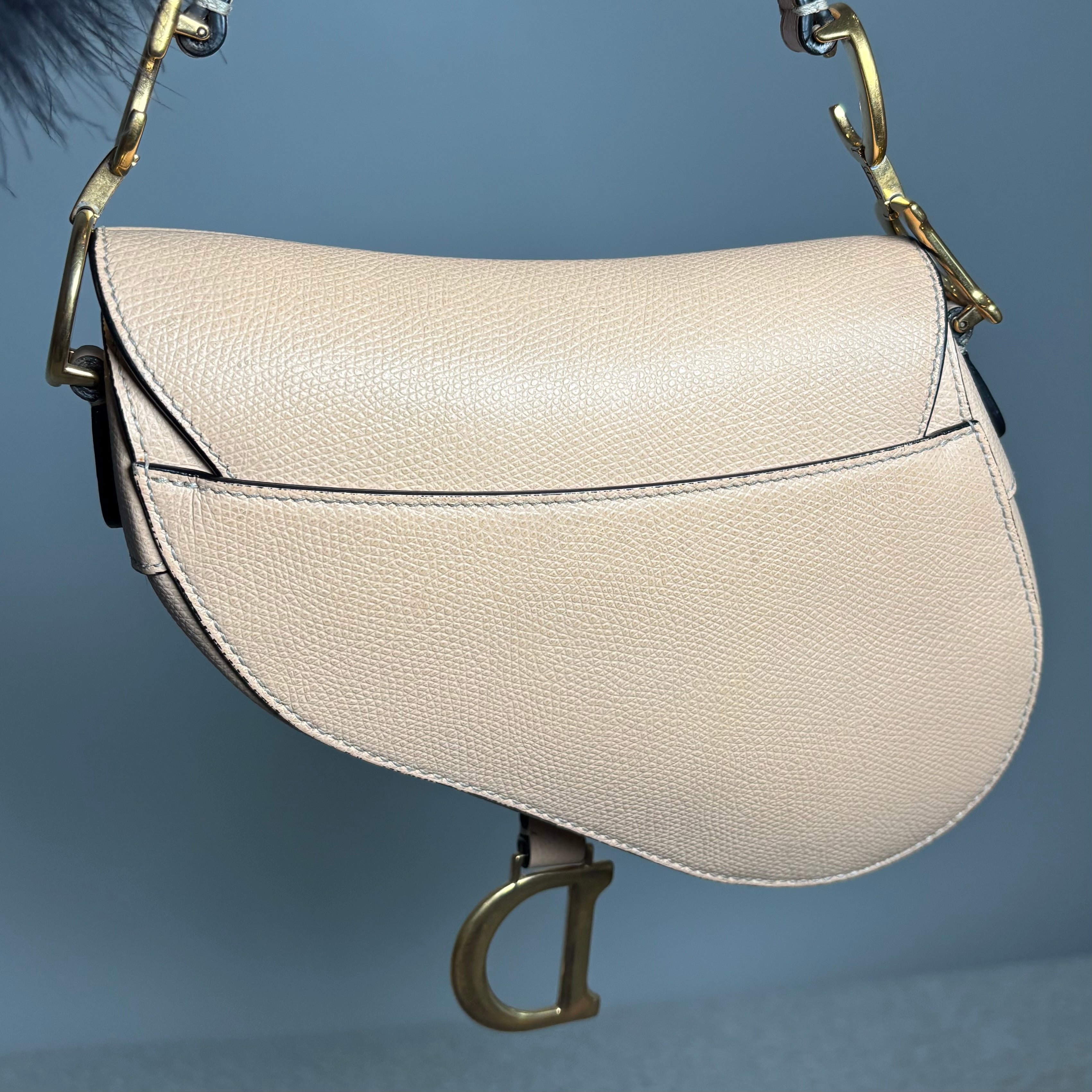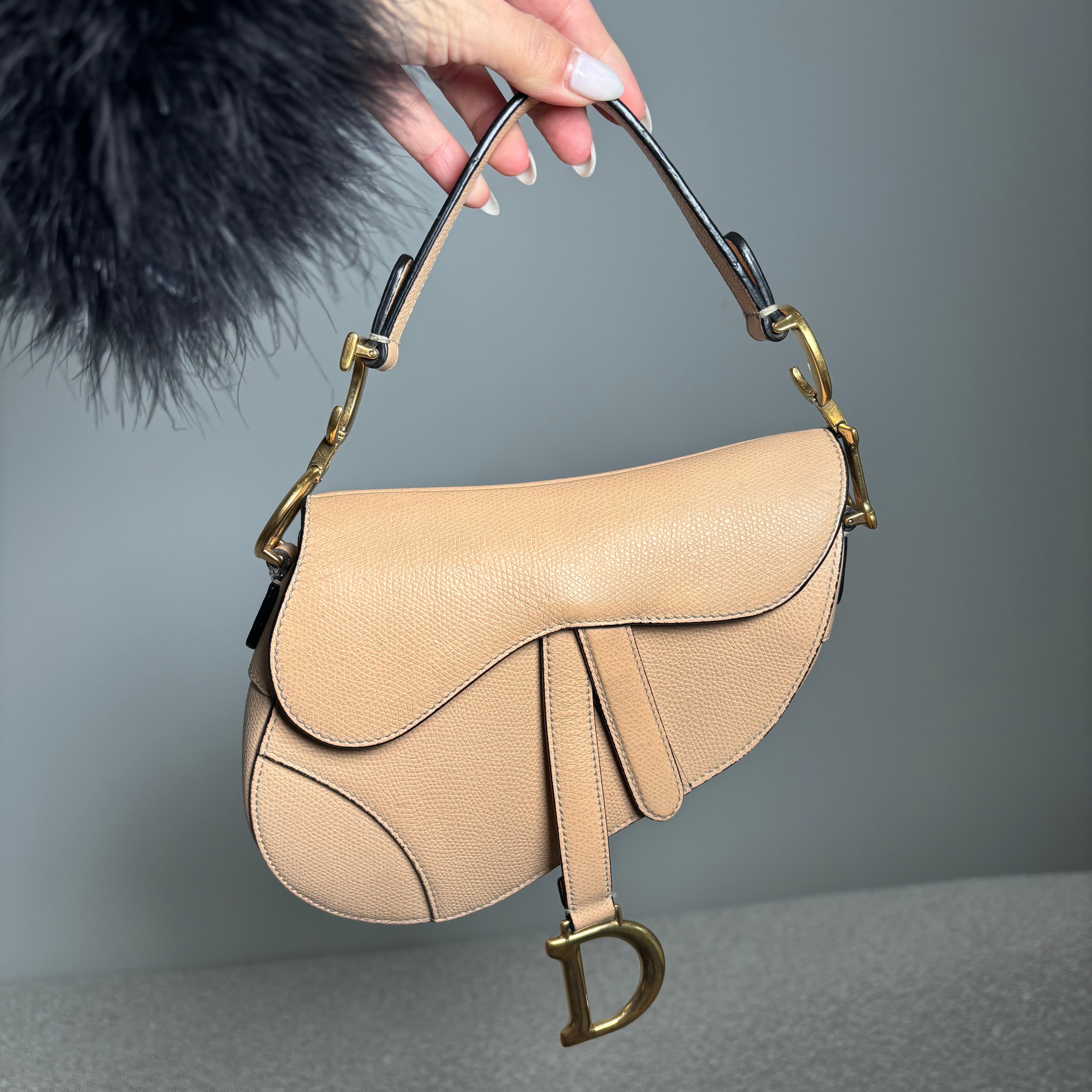 Pre-owned Christian Dior Light Beige Grained Leather Mini Saddle Bag