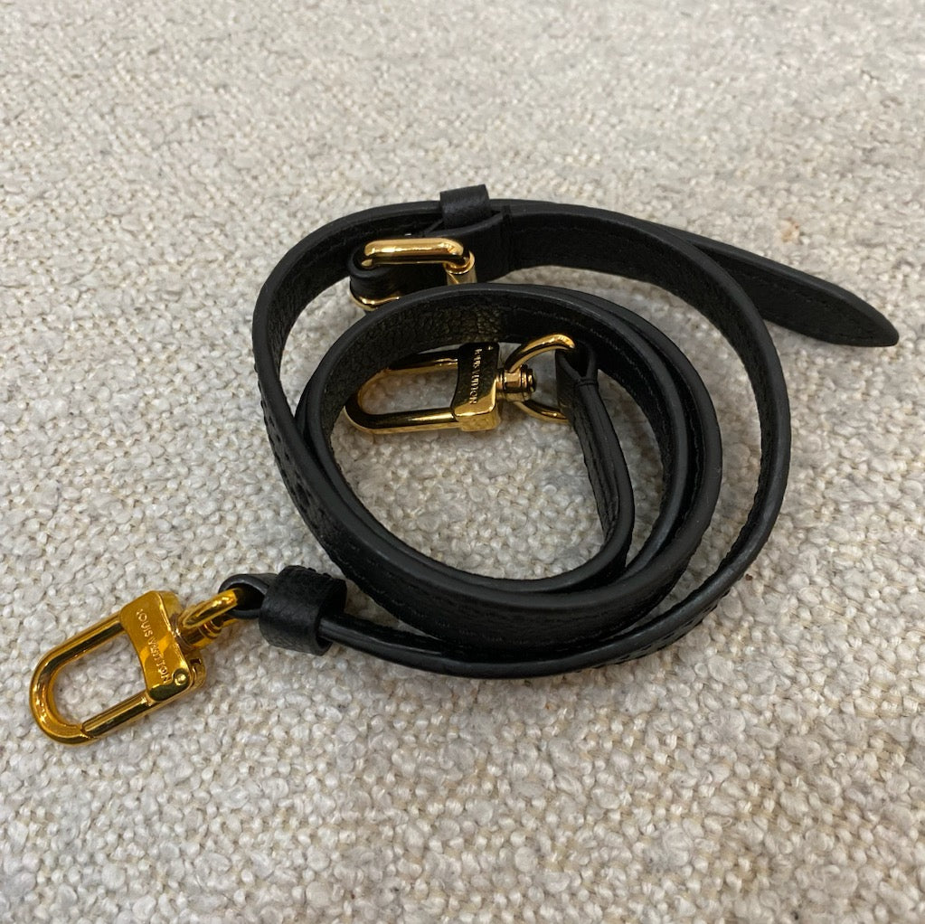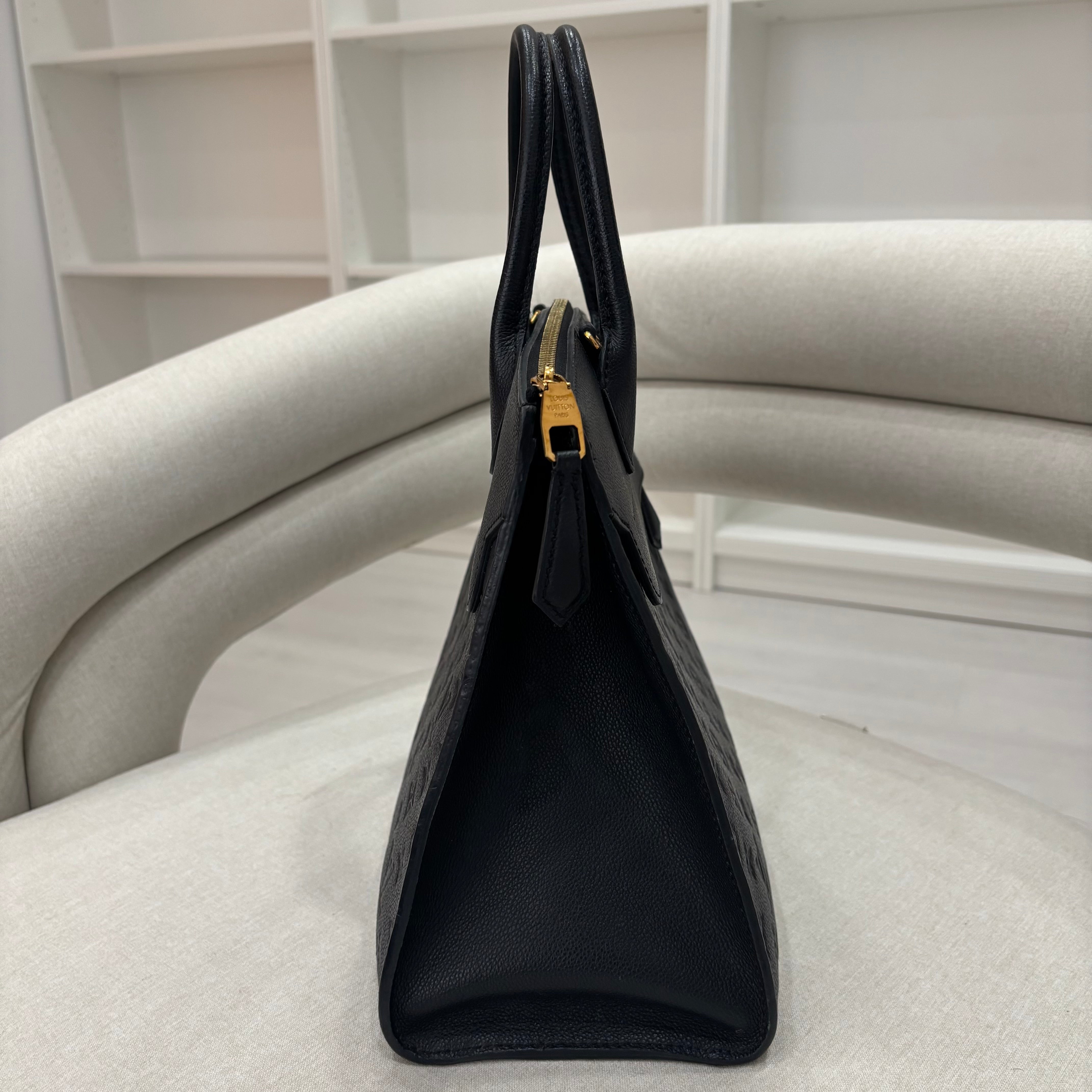 MM size. Approximately: Length: 13in Width: 6in Height: 11.5in Handle drop: 4.5in Bag depth: 11.5in Strap length: 33.5in. Black monogram empriente leather with gold tone hardware.