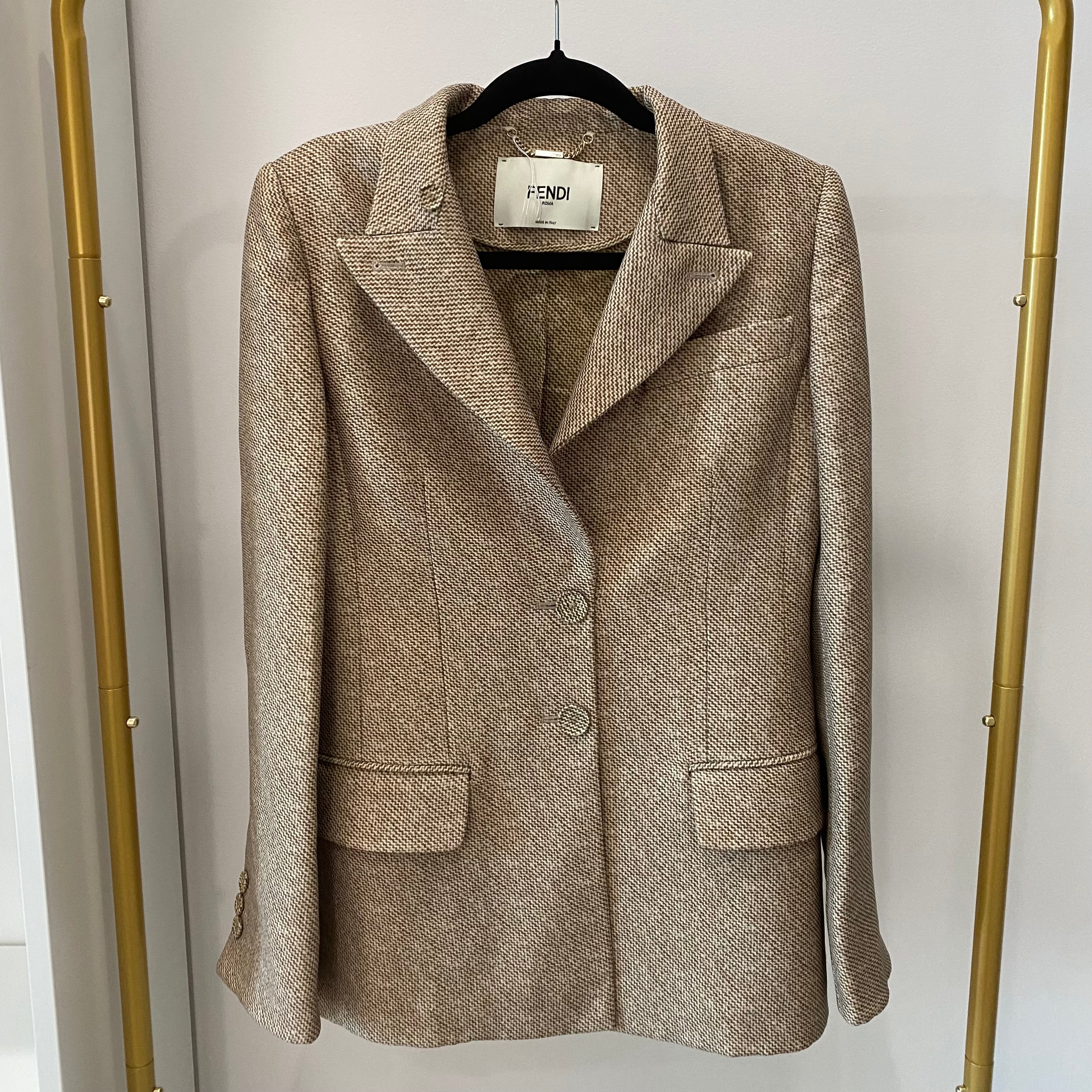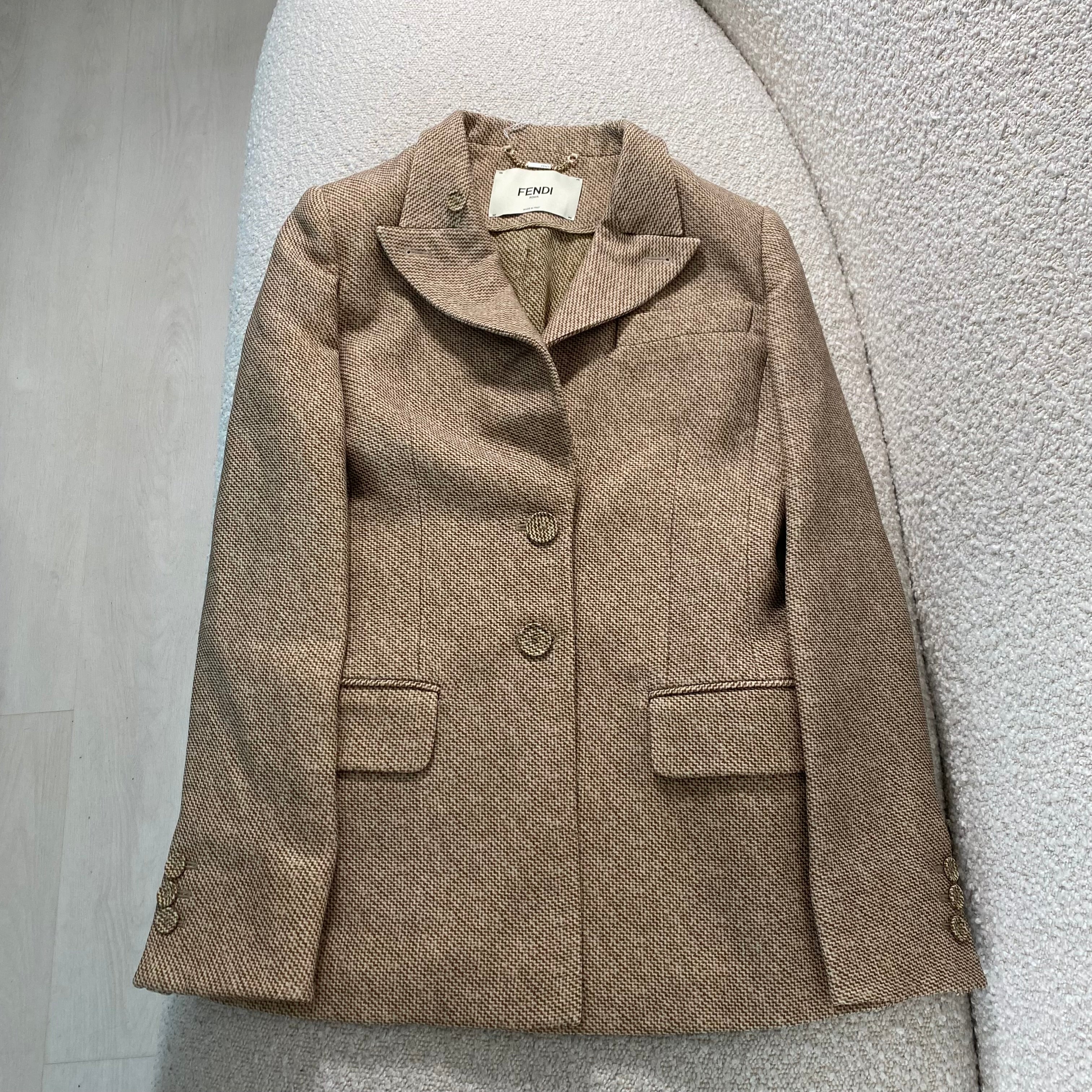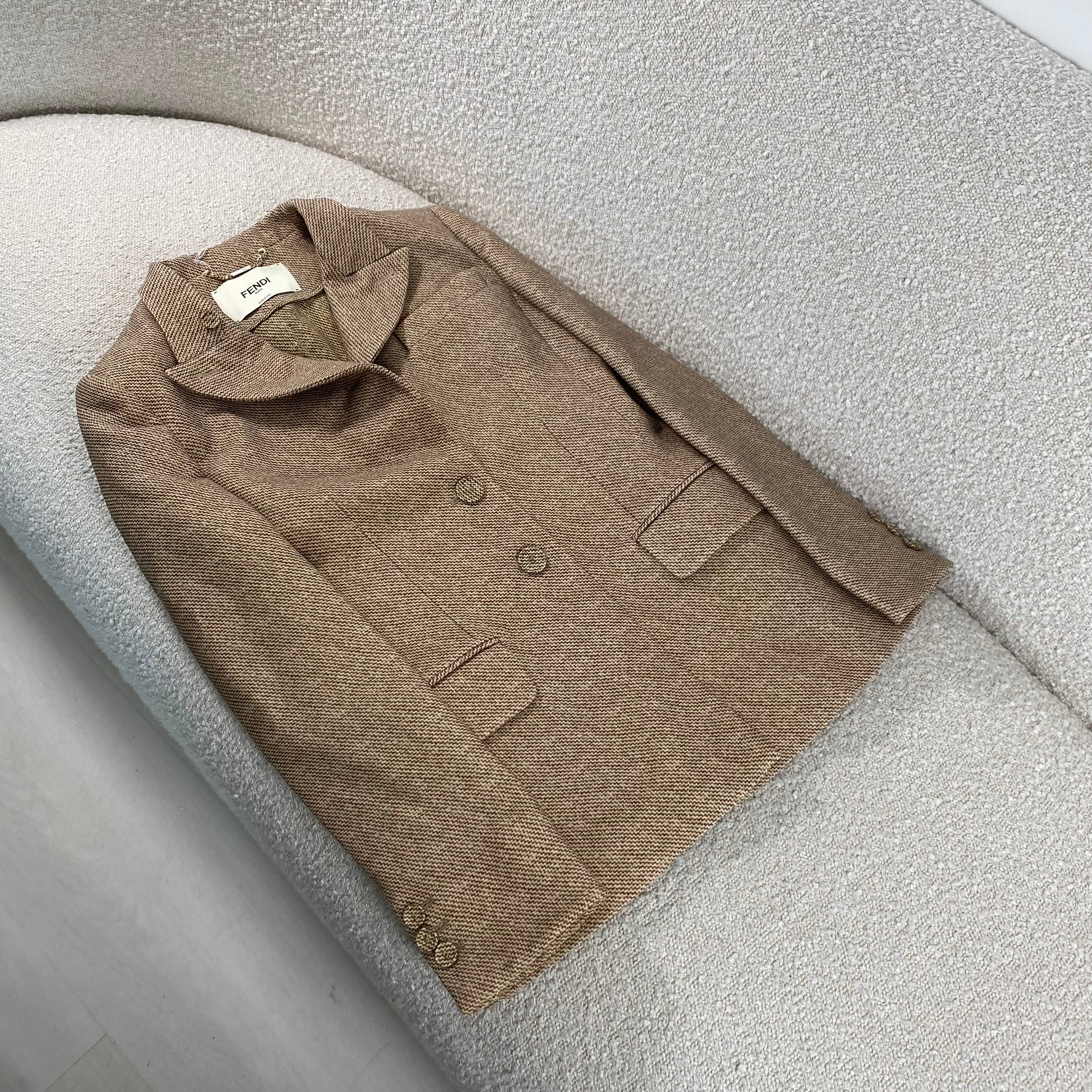 Pre-owned Fendi Beige Printed Wool Jacket Size S