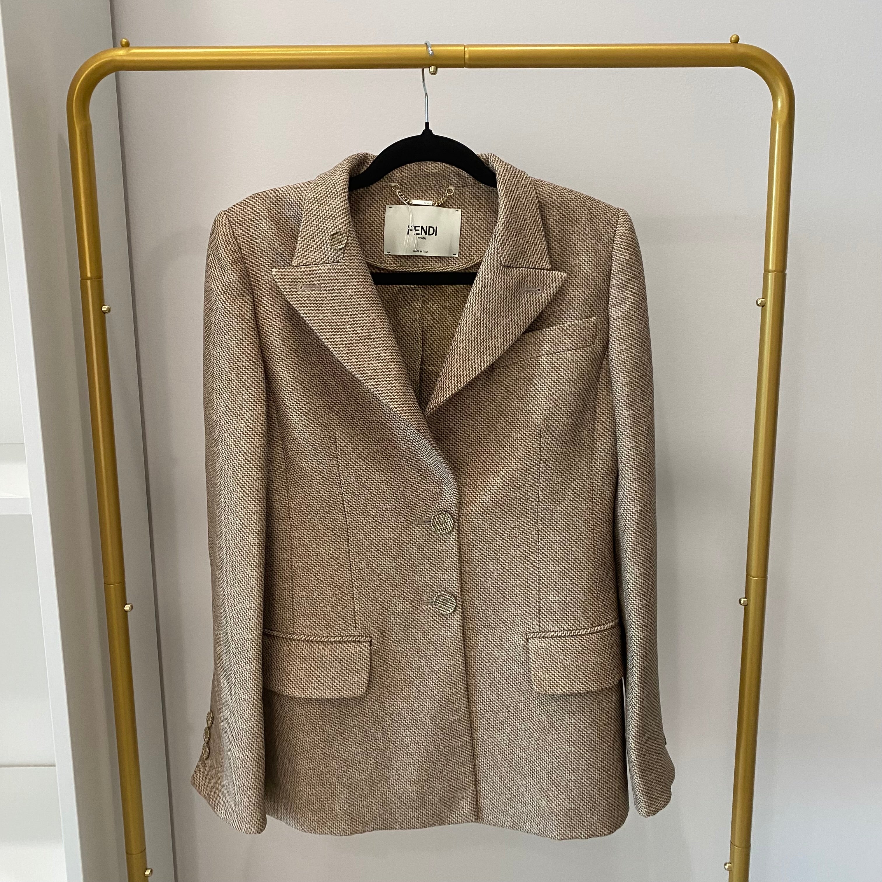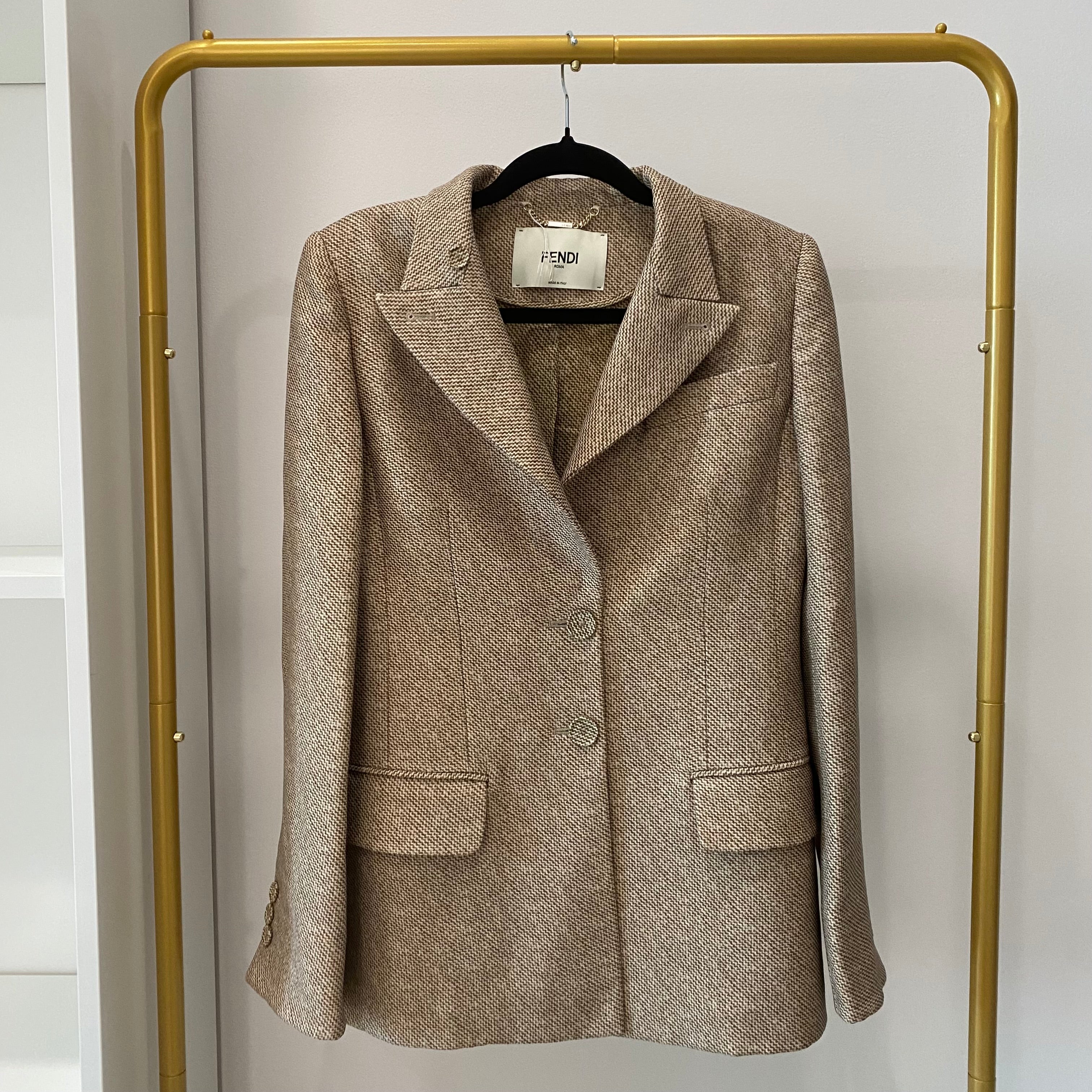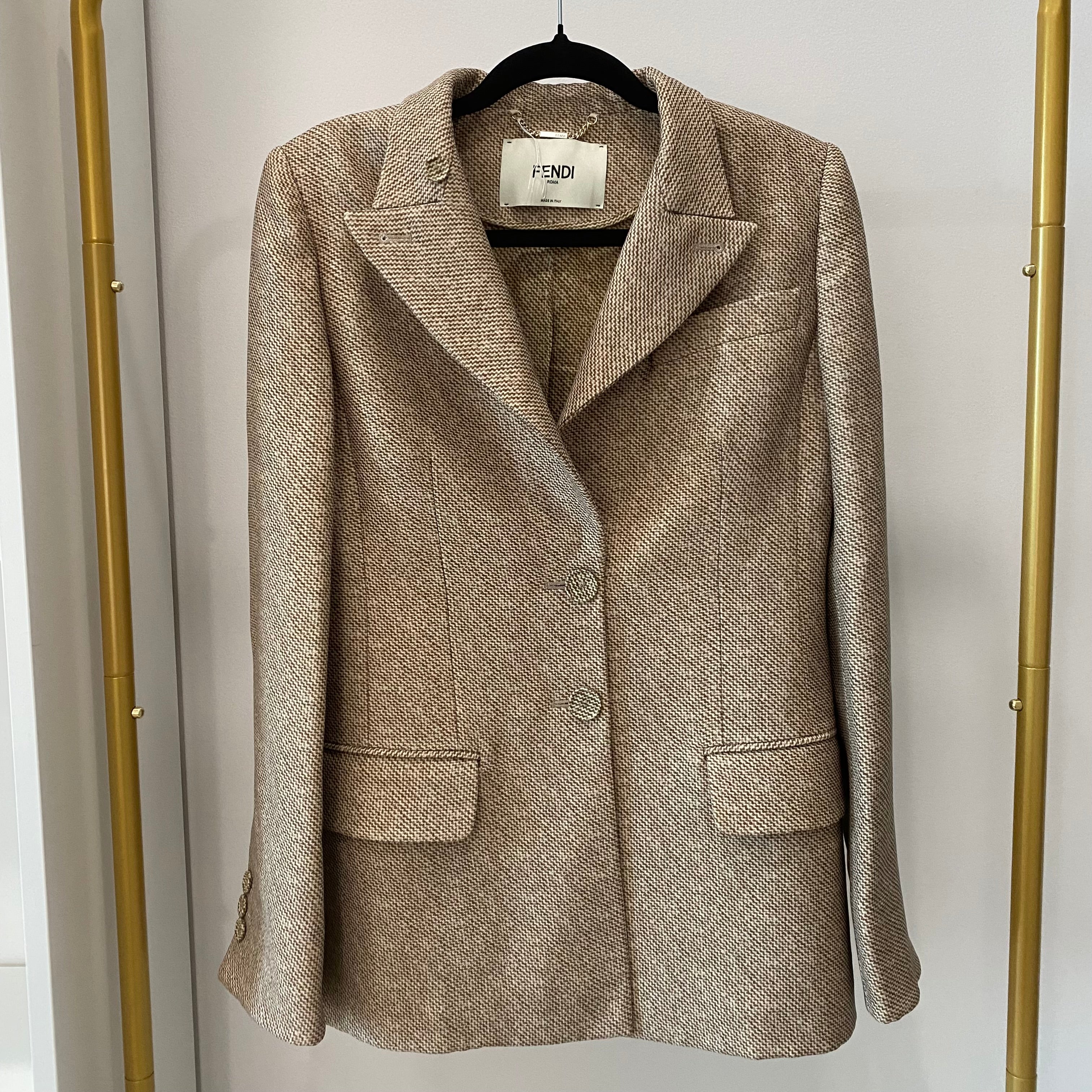 Pre-owned Fendi Beige Printed Wool Jacket Size S