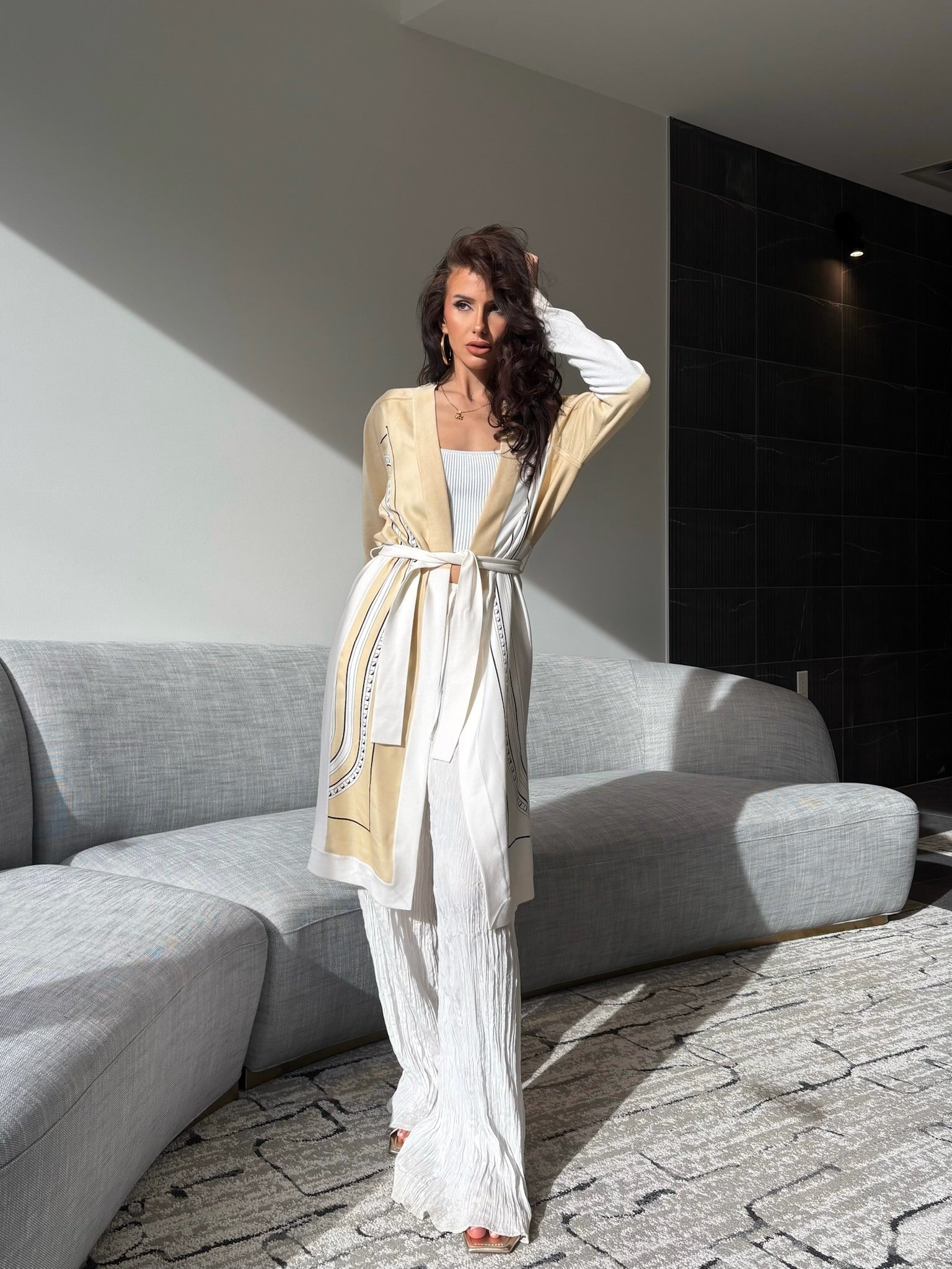 Pre-owned HERMÈS Cream Silk Twillaine Grand Tralala Cut 90 Long Cardigan 34