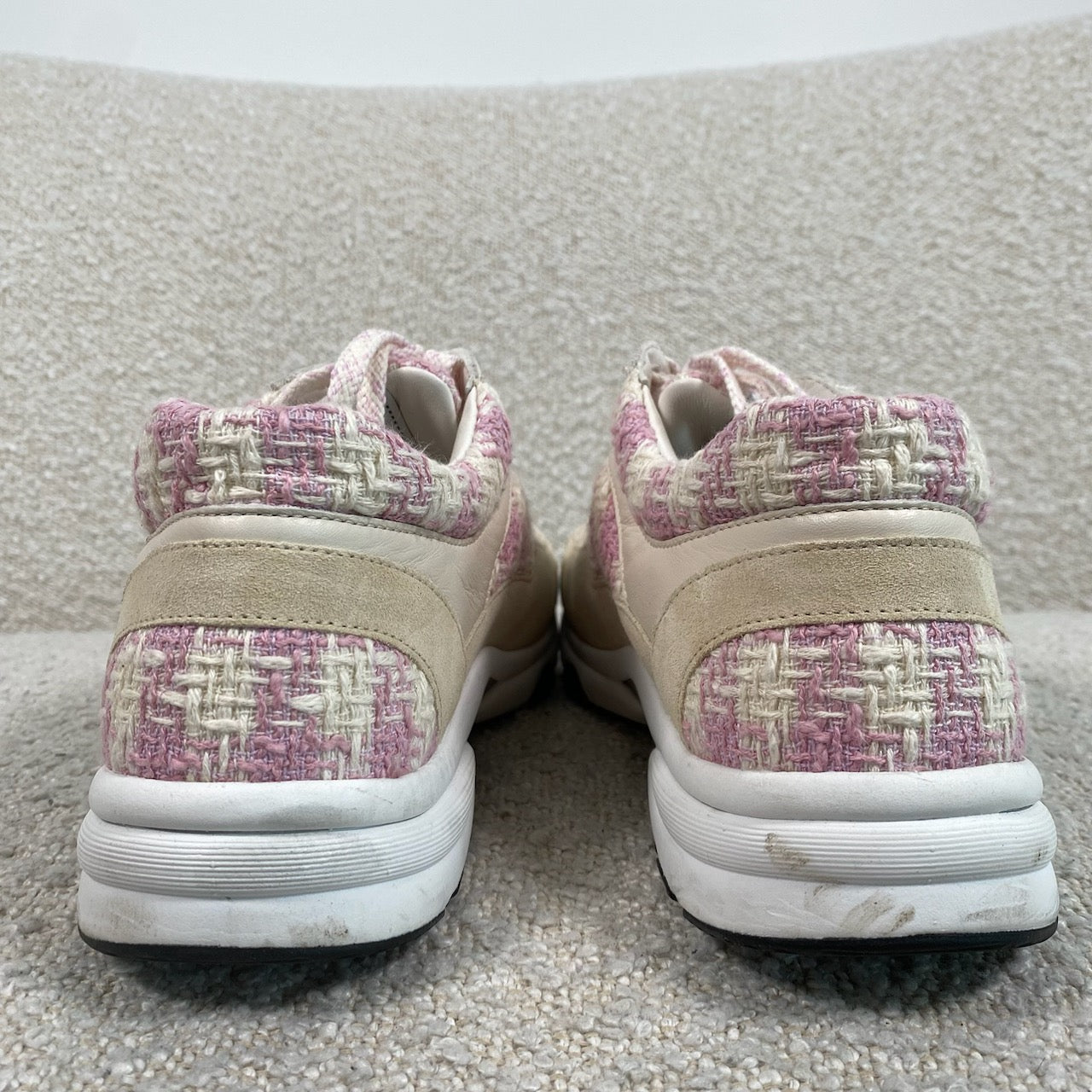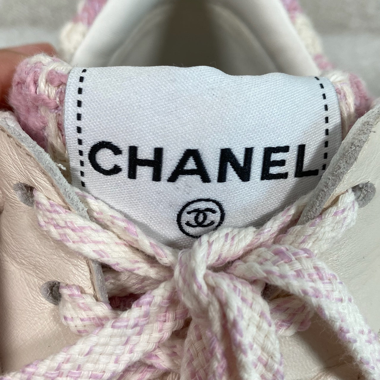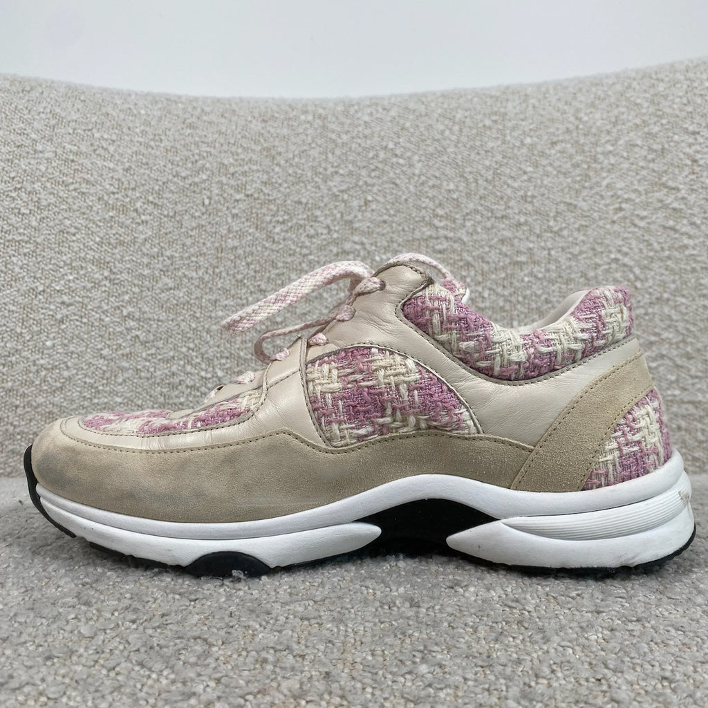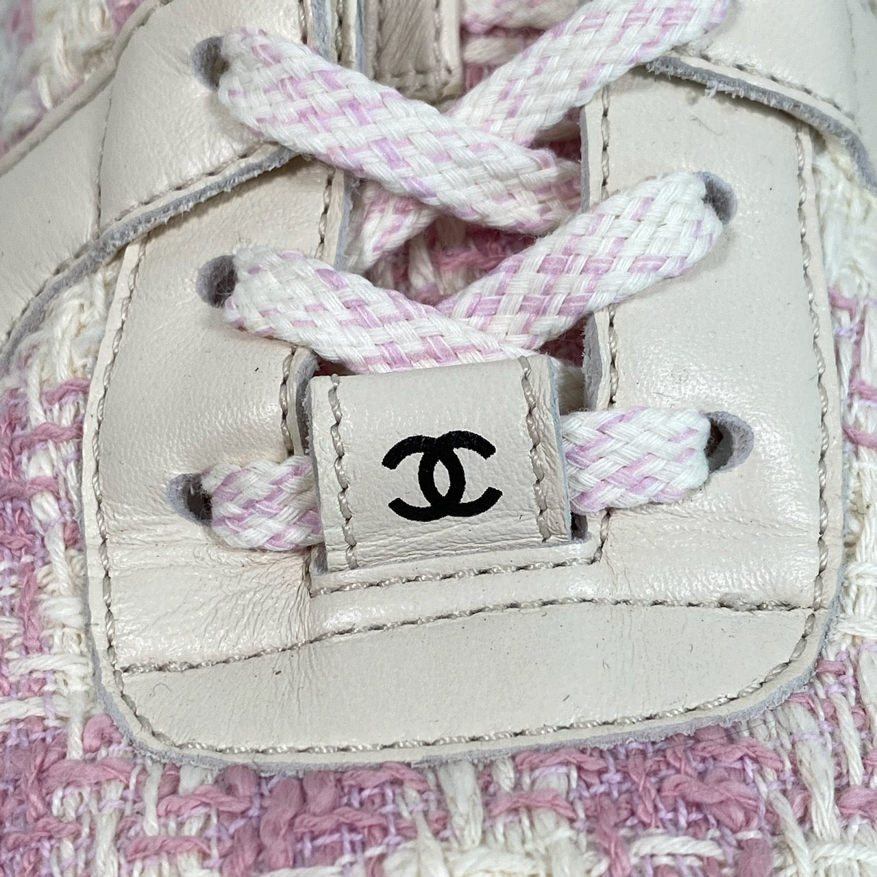 Pre-owned Chanel CC Tweed White Pink Sneakers 39