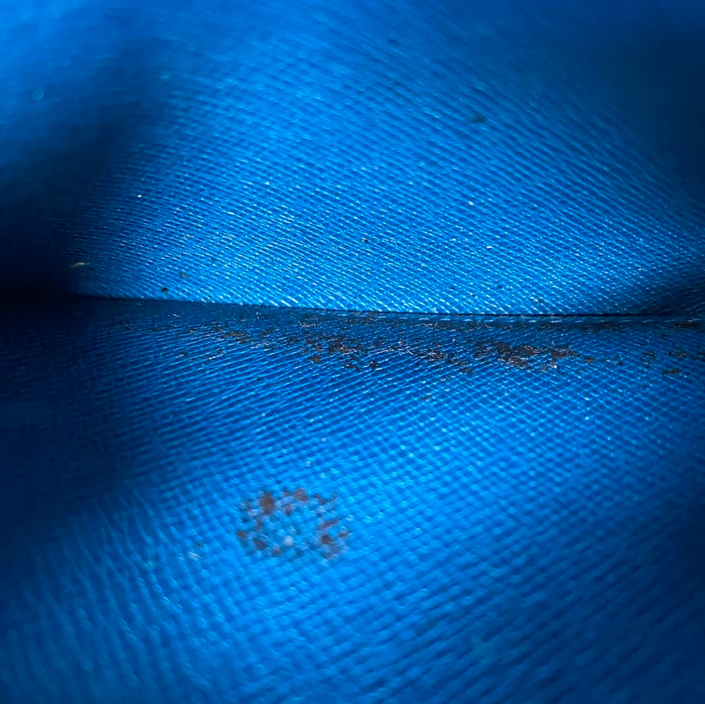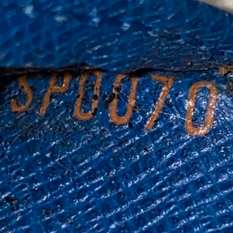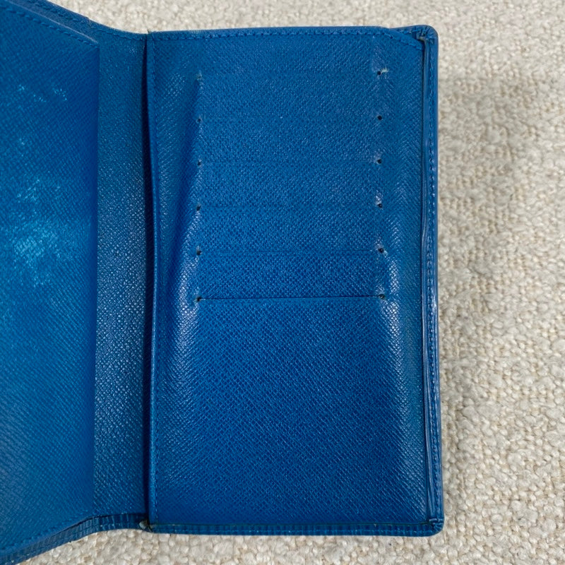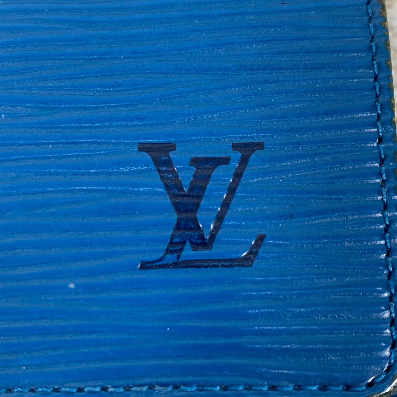 Blue Epi leather. Length: 4.5in Height: 6.25in Width: 1.25in.