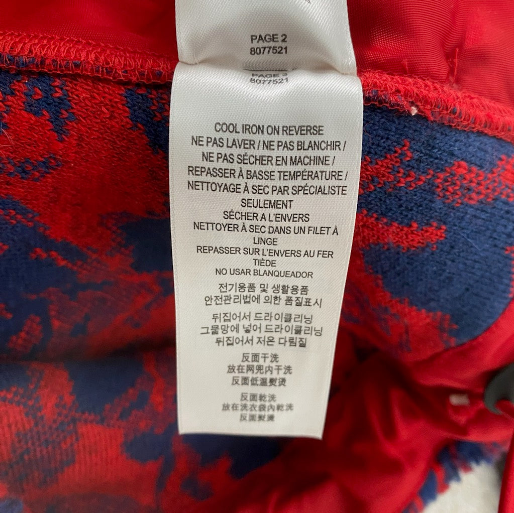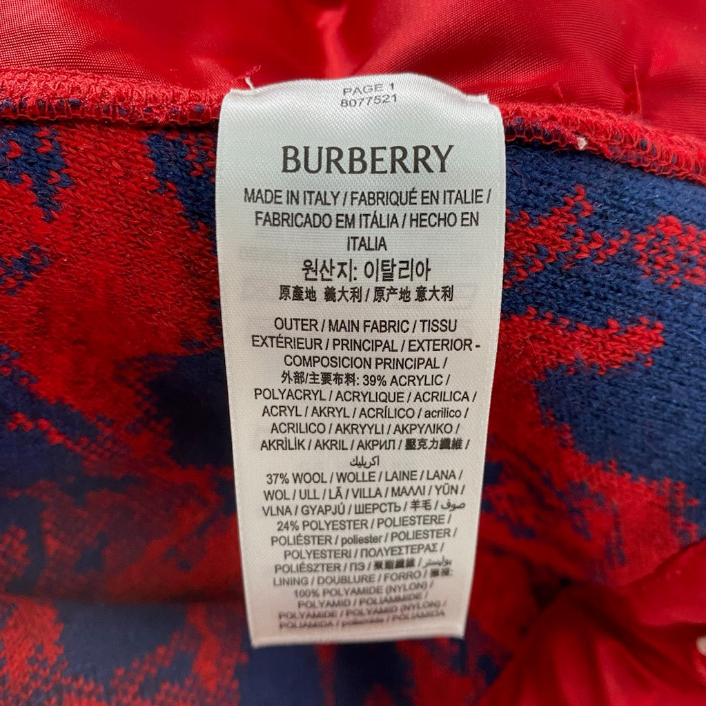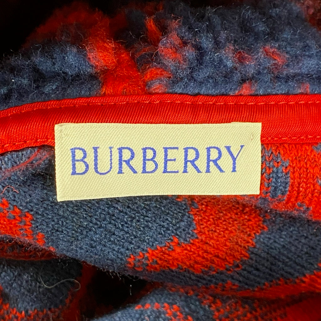 Pre-owned BURBERRY RED/NAVY SHERPA ROSETTE PATTERNED HOODED SWEATSHIRT SIZE LARGE