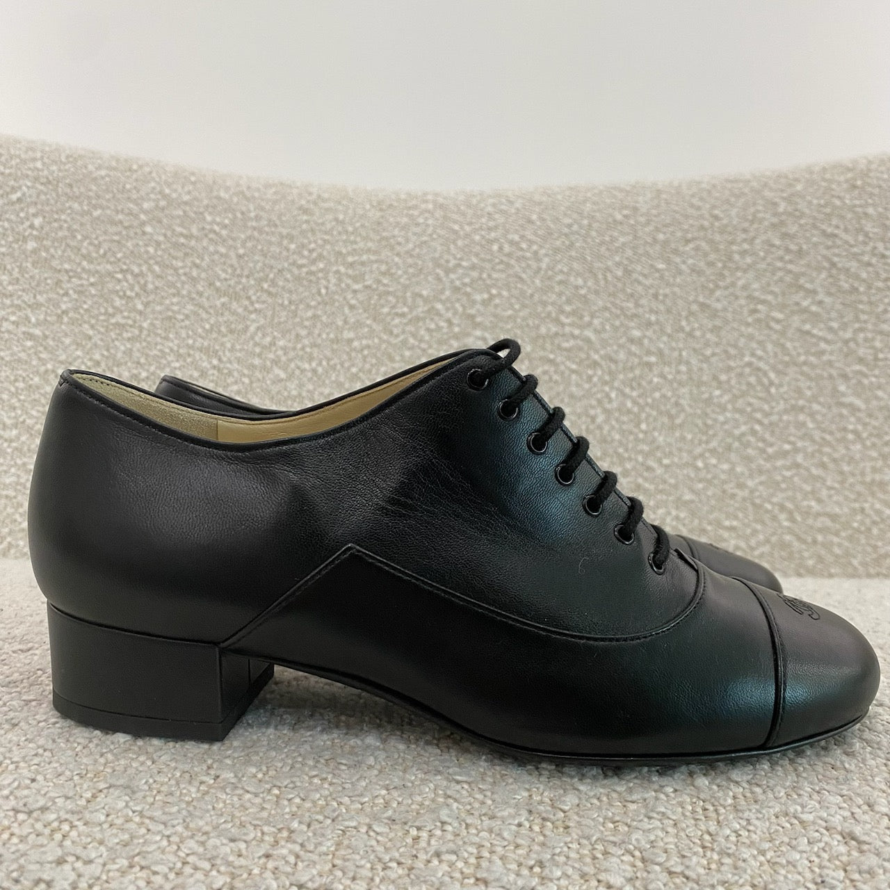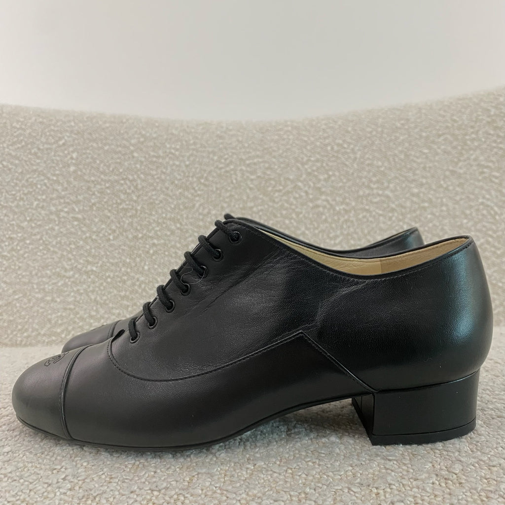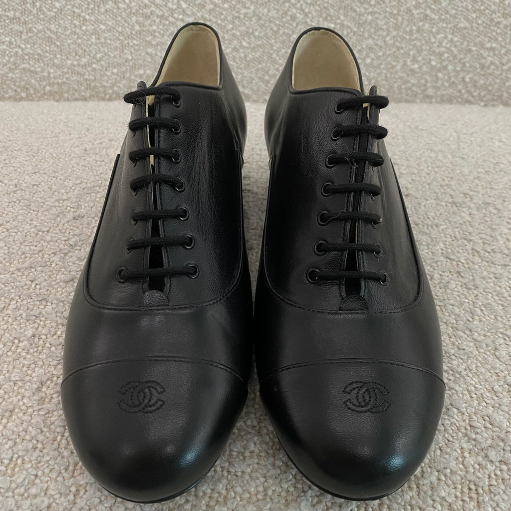 Pre-owned Chanel CC Black Lambskin Oxford Shoes 37.5