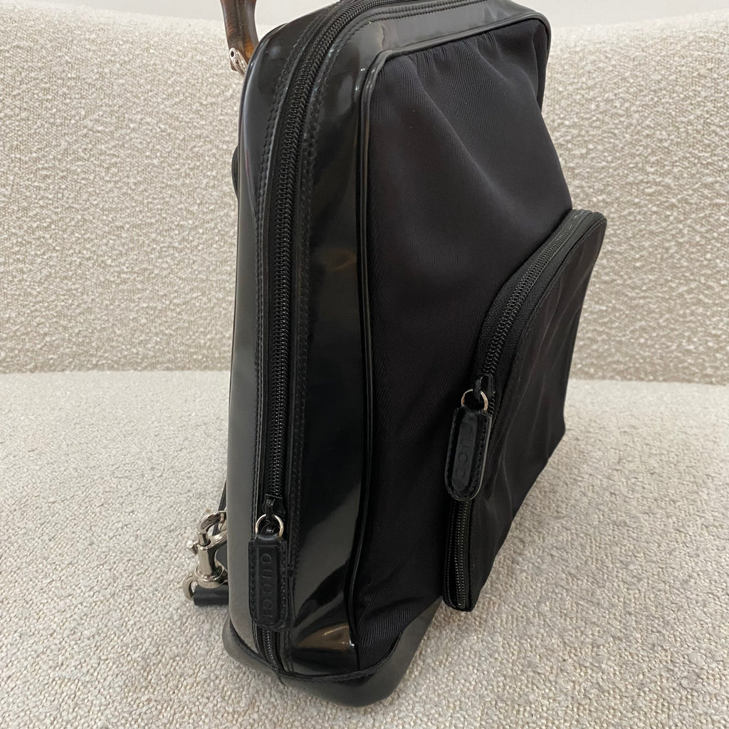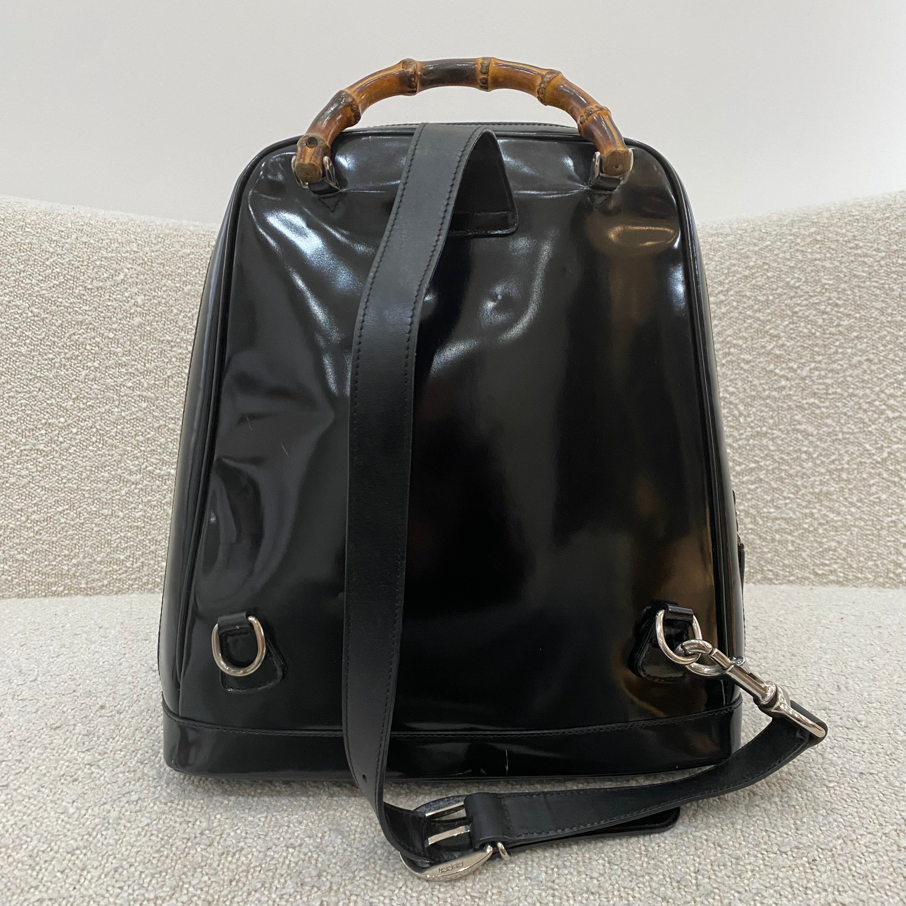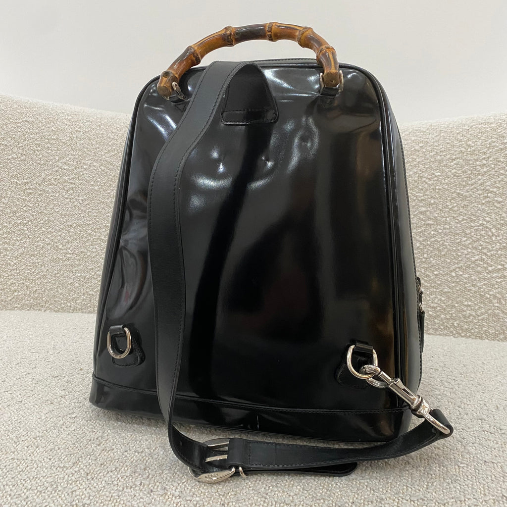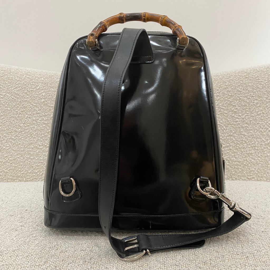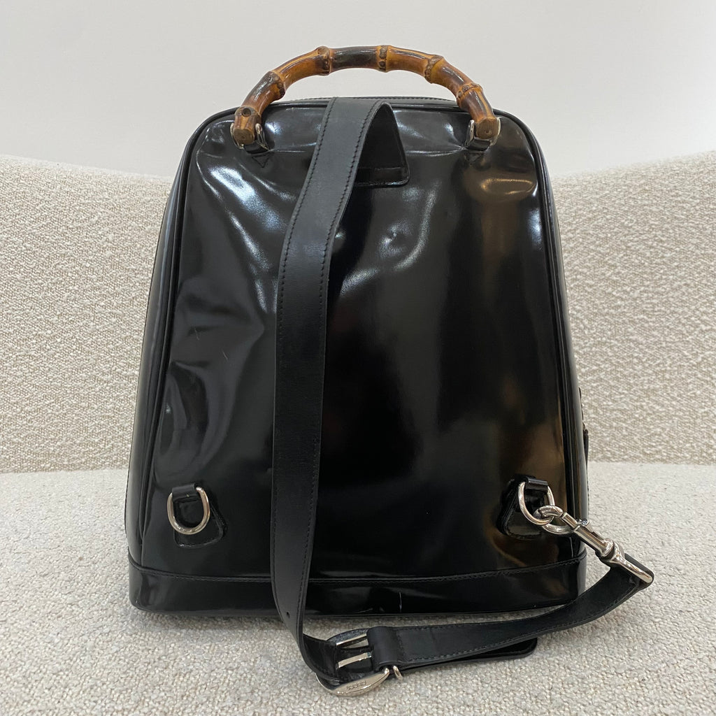 Pre-owned Gucci Black Bambo Backpack Bag Vintage