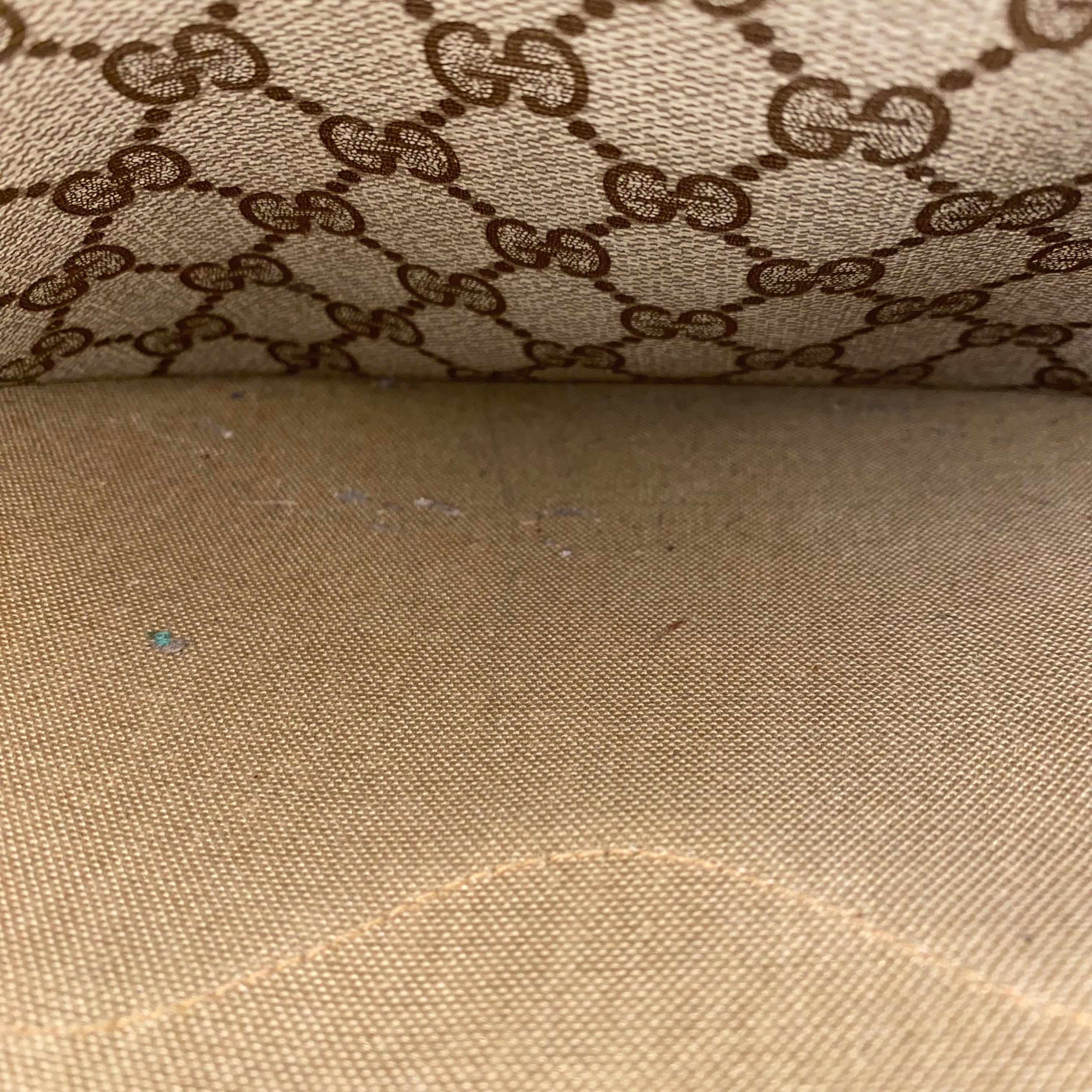 Approximately: Length: 13.75in Width: 3:5in Height: 14in Handle drop: 11in Bag depth: 14in. Monogram coated canvas. Gold tone hardware.