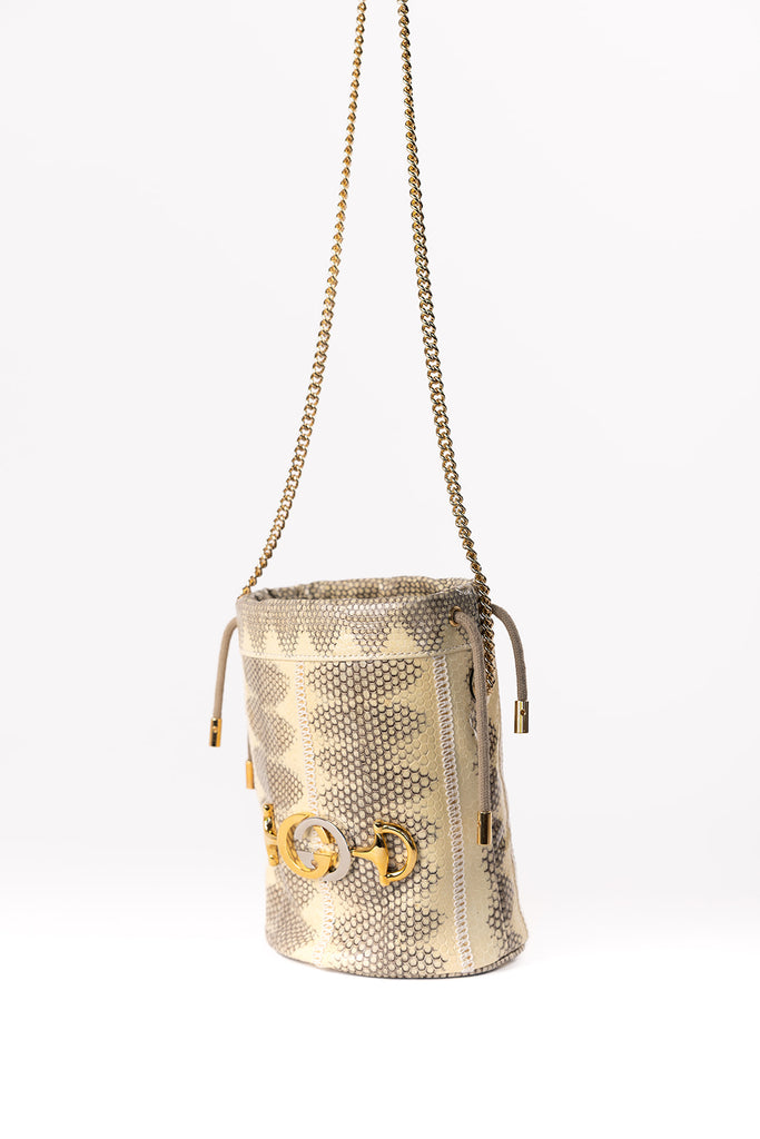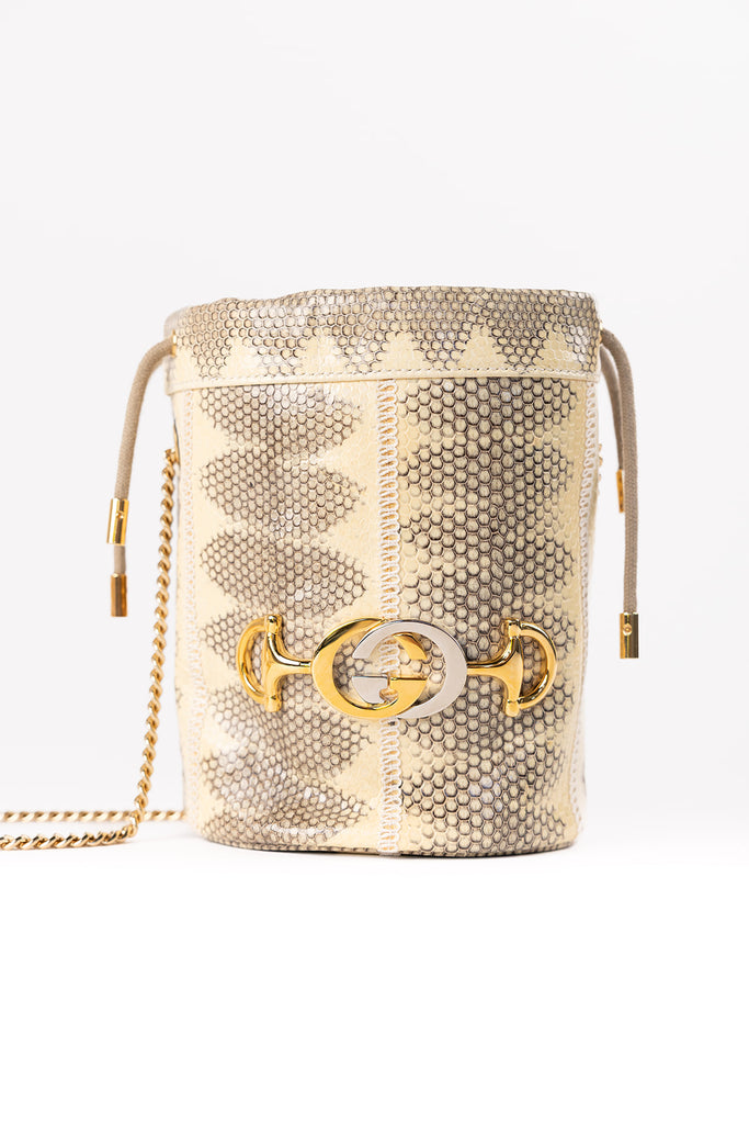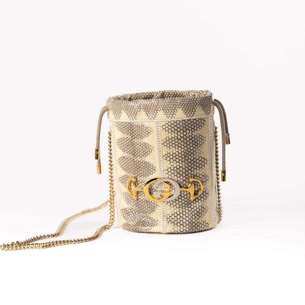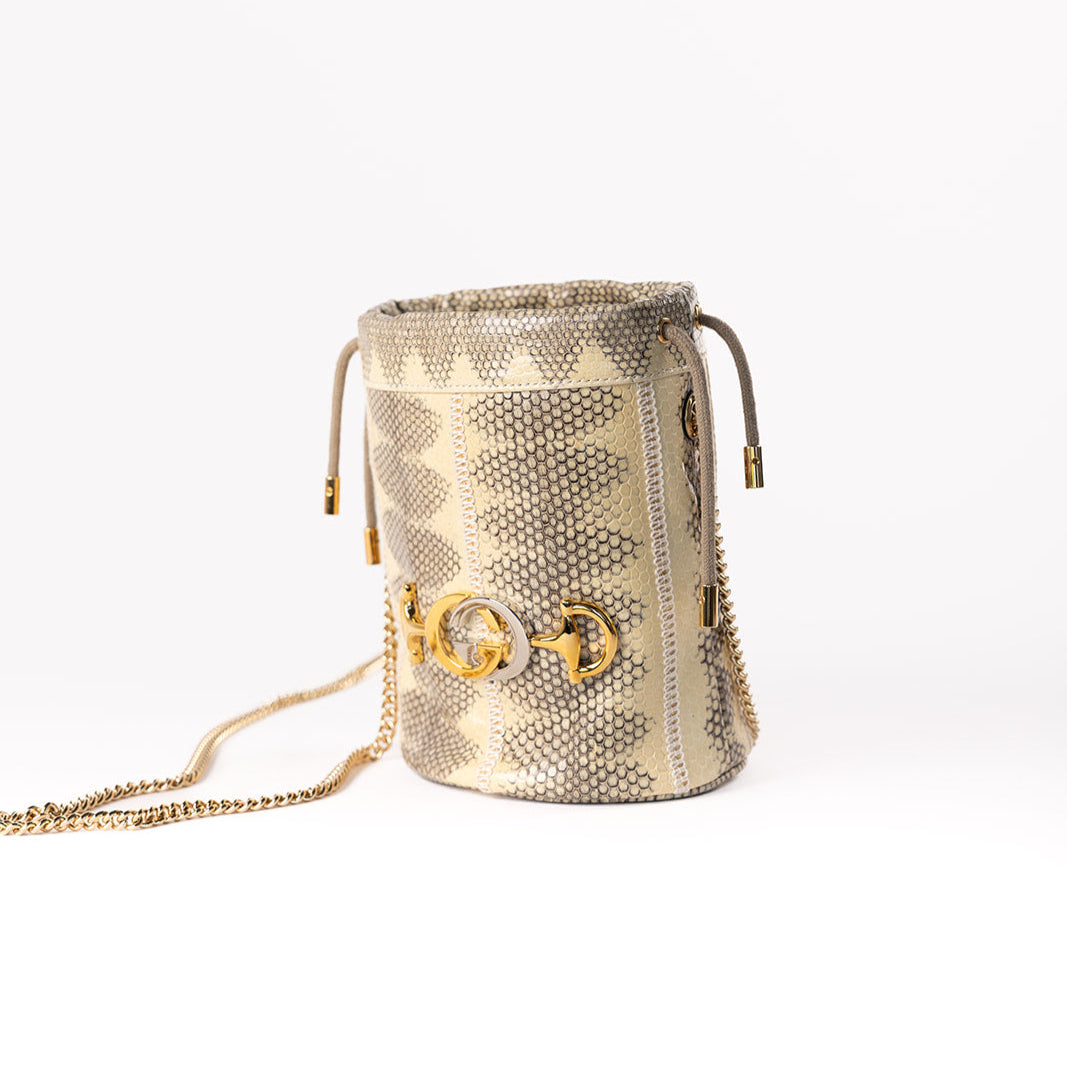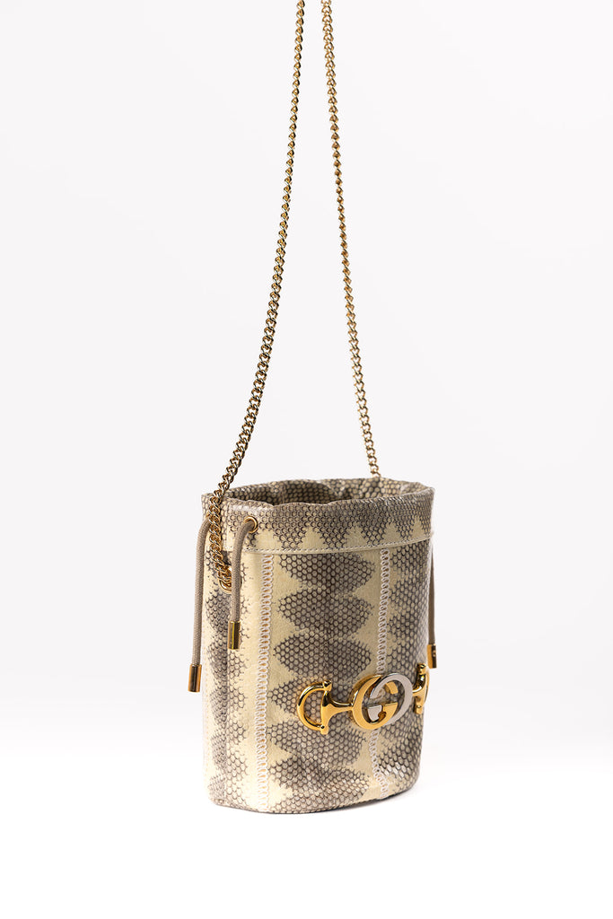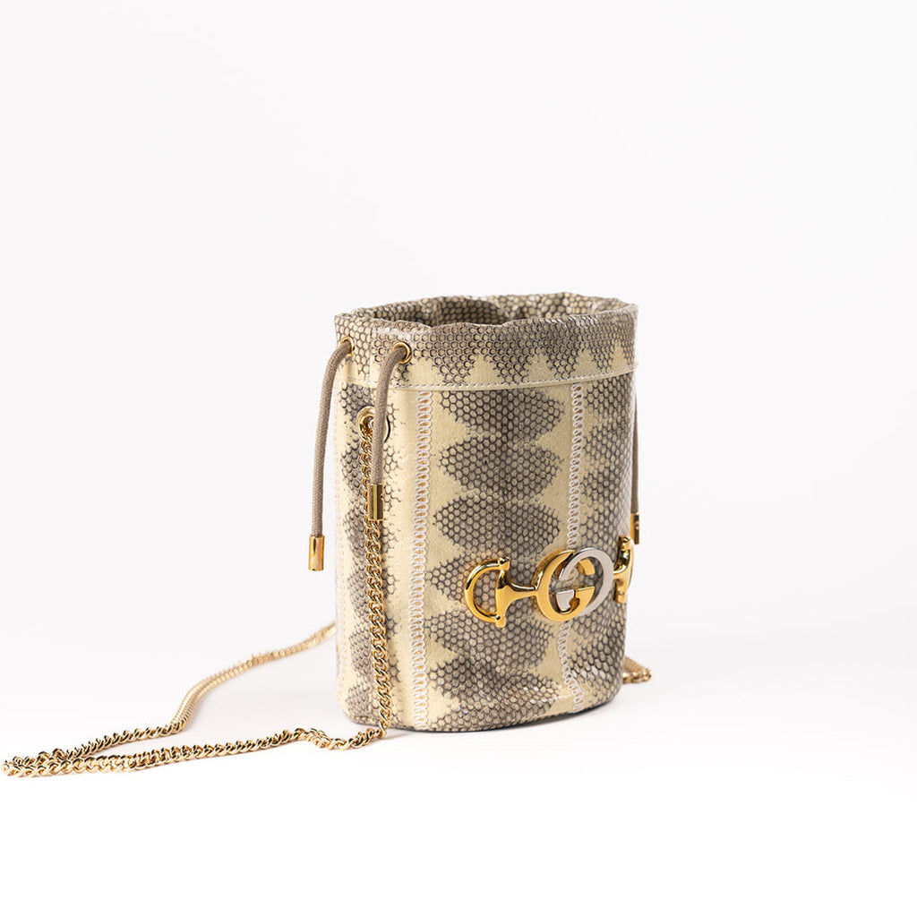 Pre-owned GUCCI Zumi White/Gray Snakeskin Mini Drawstring Bucket Bag