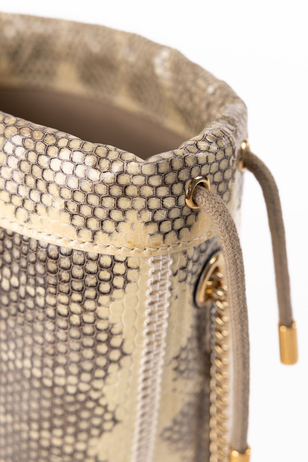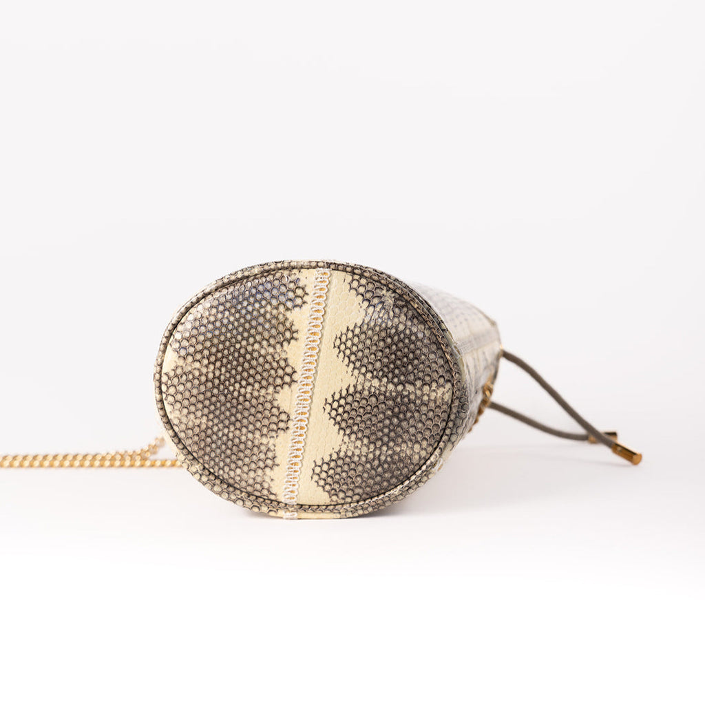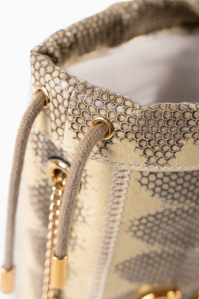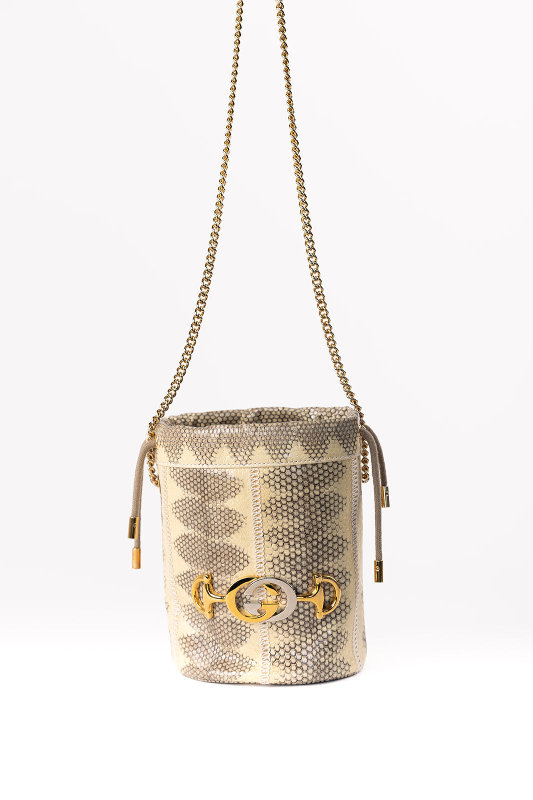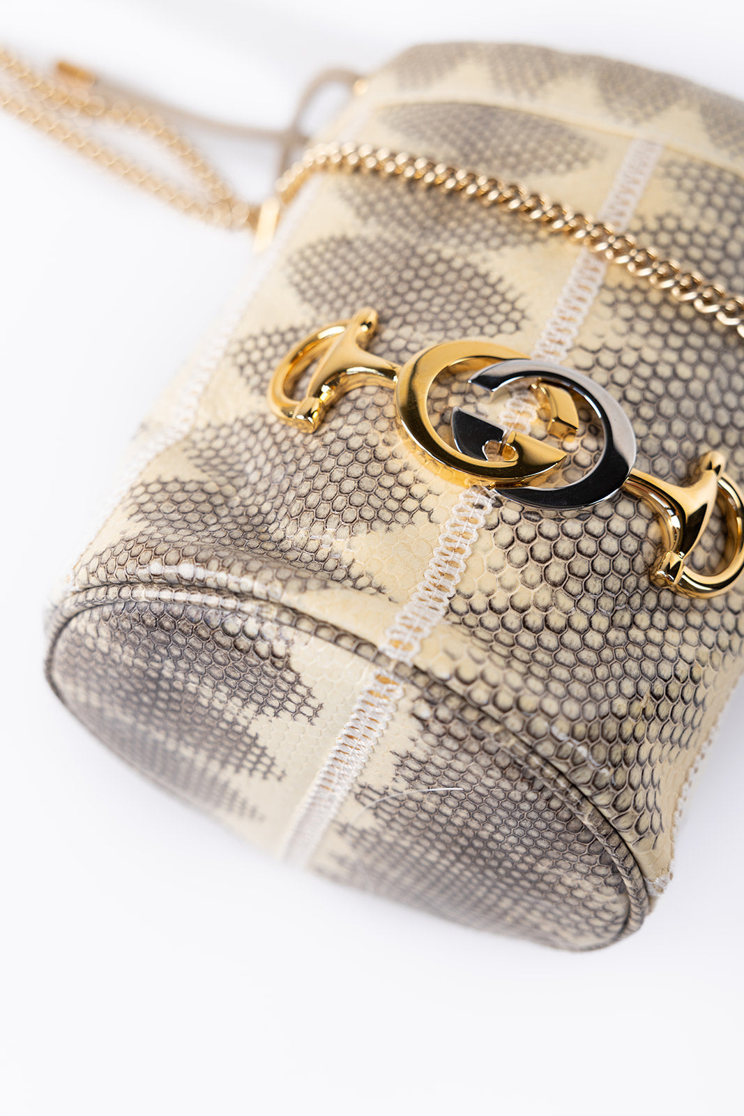 Pre-owned GUCCI Zumi White/Gray Snakeskin Mini Drawstring Bucket Bag