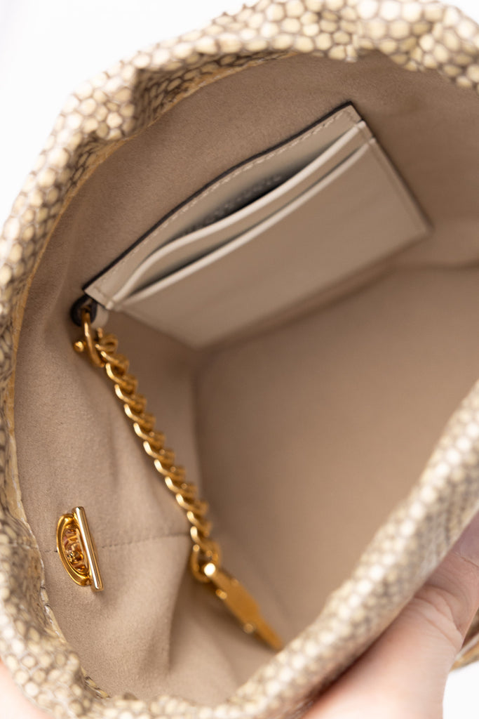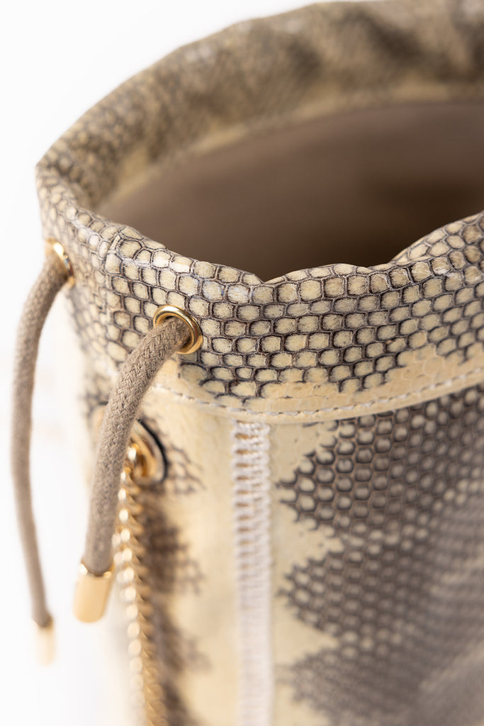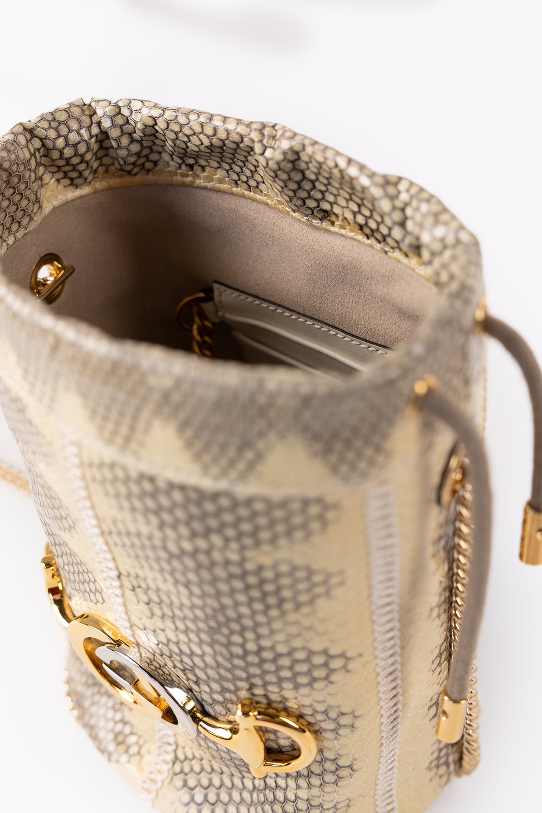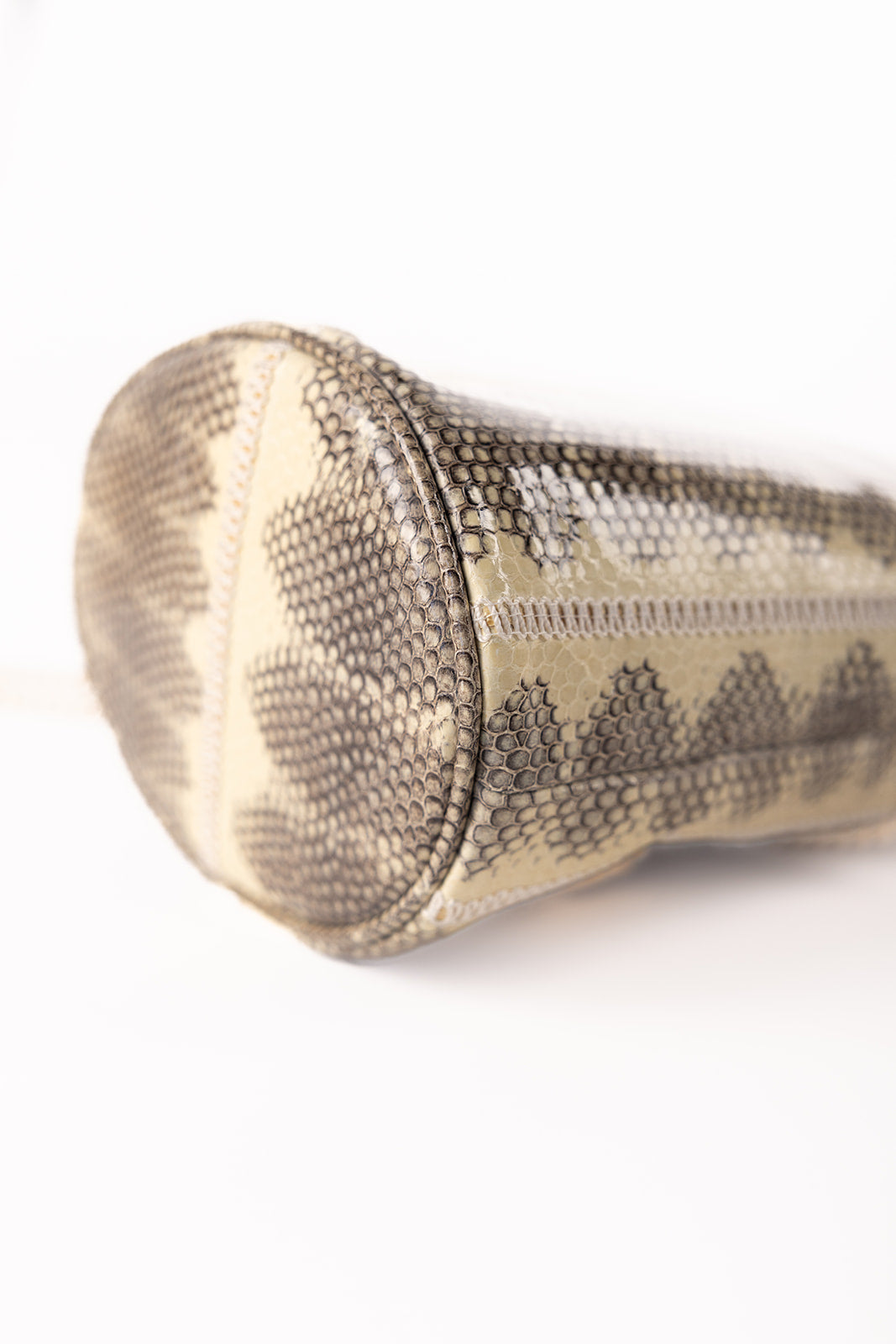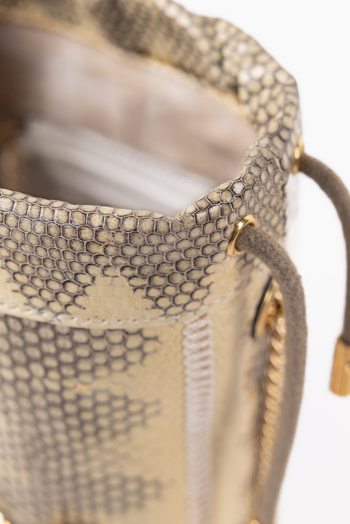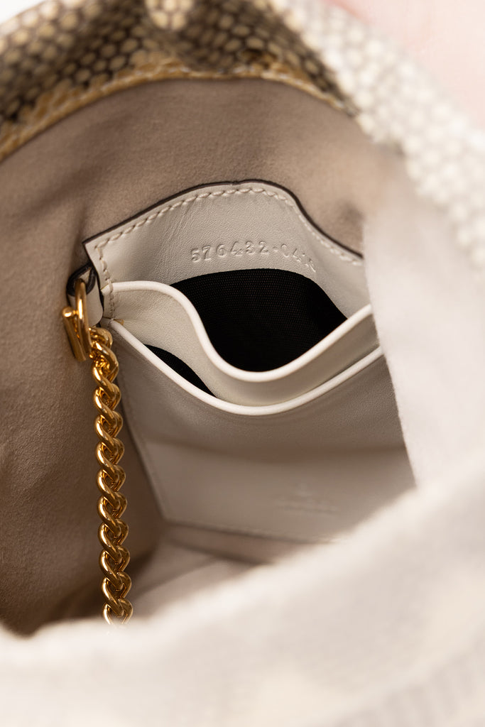 Pre-owned GUCCI Zumi White/Gray Snakeskin Mini Drawstring Bucket Bag