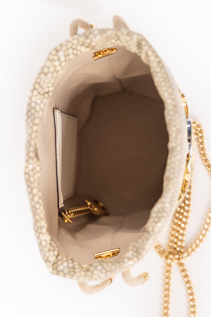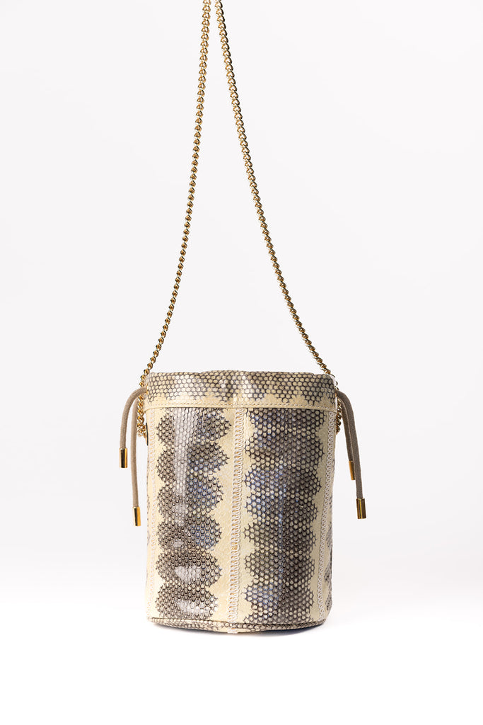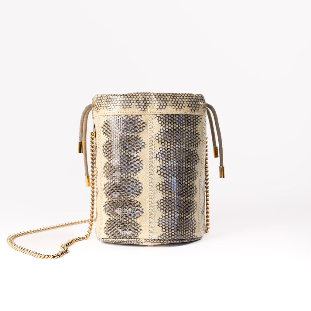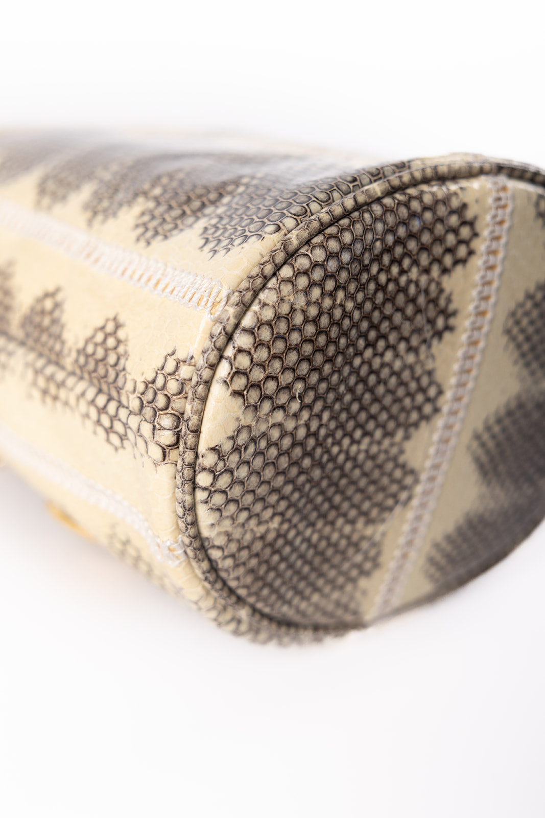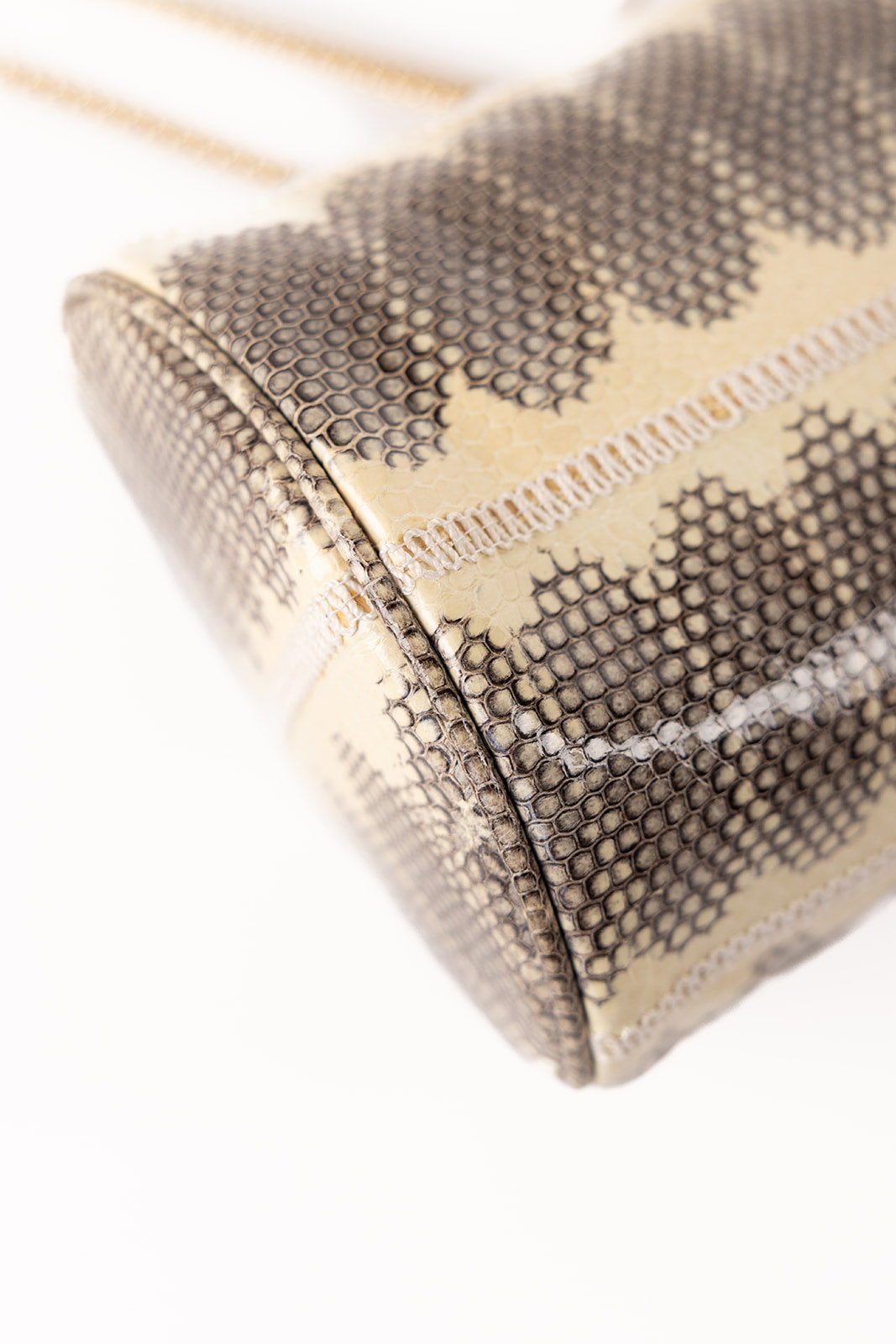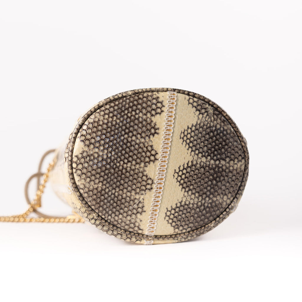 Pre-owned GUCCI Zumi White/Gray Snakeskin Mini Drawstring Bucket Bag