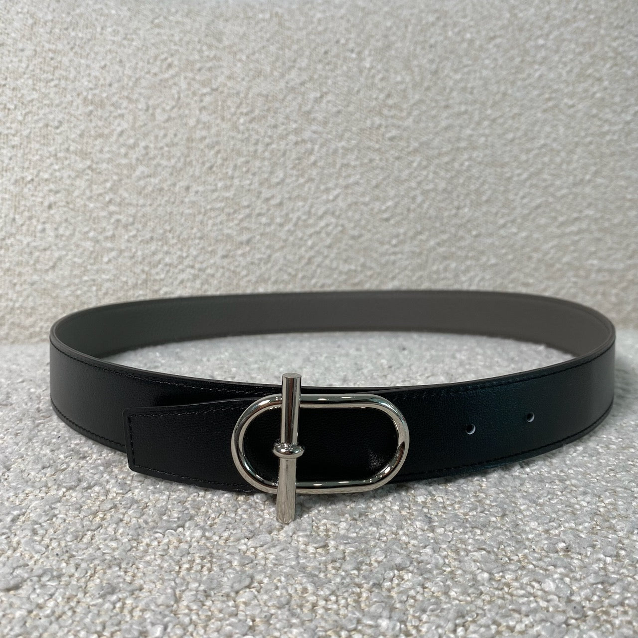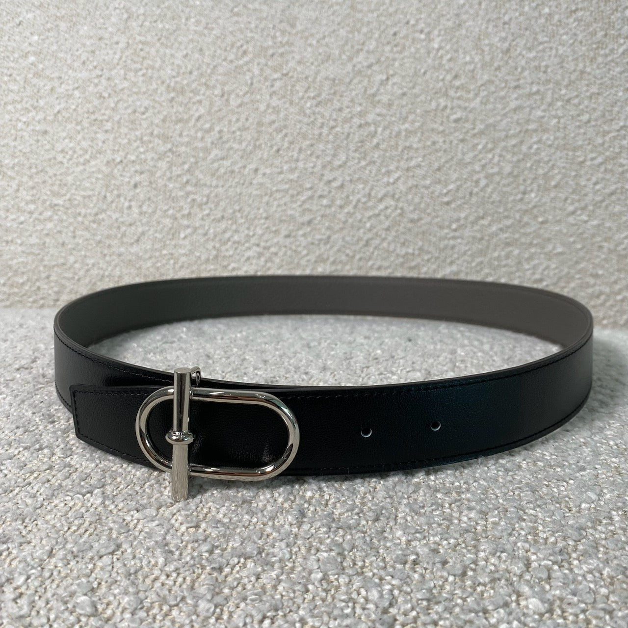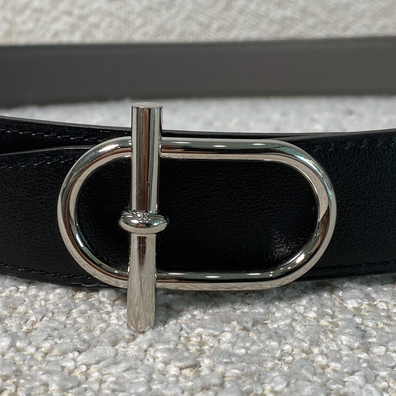 Pre-owned Hermes Ithaque belt buckle & Reversible leather strap women’s size 85 black / etain